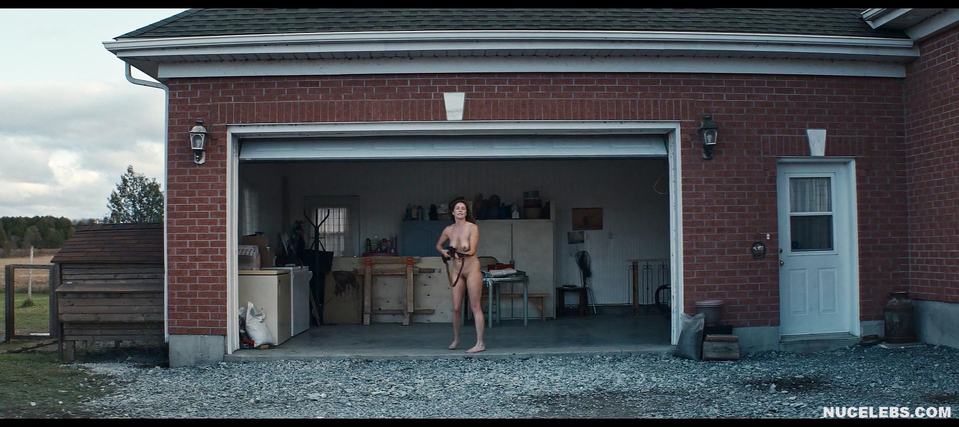 Christine Beaulieu acting in Frontiers (2023) leaves a lasting impression! This Canadian actress gave a great performance in a lesbian sex scene, performing cunnilingus on a woman and making her moan with pleasure. In some scenes, you could admire Christine Beaulieu’s stunning nude titties and wonderful booty. But the most impressive scene was when she ran naked into the yard to stop a man and a woman. Christine Beaulieu nude hairy pussy was on display as she stood in the garage with a gun at the ready.