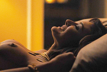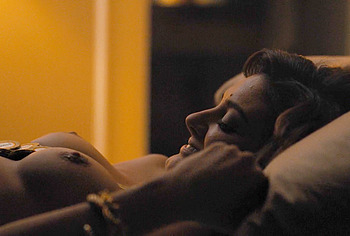 American actress Christine Evangelista will tease you with her nude boobs in Bleed for This. At first, this beauty flaunted there her gorgeous figure in lingerie. A black bra accentuated her awesome breasts, and small black panties fit her slender thighs perfectly. But the hottest moment was when this celebrity topless was lying on the bed. Christine Evangelista flaunted her nude sweet tits with hard nipples and enjoyed the man throwing casino chips on her on top.