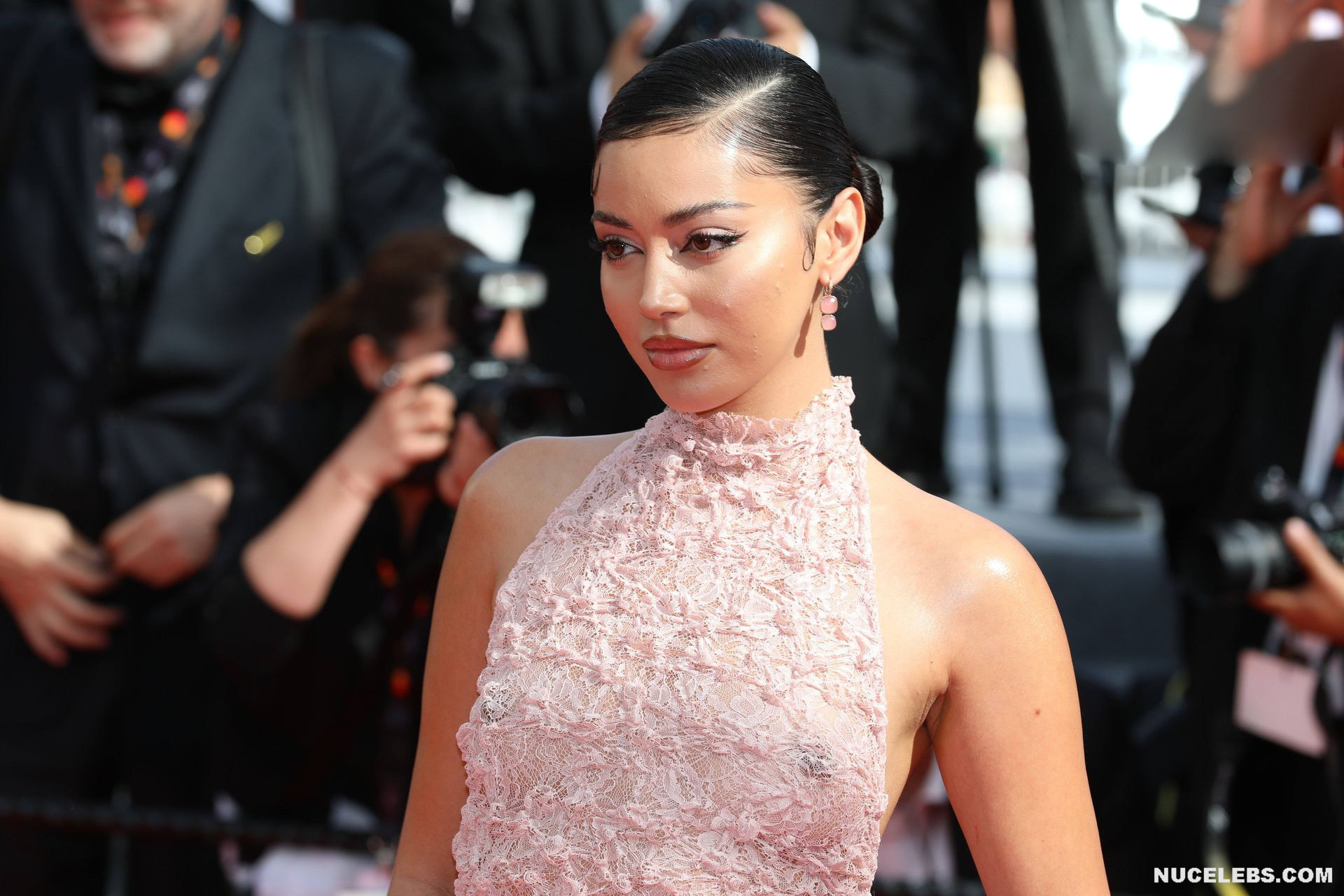23-year-old Dutch model Cindy Kimberly has a stunning figure. This girl often appears on the pages of magazines and loves the attention of the public. Maybe that’s why at one recent event, Cindy Kimberly almost showed her nude boobs! This celebrity wore a see through pink dress that accentuated the beauty of her figure. And of course it was impossible to look away from Cindy Kimberly’s nude boobies with brown nipples showing through sheer fabric.