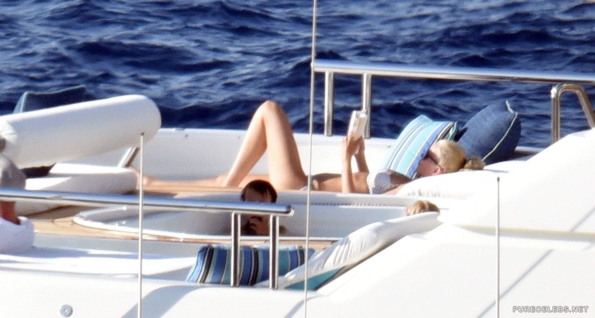 German model Claudia Schiffer made her mark in the early 90s by modeling for the world’s best designers. Then she shifted towards acting and became a designer herself. All throughout her career she’s been the target of paparazzi and that hasn’t changed. At the age of 47, this slim blonde MILF looks stunning as can be seen on these bikini photos on a private yacht.