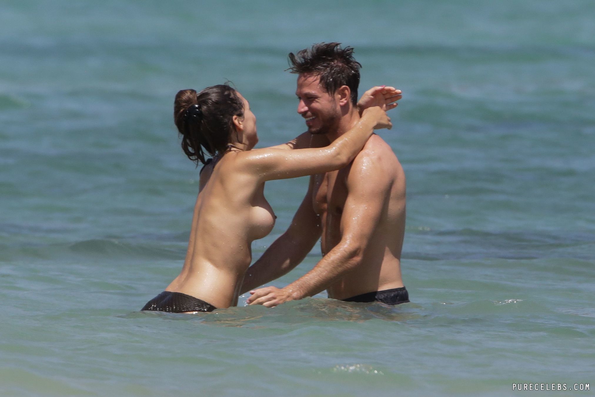 If you have long dreamed of seeing Clea-Lacy Juhn’s nude titties, then paparazzi made these naughty photos just for you! This celebrity had a great time on the beach with her boyfriend, swimming and sunbathing. The girl was dressed only in small panties that barely covered her sweet butt. But Clea-Lacy Juhn’s juicy boobies were completely nude! Oh, and her hard brown nipples looked so sexy!