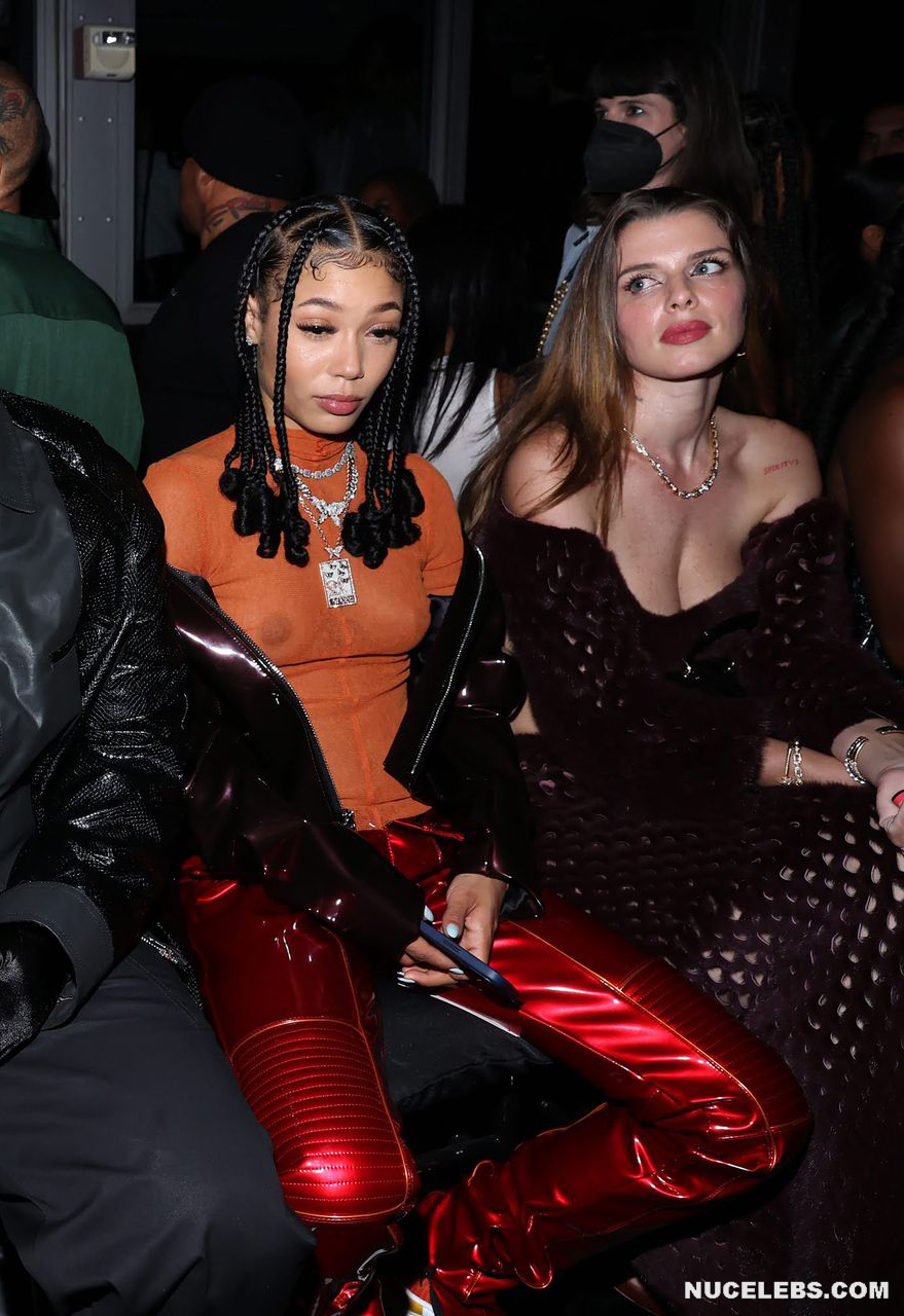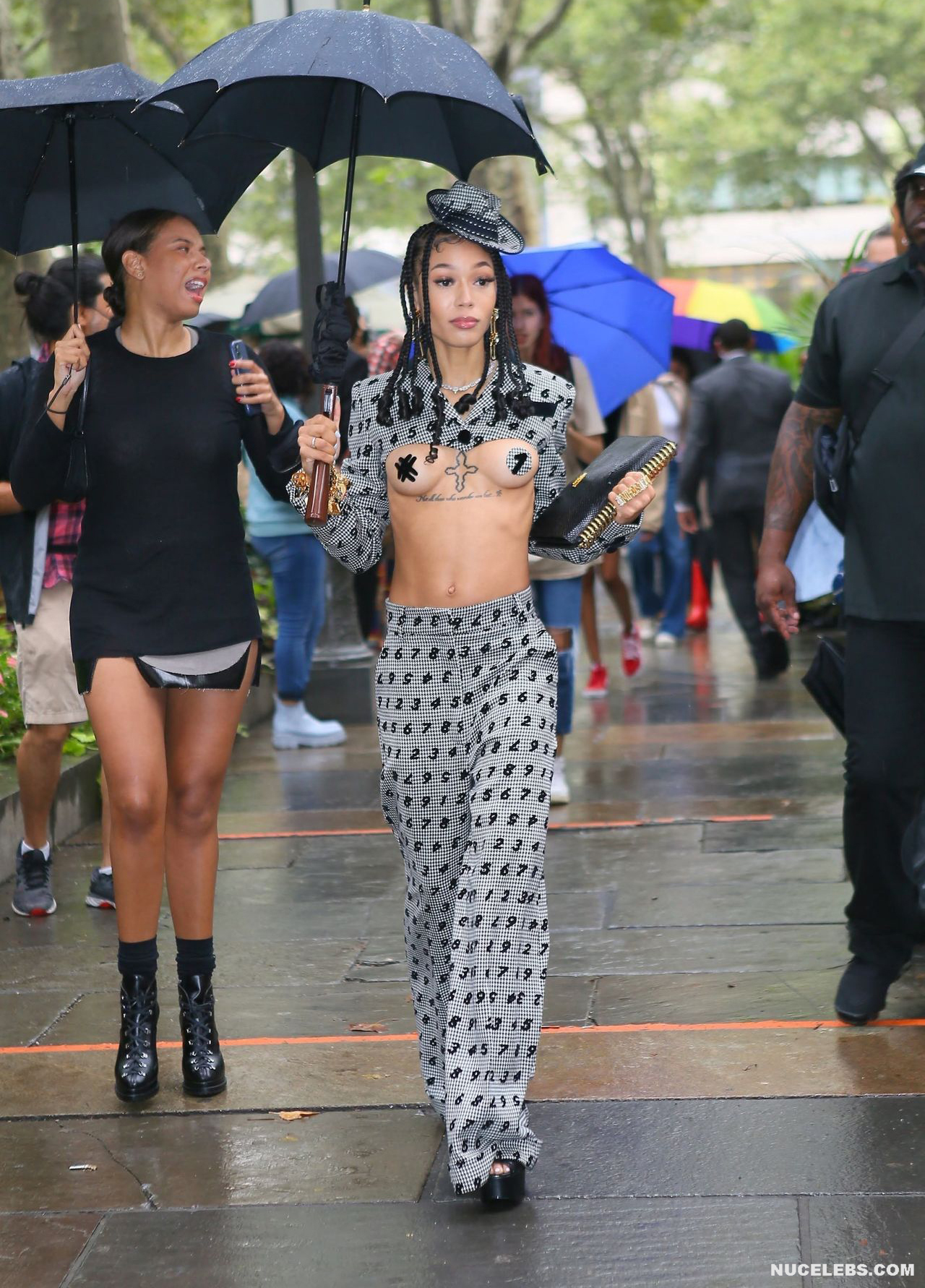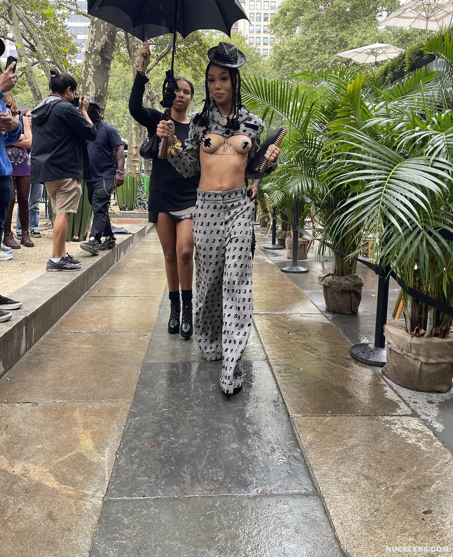 The American rapper Coi Leray loves to tease his fans, exposing his nude body in public. So, this celebrity went down the street in gray pants with a print. At the same time, Coi Leray tits were completely nude, only her nipples covered black stickers. And at another event, this beauty appeared in red shiny pants and an orange transparent sweater. At the same time, the girl was bralass. So Coi Leray nude titties with brown nipples were perfectly visible through.