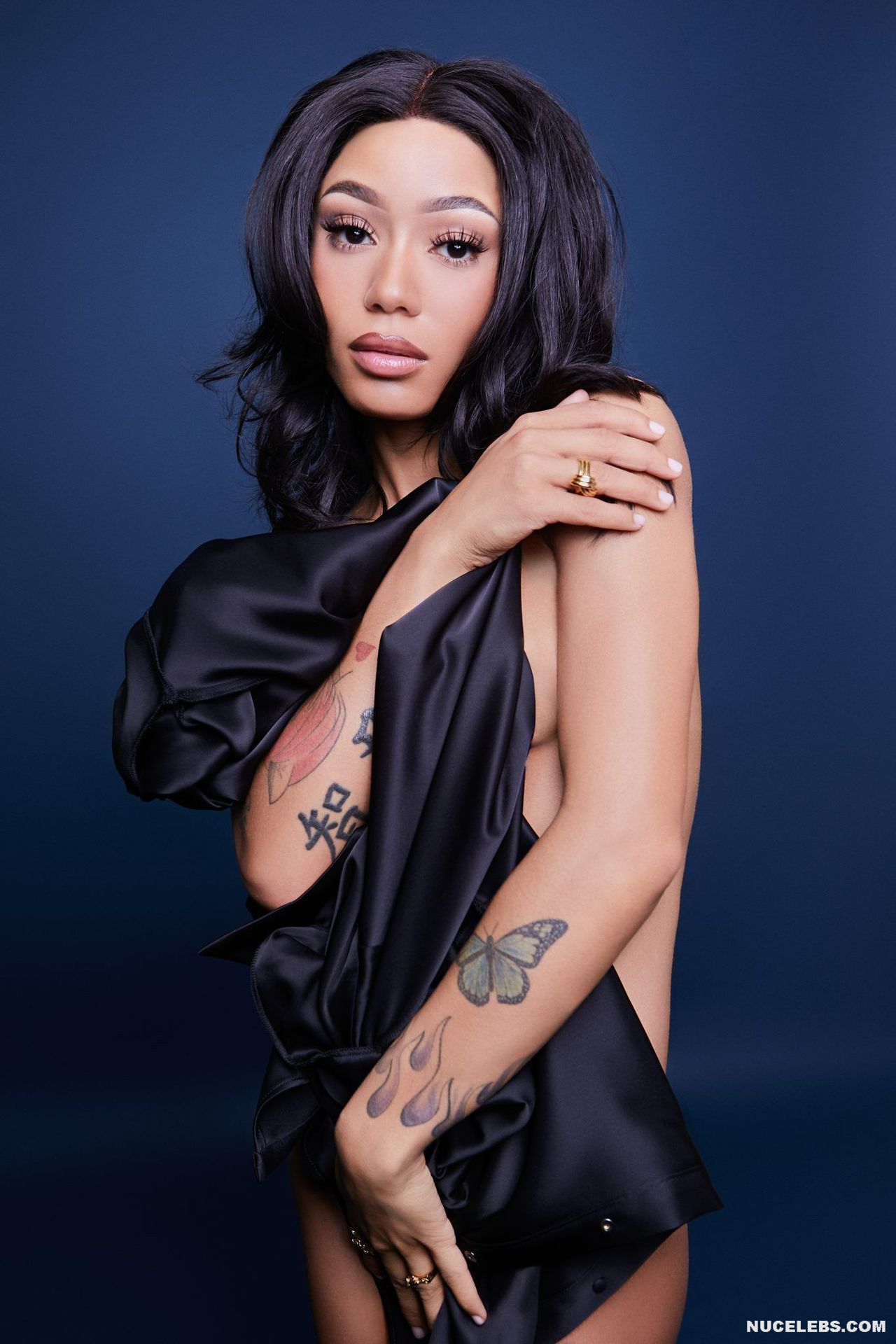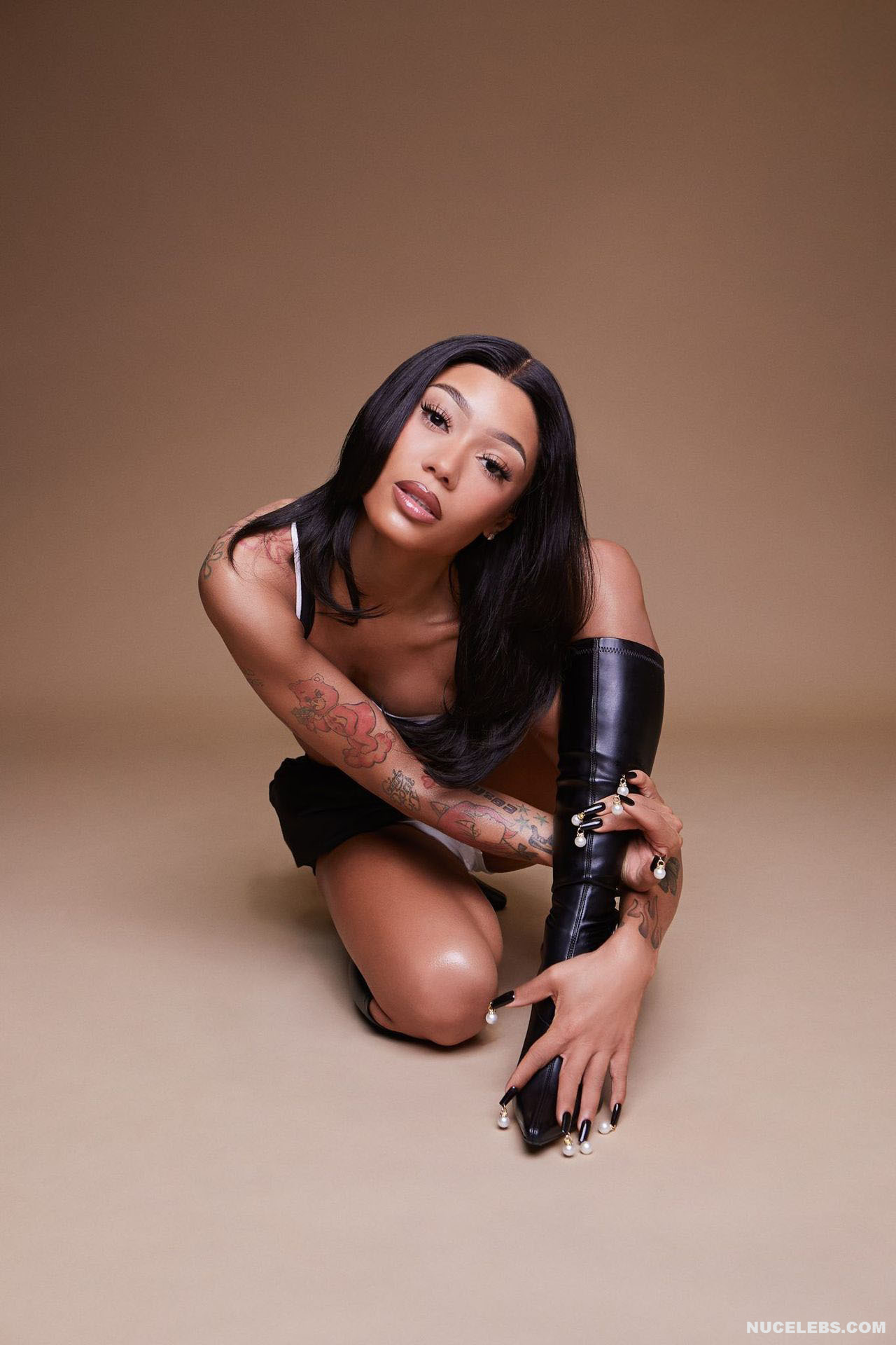 You’ll be drooling at the sight of Coi Leray’s nude petite tits with brown nipples! This American rapper is so confident in herself that she appears in front of the camera not only in her underwear but also topless. She tried to maintain the intrigue for as long as possible and hide her juicy peaches from our eyes. However, at some point, Coi Leray’s nude tits still peeked out from under her hand with gold bracelets. You definitely wouldn’t be able to resist this hot brunette at this moment!