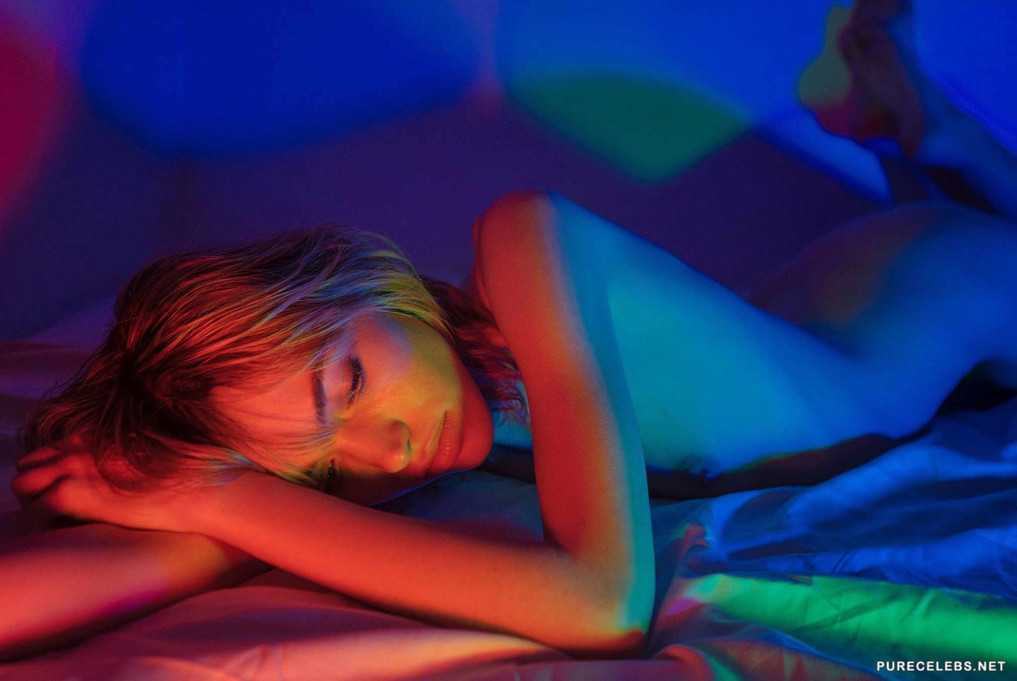 Skinny young model Cora Keegan has an Instagram profile packed with hot photos but none as sexy as this gallery. In a series of dreamy bedroom pics, awash with bright colors, she shows off her small tits, little ass and cute face wearing just a pair of pink cotton panties. This a real delight for any lover of slim beauties and we invite you to enjoy this floozy’s fine figure.