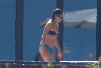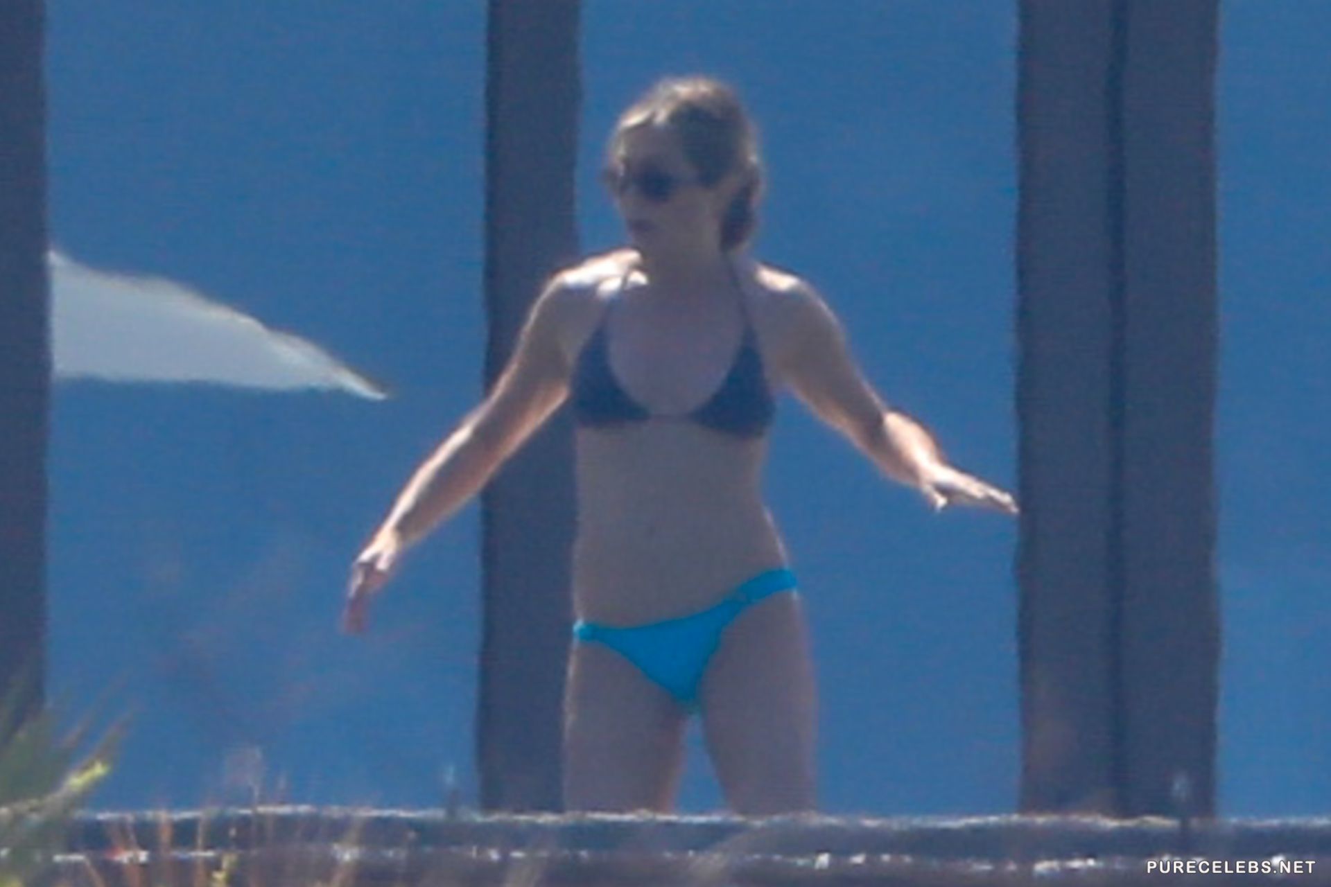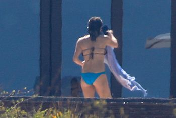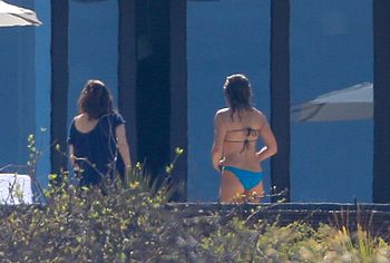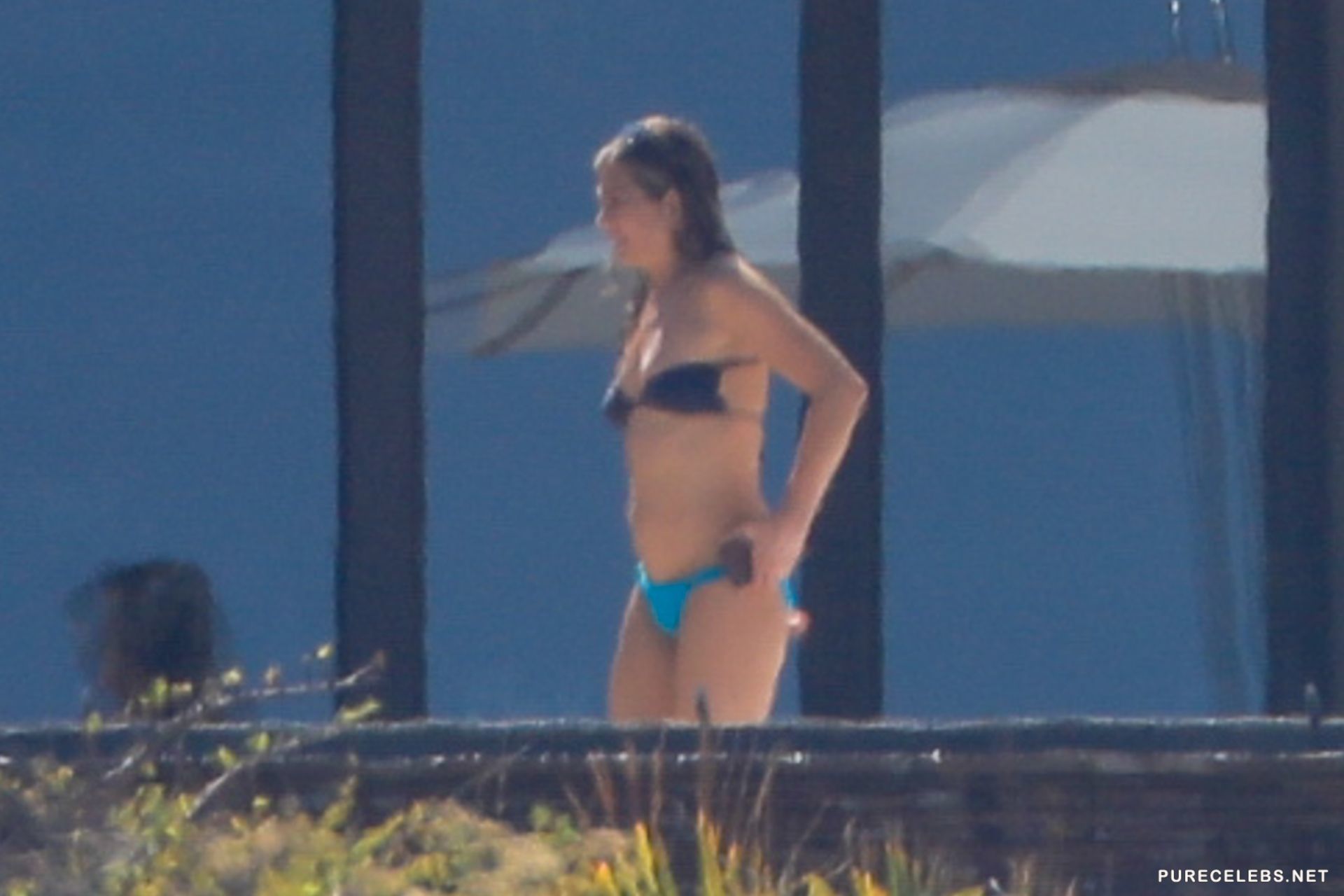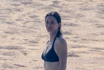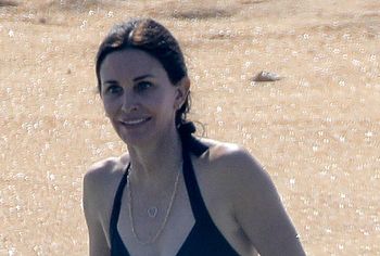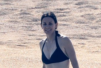 Charming Courteney Cox and Jennifer Aniston, known to us on the TV series Friends, had a great time sunbathing in bikinis. Blonde Jennifer chose a two-tone bikini for herself, her panties were turquoise and focused on the actress’s gorgeous ass, and her black bra seemed about to slip off her juicy boobs. And Courteney chose a black bikini for herself, which remarkably emphasized the curves of her beautiful figure.