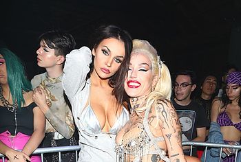Courtney Stodden and Brooke Candy recently attended an event where they were the focus of public attention. Blonde and brunette behaved very naughty, posing in provocative outfits and parading their sweet tits and hugging each other. And in order for you to think about them all night long, sexy celebrities began to kiss passionately in public, and the atmosphere at the party became very hot from their lesbian kiss!