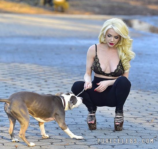 This busty blonde babe is well known within the borders of the USA. And how wouldn’t she be, since she is a reality show contestant, model and actress! But that doesn’t make her smart. Because if she was smart she wouldn’t take her dog for a walk wearing see through bra! If you don’t believe us, take a look at these photos taken by paparazzi! You’ll be delighted with them!