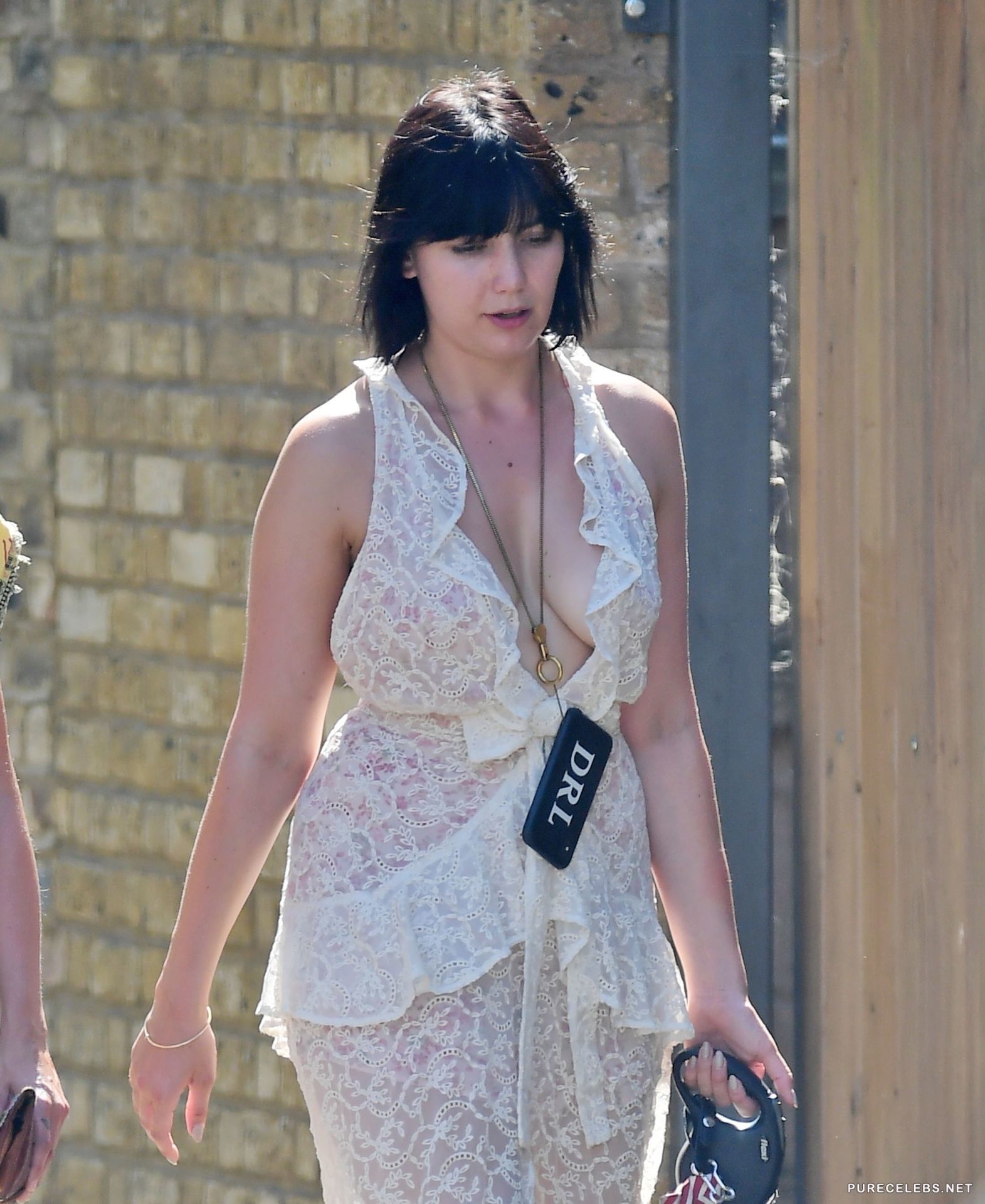 Not so long ago, the British model Daisy Lowe was photographed on the street in a very provocative outfit. The incredible brunette was wearing a white lace dress that perfectly fitted her chic figure. In addition, the celebrity did not wear a bra and her awesome huge tits were perfectly visible from the deep neckline of her dress. Agree that it looked very attractive!
