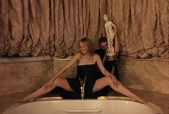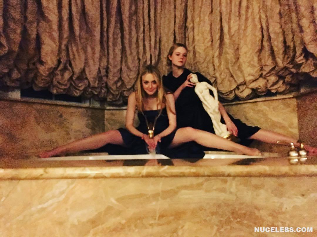 Two hot sisters Dakota and Elle Fanning decided to tease their fans by almost showing their nude pussies. So, these actresses in black dresses happily posed in front of the cameras. Dakota and Elle Fanning spread their slender legs to the sides, and only small pieces of fabric hid their pussy nude from views. It turns out that these girls are so mischievous!
