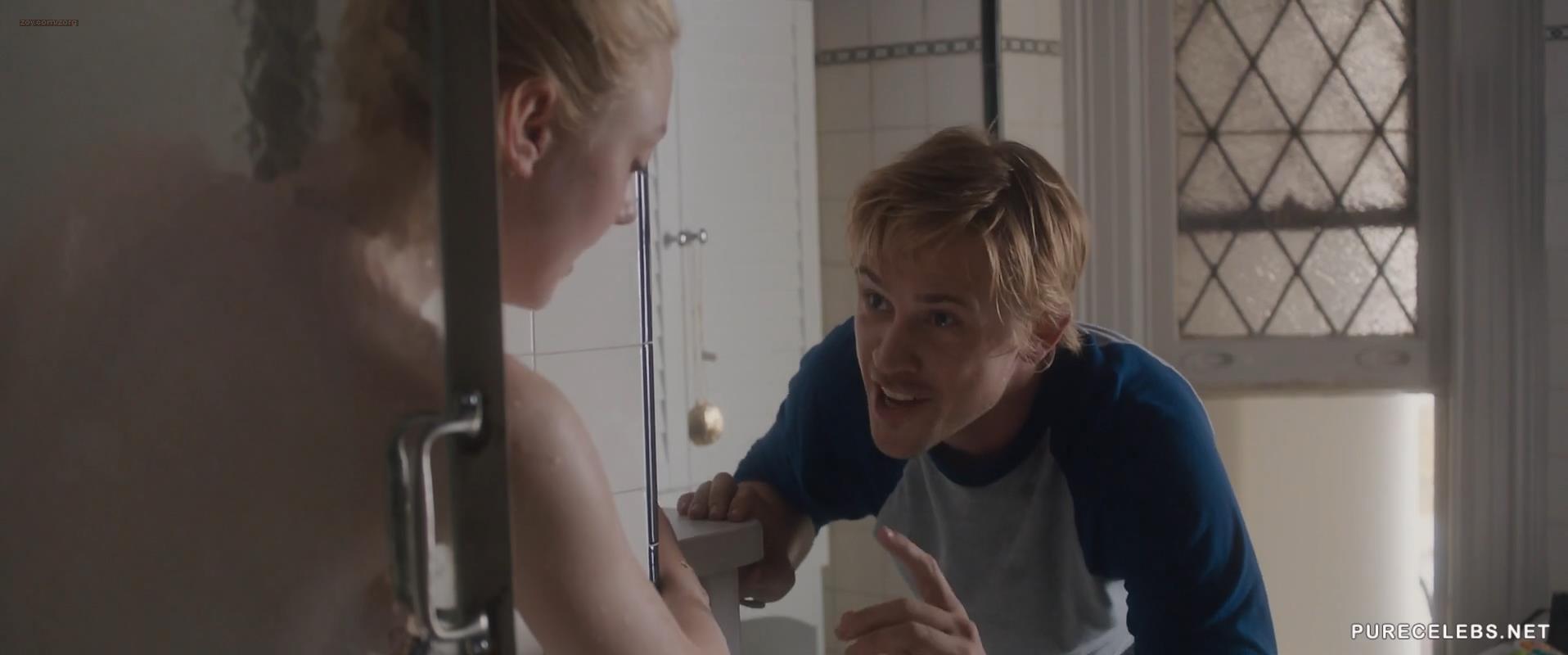 Dakota Fanning is seen bareass as she is running into the water at the beach. The pretty blonde has a lot of fun skinnydipping in this movie and she looks like she had a lot of fun while she was filming this scene. We can also see some spicy shots of her as she is fooling around with her man in the bedroom on the bed.
