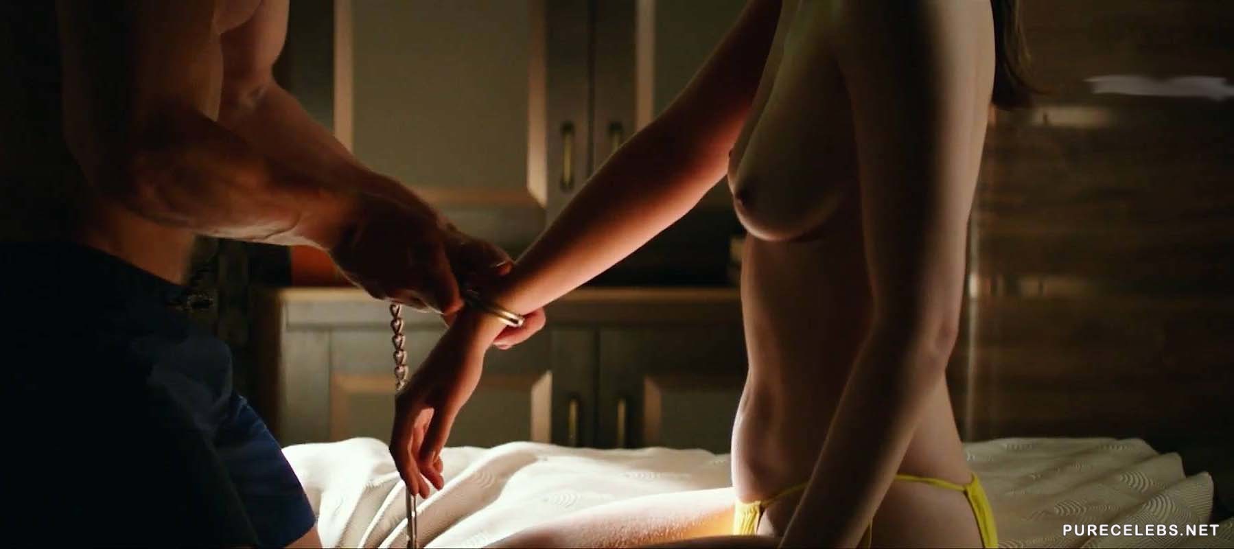 Dakota Johnson wasn’t shy at all to bare it all in her latest movie, 50 Shades of Freed. She is clearly enjoying every scene whether she is being just topless or completely nude. No matter if she is being strapped and blindfolded on S&M rack and completely exposed, or lying on the bed while other actor eats her pussy out, she is completely ecstasy, as it can be seen by her hard nipples.