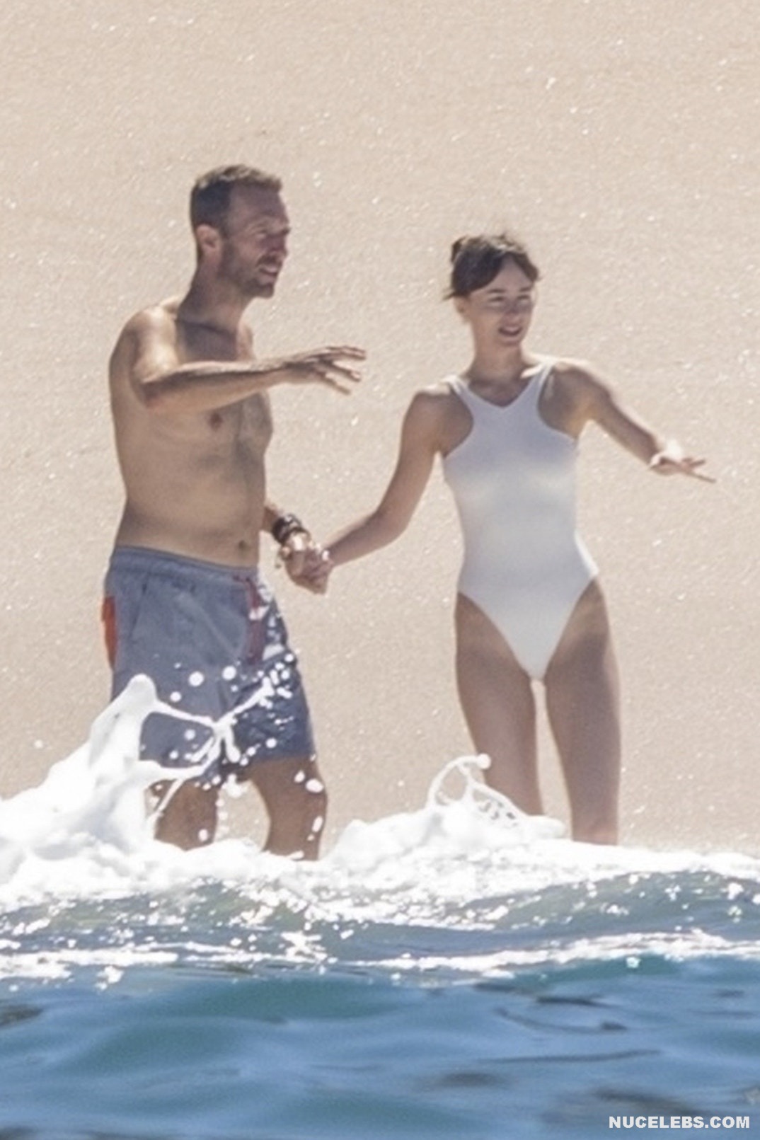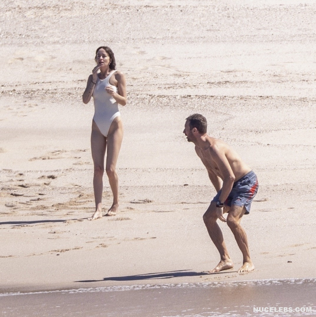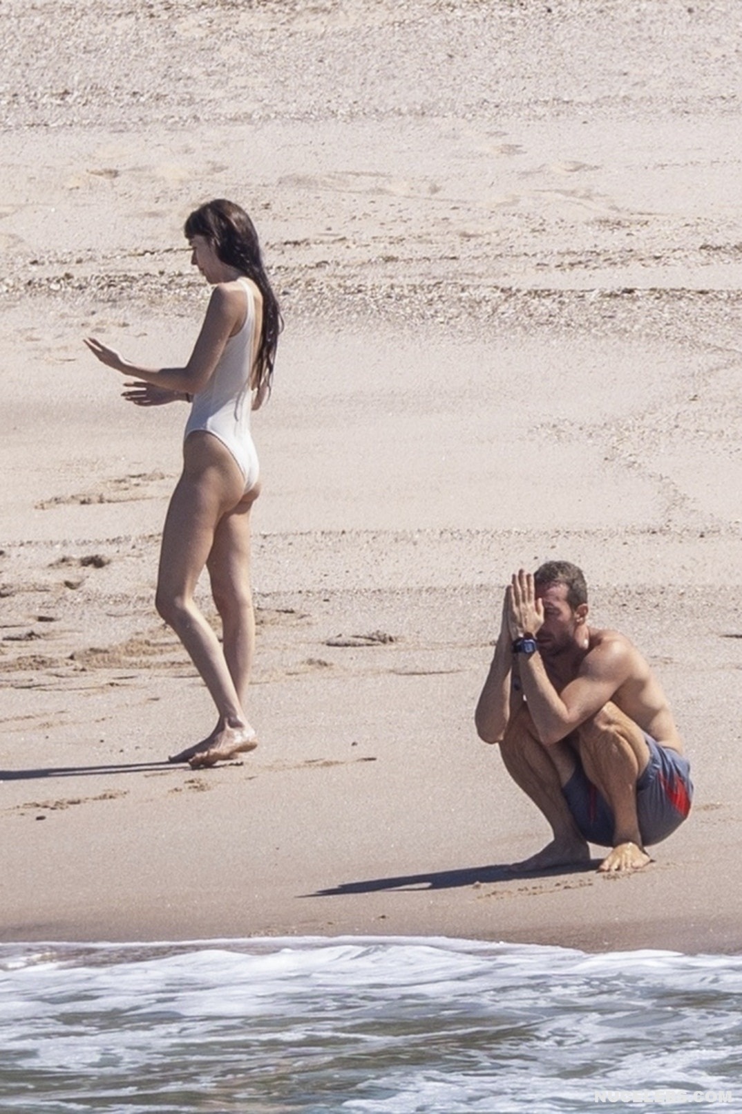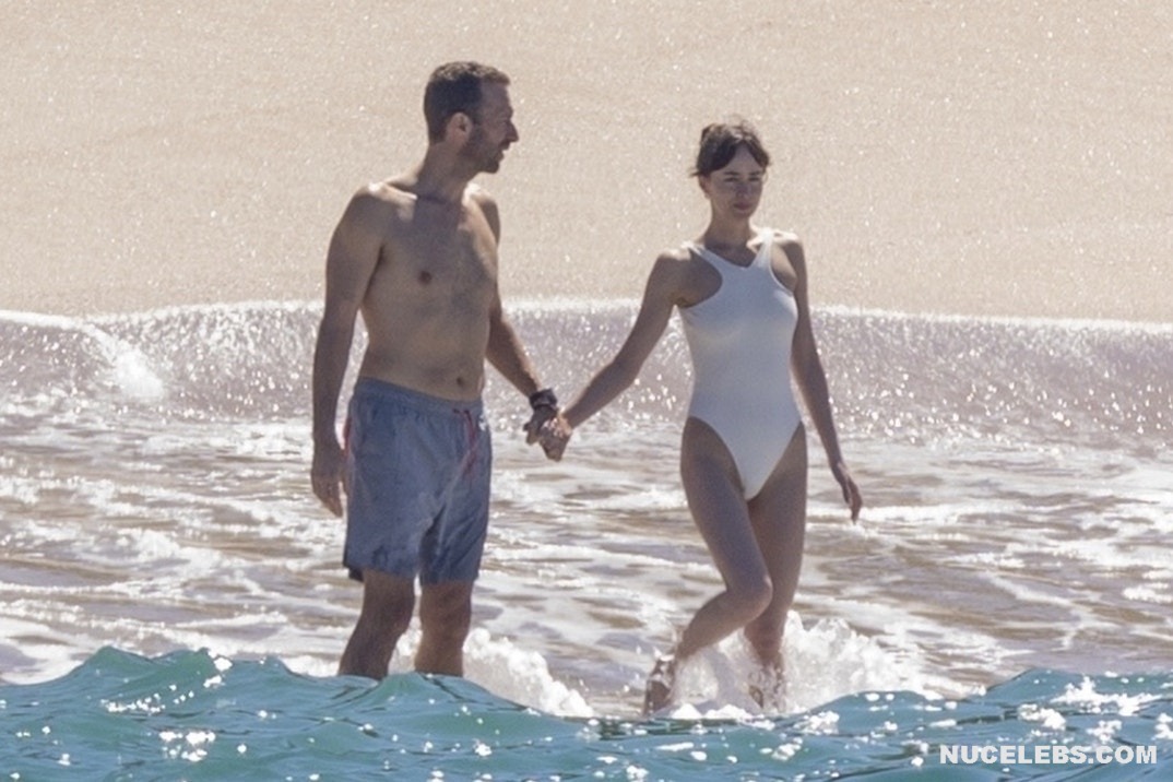 Have fun looking at Dakota Johnson in a white one-piece swimsuit. While this 34-year-old actress was enjoying her beach holiday, the paparazzi tried to photograph her as often as possible. Well, you have to admit, Dakota Johnson’s poking nipples looked incredibly tempting in a wet, translucent swimsuit. However, it was also difficult to take your eyes off her amazing booty!