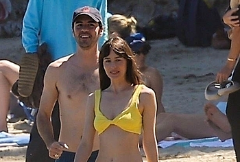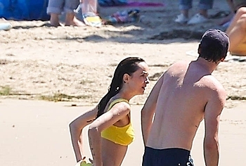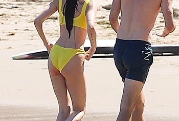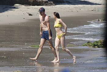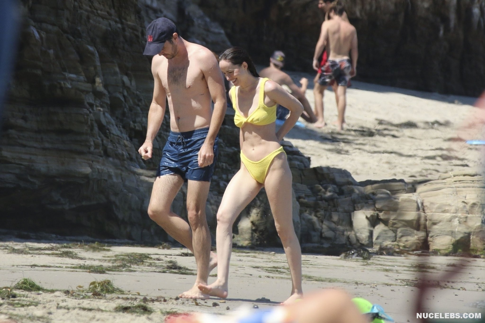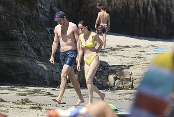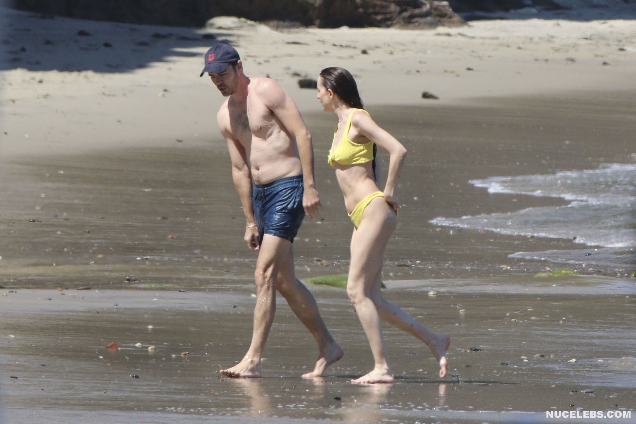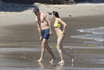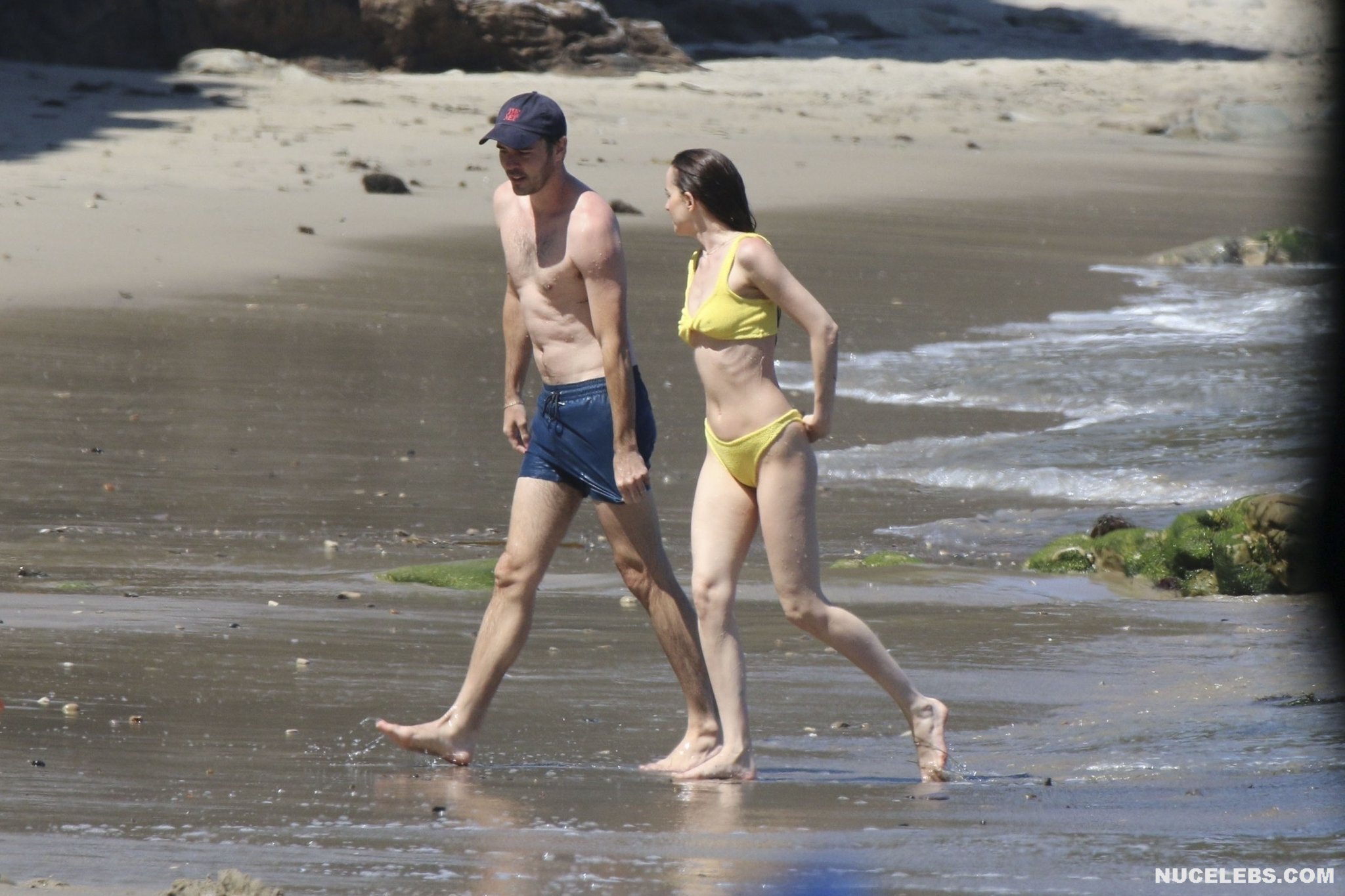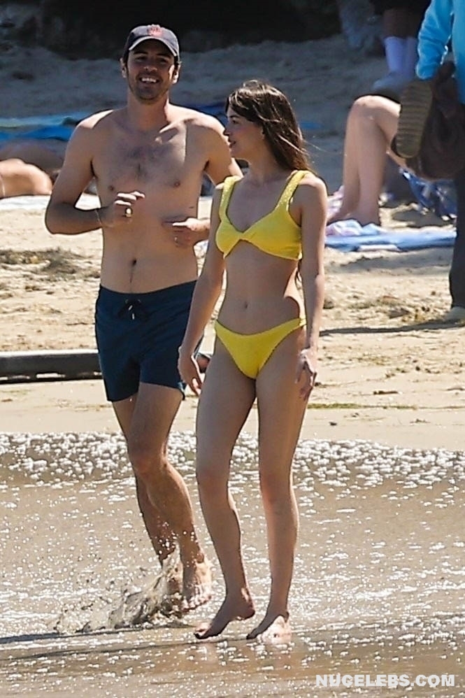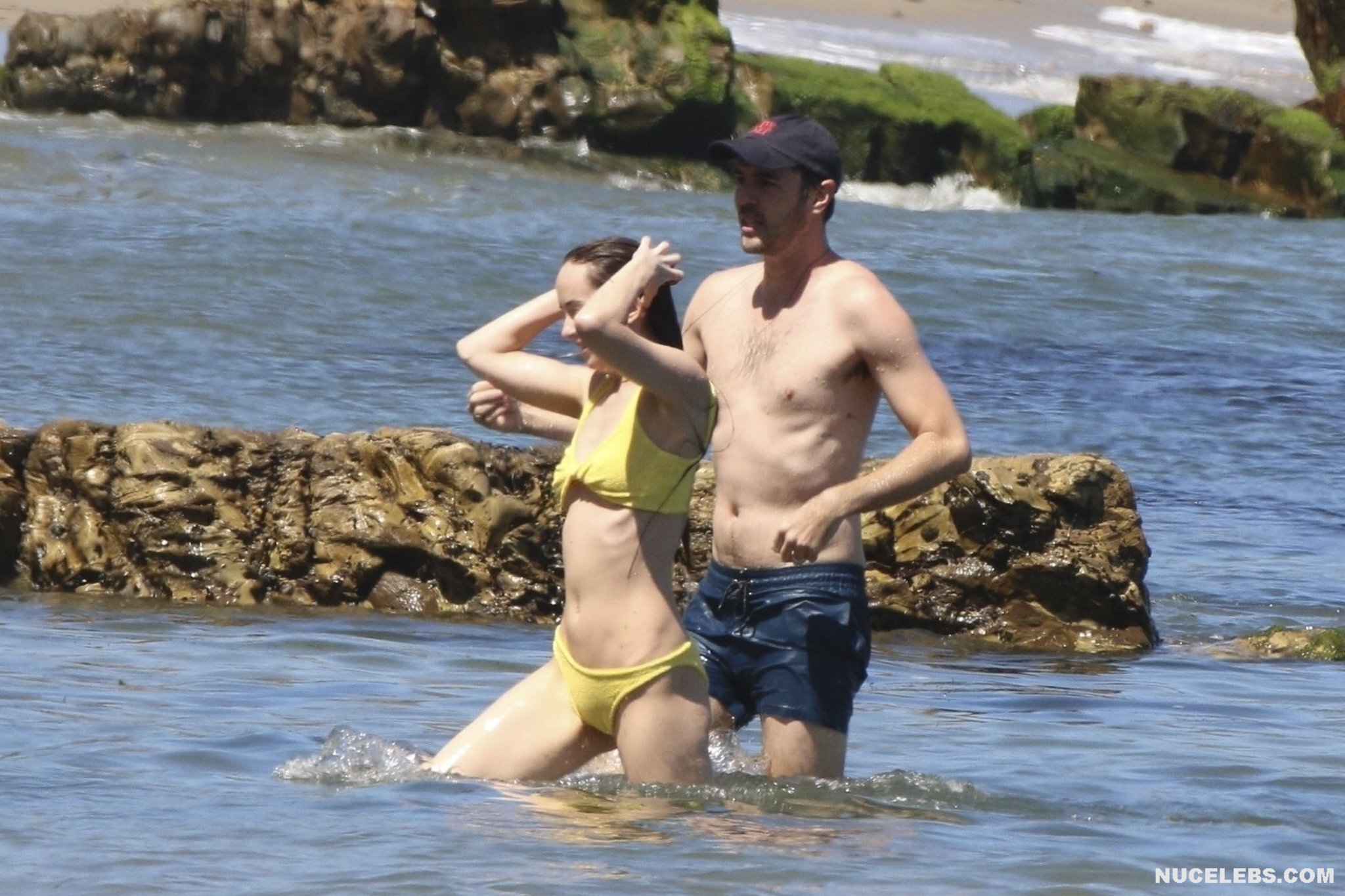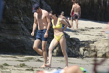 Dakota Johnson is exceptionally skilled as an actress and has a magnificent figure to boot. You’ll be captivated when you see her stunning beach photos. Paparazzi photographed her as she emerged from the water. The wet yellow bikini seemed to be sliding a little off her slender figure. So Dakota Johnson periodically pulled up her miniature panties, which were trying to slide down her sweet booty!