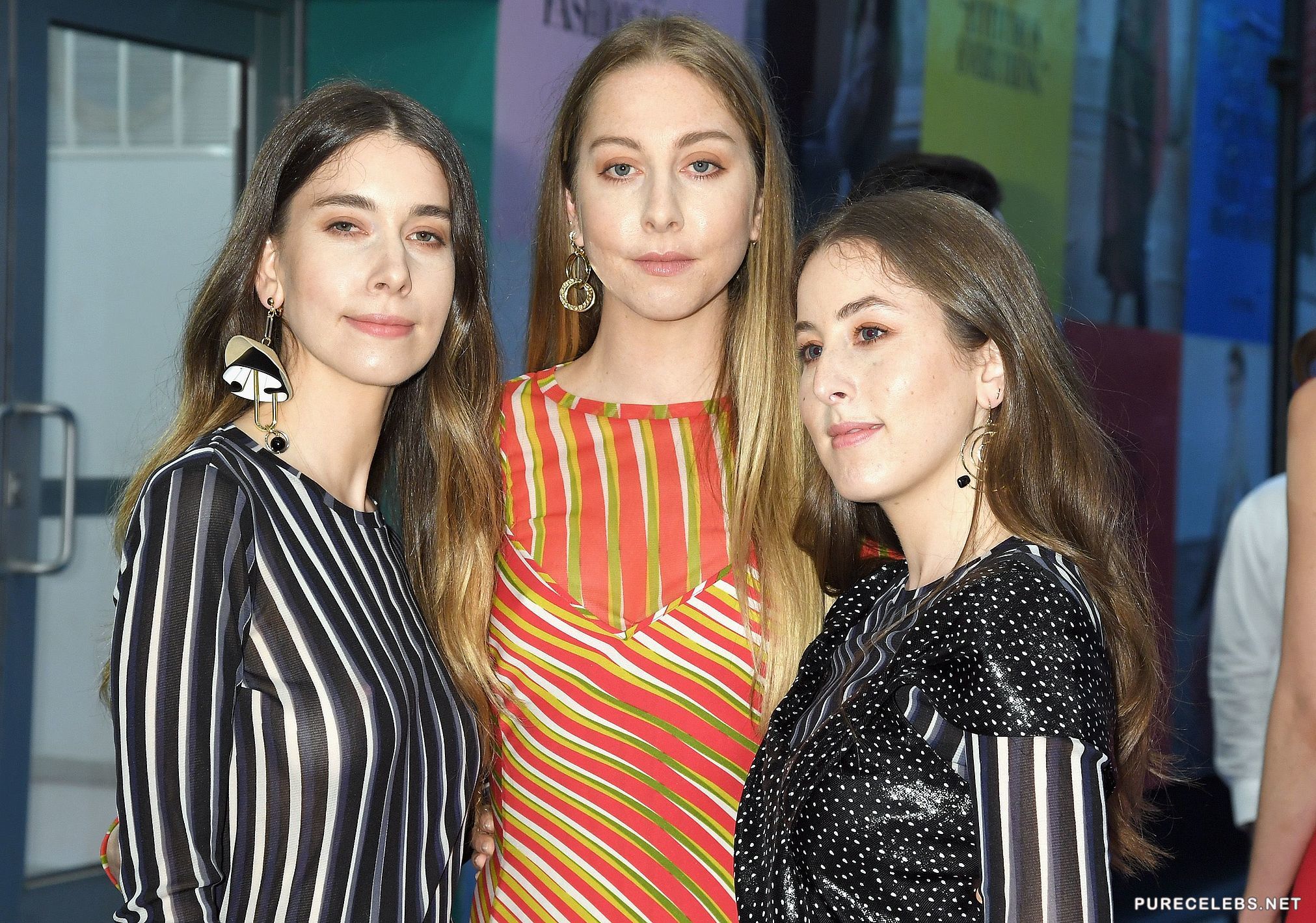 Danielle Haim is definitely the sluttiest HAIM sister. The three pop star sisters recently attended a promotional event for Swarovski jewelry and posed for the present reporters. This 29 year old artist opted to wear a stripped black dress which was completely sheer. Posing with her sisters she smiled for the camera. Fans will surely be happy to see Danielle’s perfect natural tits and firm nipples sticking out of her dress.
