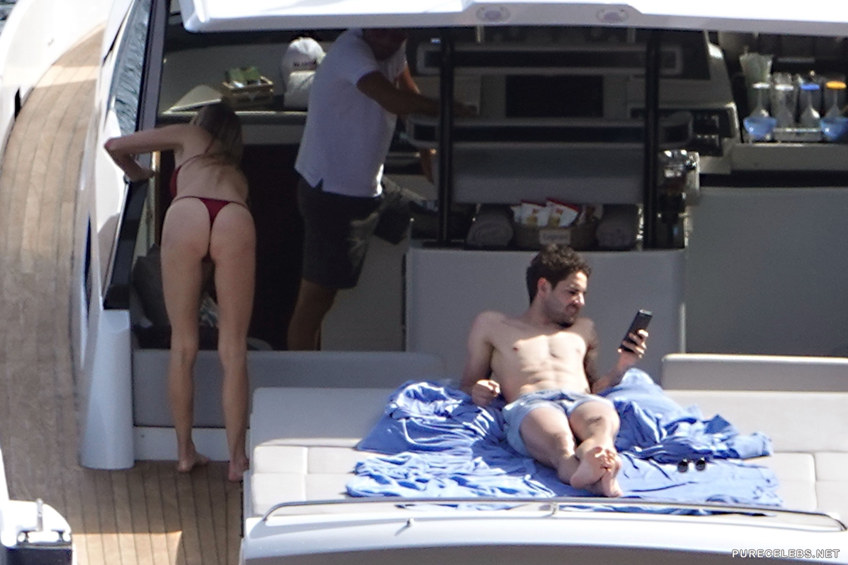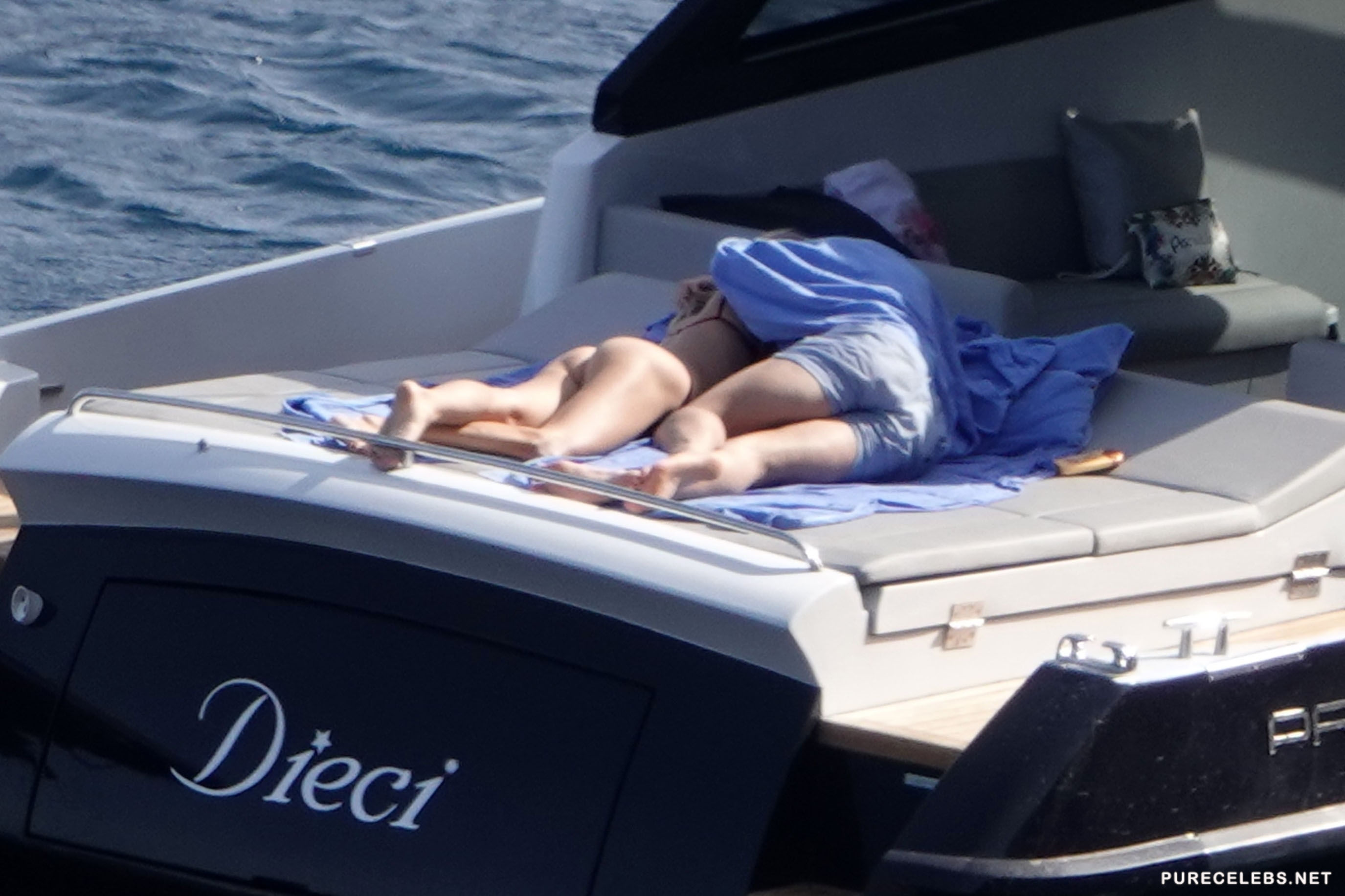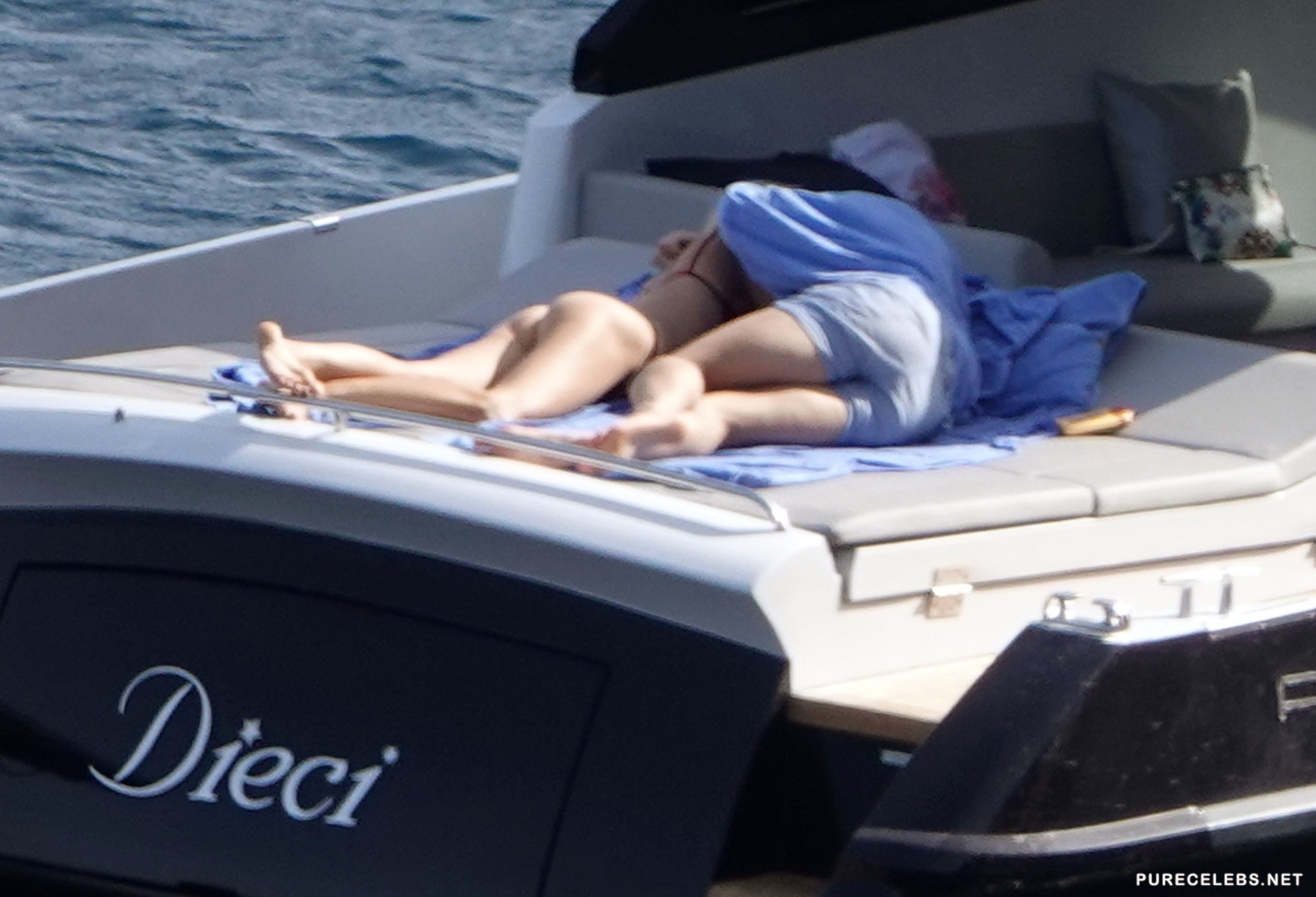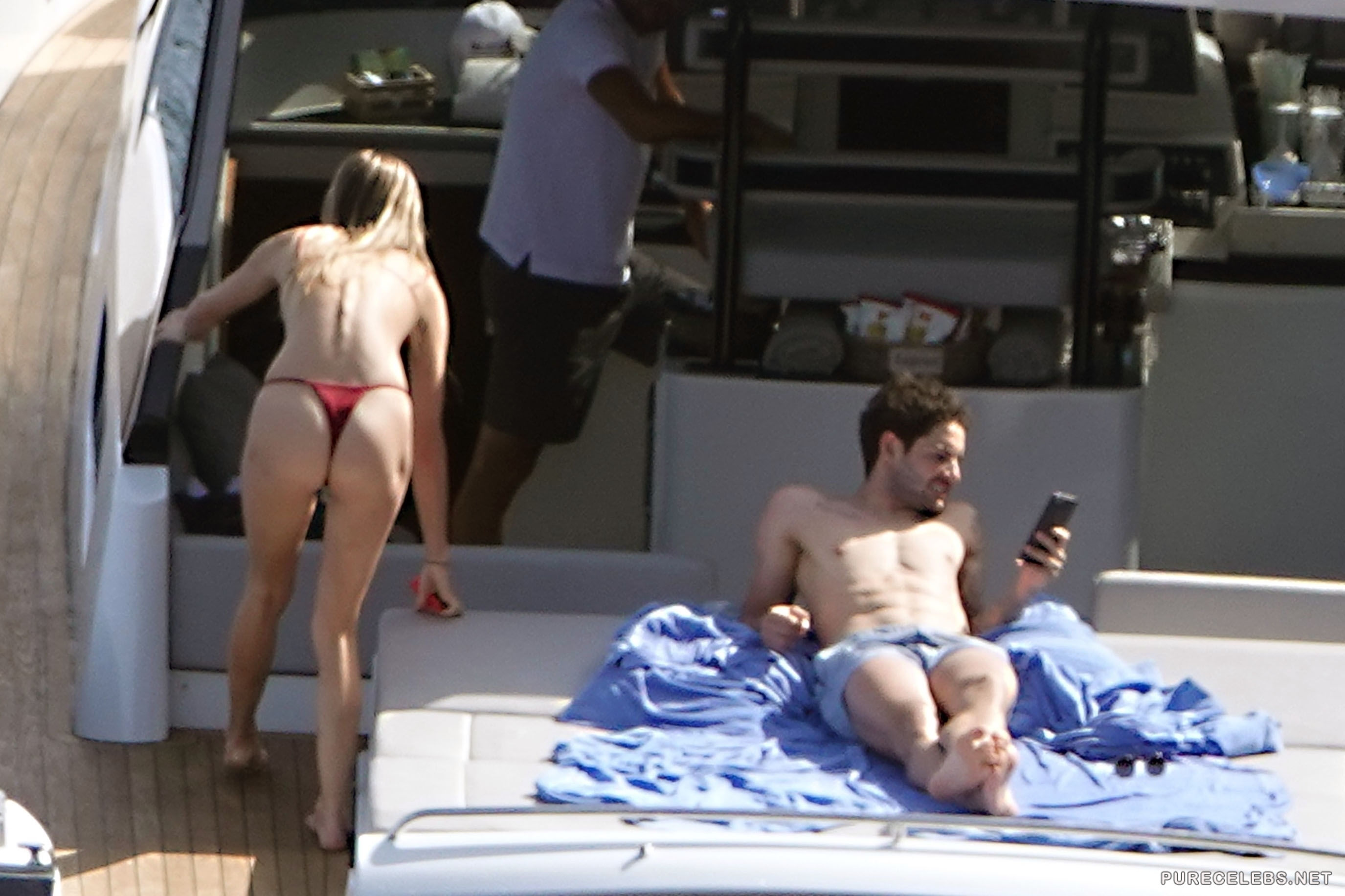 Danielle Knudson takes a boat trip with her boyfriend and since it is a very warm day, she wears her little bikini to get some sun on her fair and perfect skin. The tall blonde with legs that never end is rolling around on the towel and she is exposing her ass to the sun and also to the cameras that are trying to capture it fully.