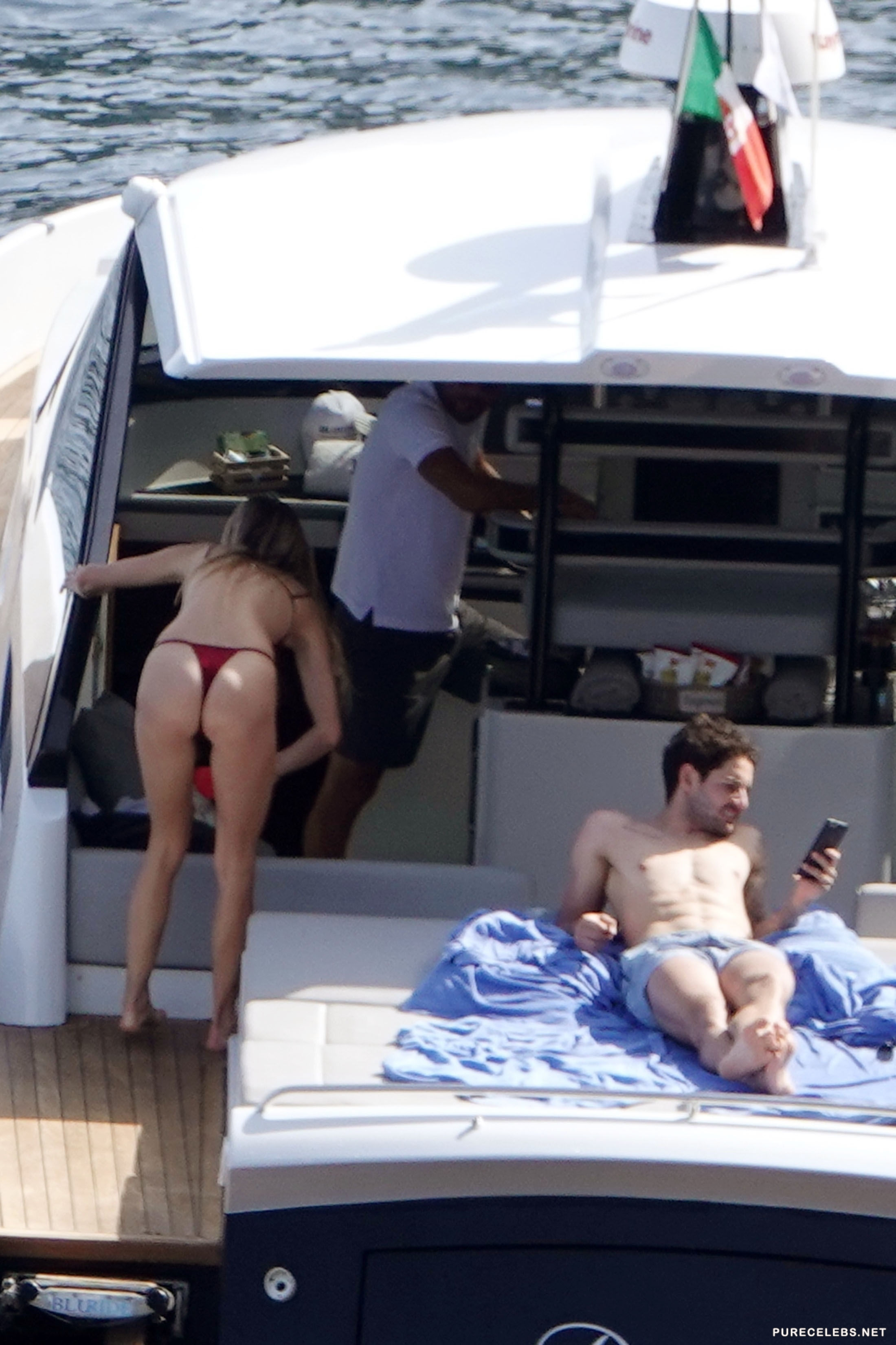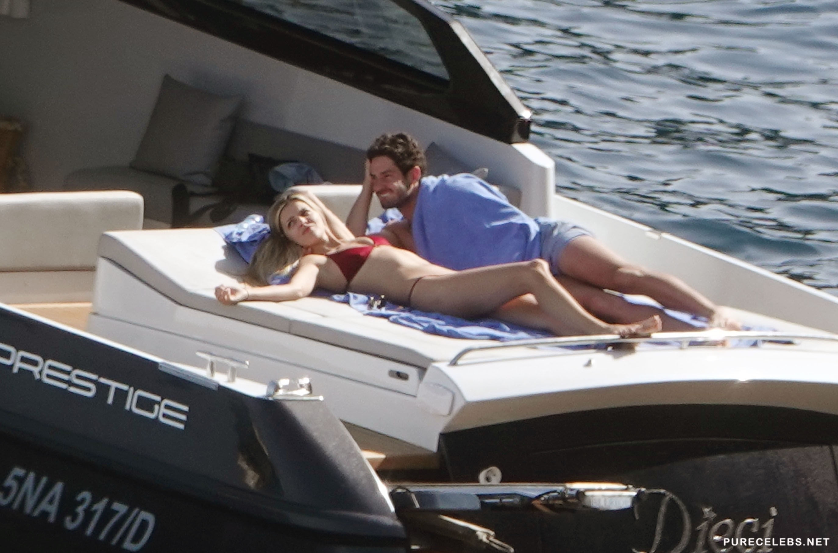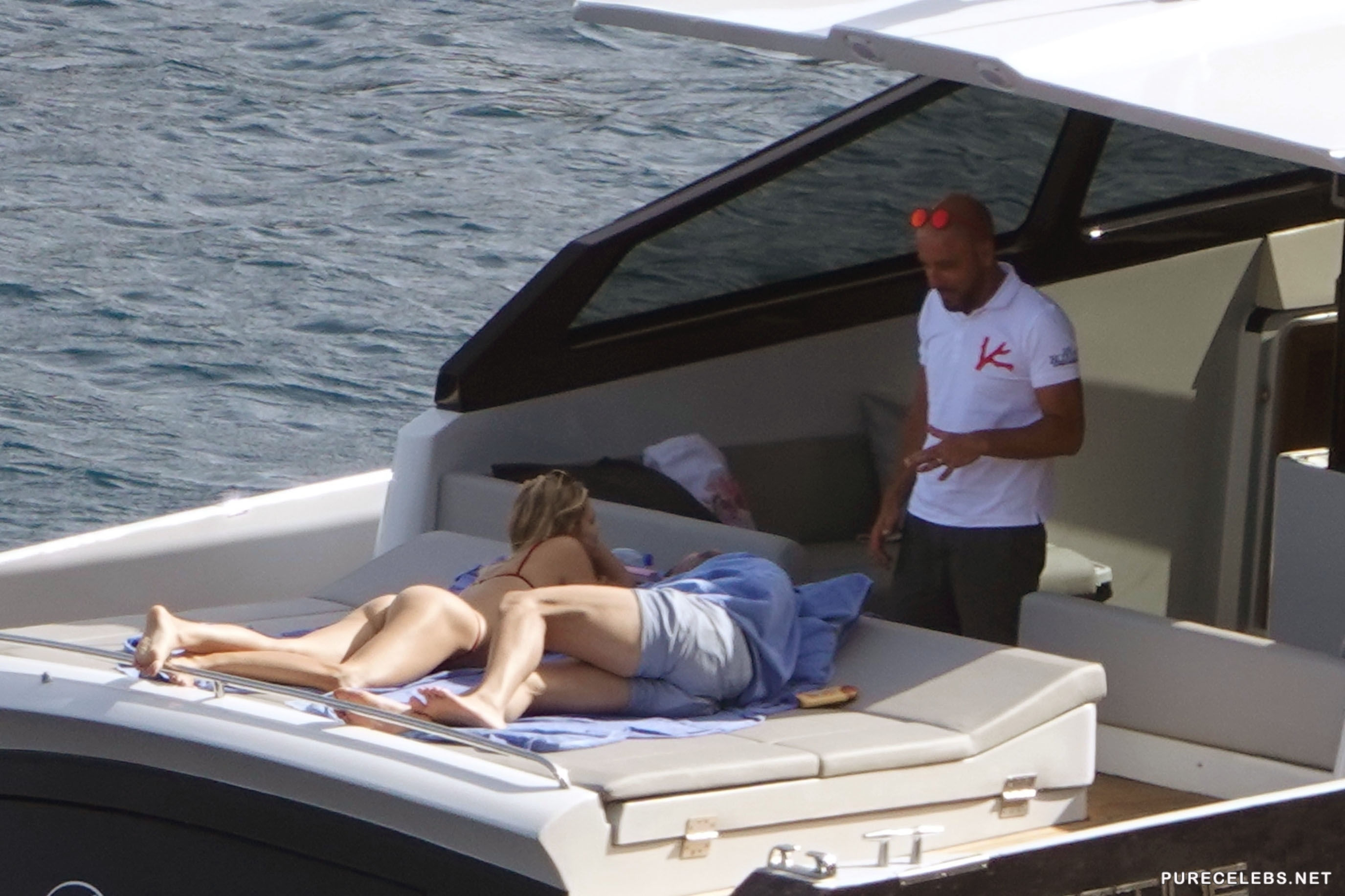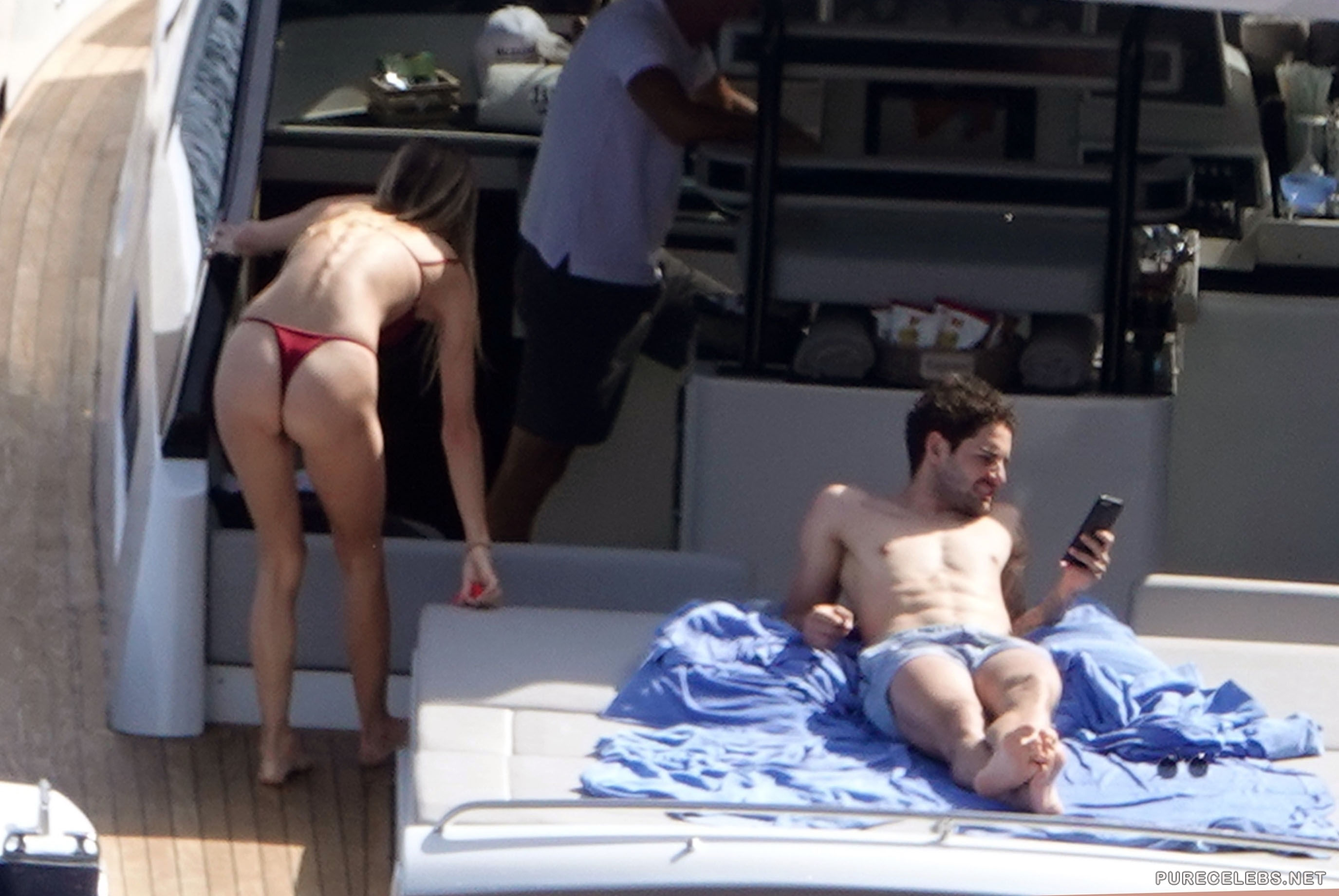 Danielle Knudson takes a boat trip with her boyfriend and since it is a very warm day, she wears her little bikini to get some sun on her fair and perfect skin. The tall blonde with legs that never end is rolling around on the towel and she is exposing her ass to the sun and also to the cameras that are trying to capture it fully.