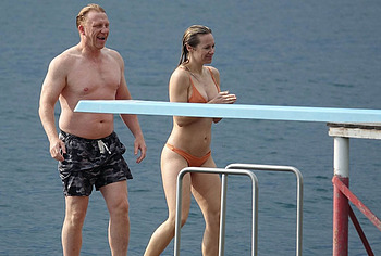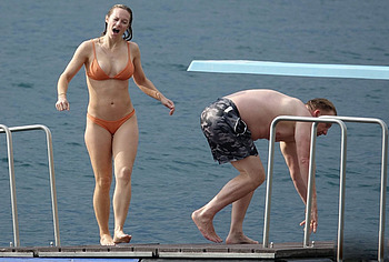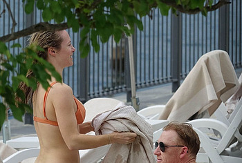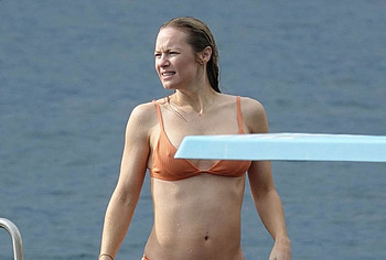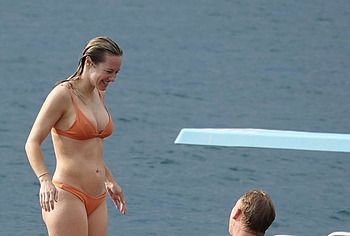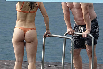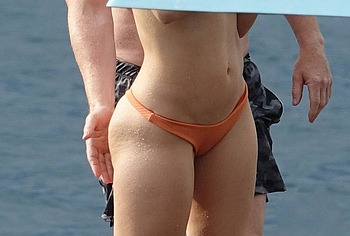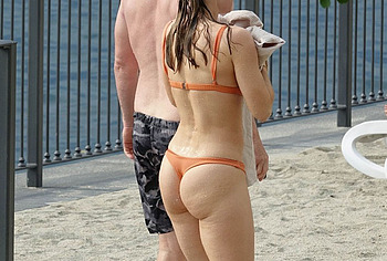 These candid snapshots capture Danielle Savre’s carefree spirits and the magic of beachside relaxation. This 35-year-old was wearing an orange bikini that barely covered her naughty bits. Danielle Savre’s poked nipples were perfectly visible through the wet bra fabric. And when she bent over, her firm ass looked incredibly sexy in a tight thong. I bet you will dream about spanking this sweet babe.