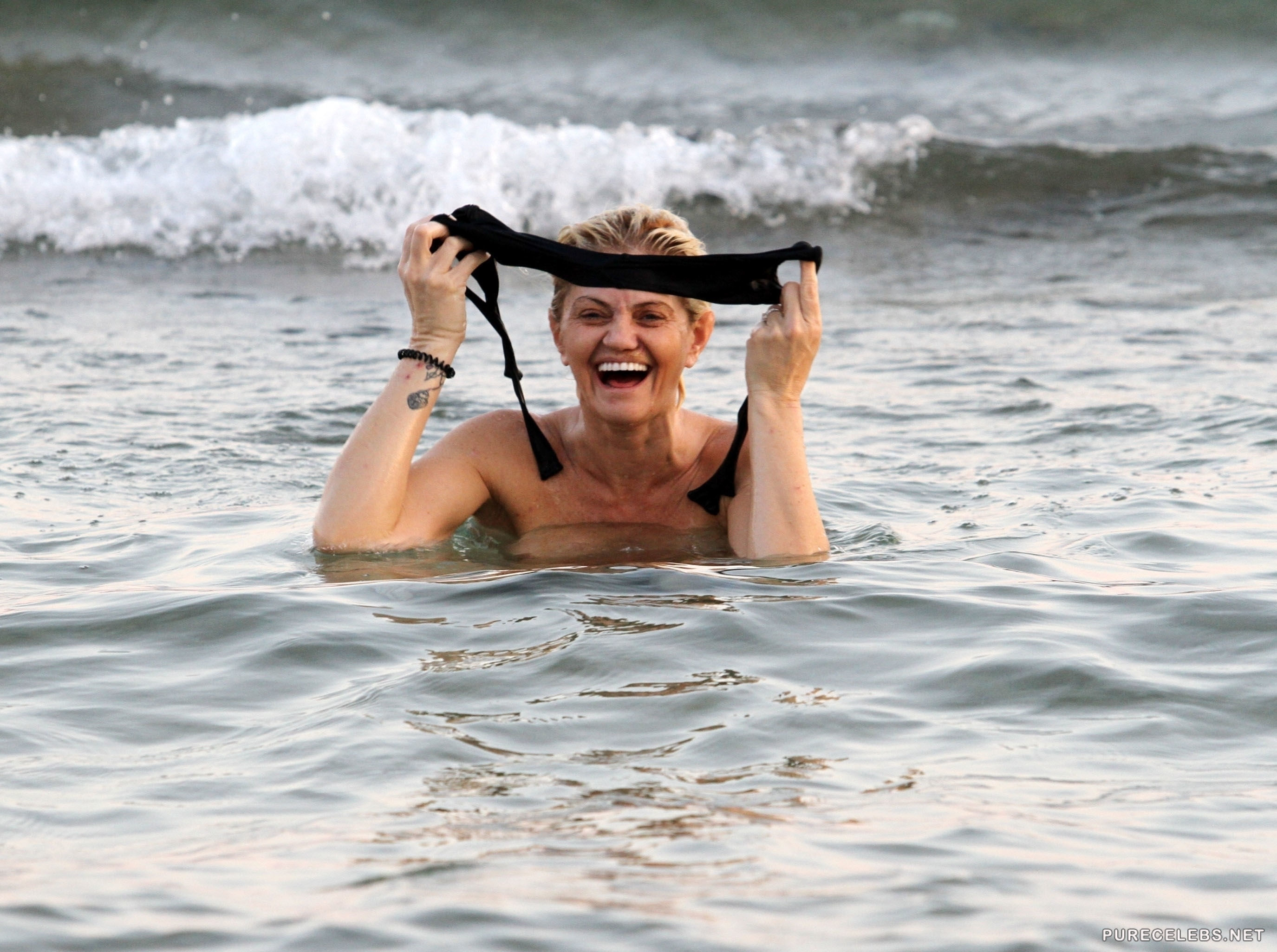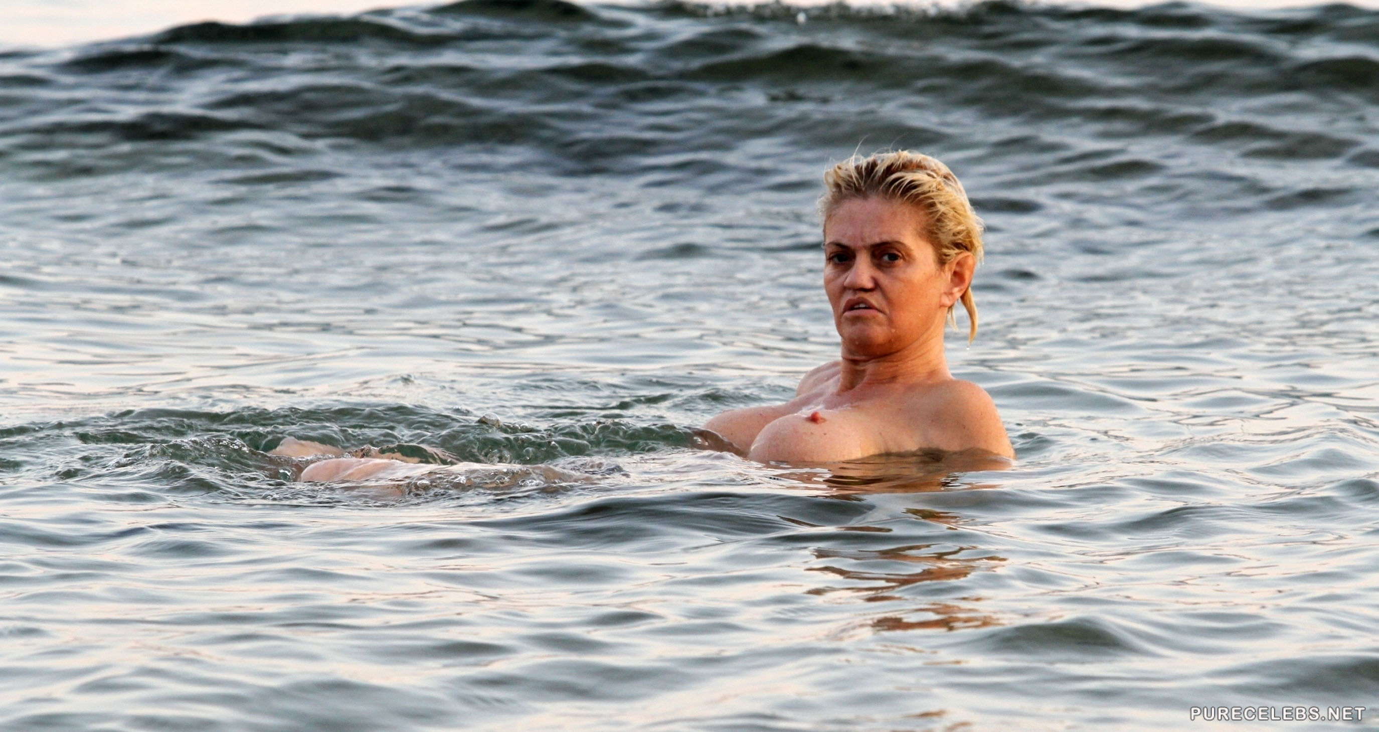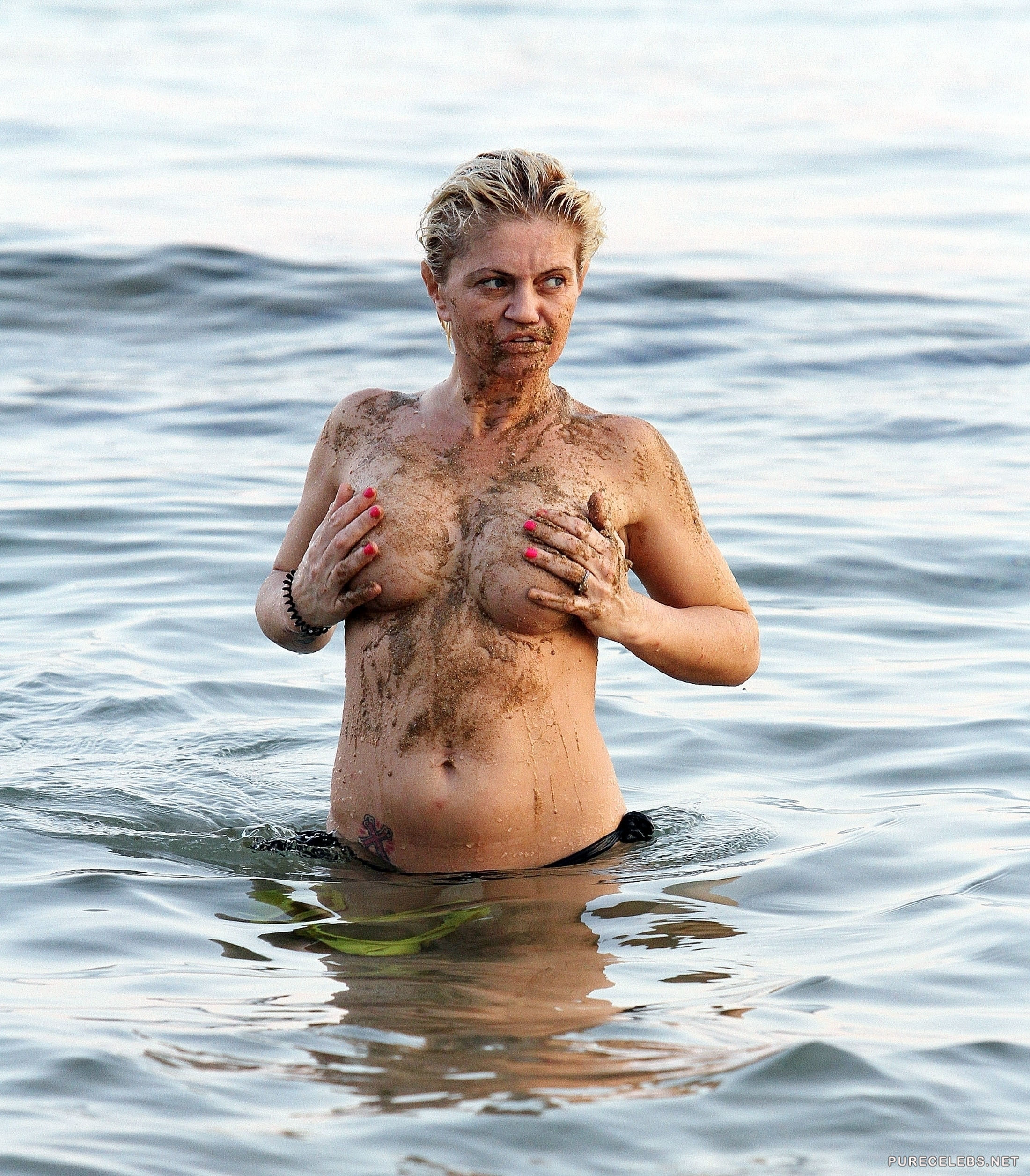 Did you ever think of using sand as peeling, when you go to a vacation? Once you are in the water, like Daniella Westbrook, you can rub it all over your boobs, just like she did, just have in mind that once the sand goes down there, it feels a bit uncomfortable. To get rid of the sand, Daniella just took off the bottom and flashed us with her ass.