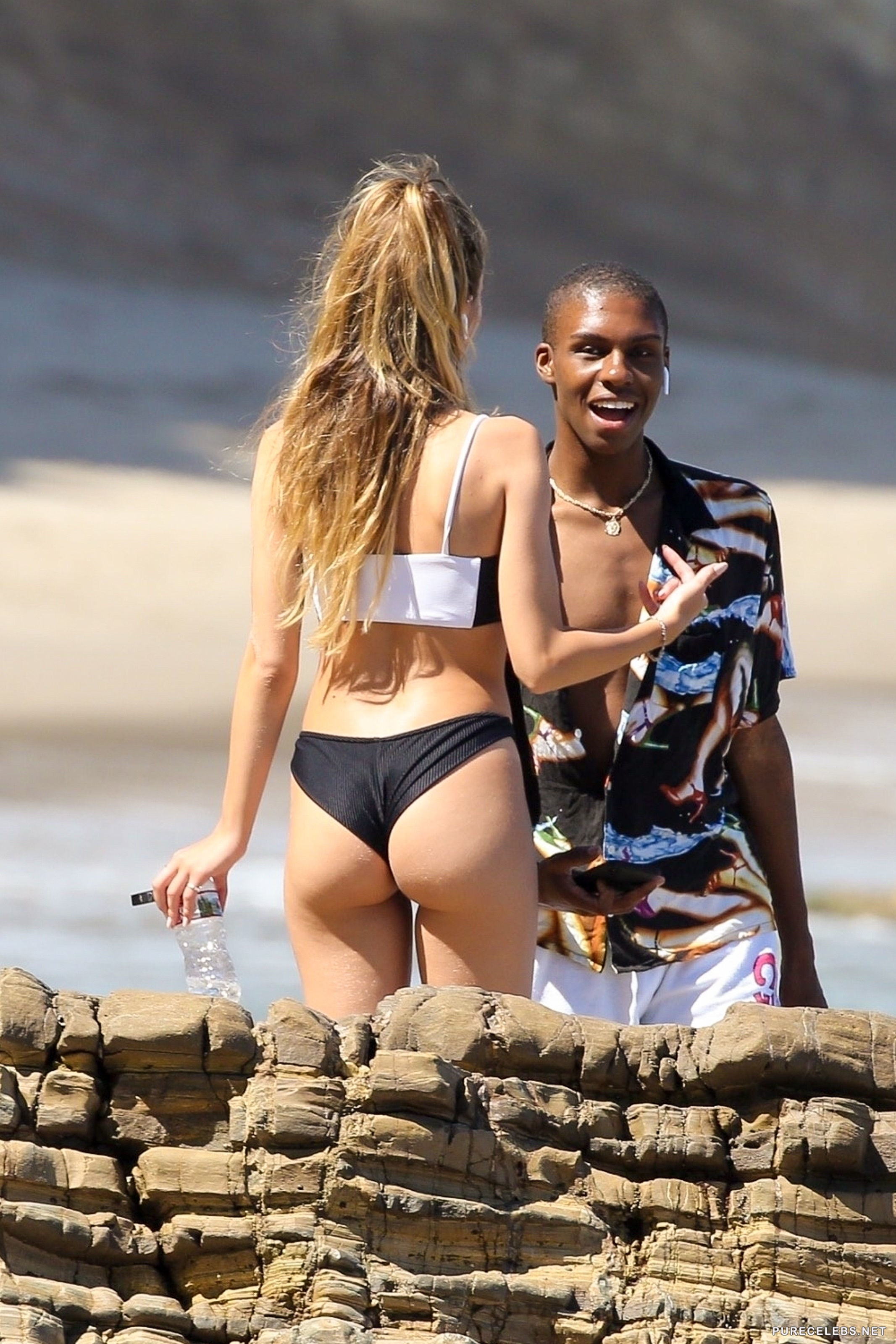 Petite honey in her twenties, Delilah Belle Hamlin is bending over knowing that her ass will get nicely exposed, since she is wearing a skimpy bikini, perfectly aware of her beauty. Her friend kept taking photos of her while she was posing and teasing, but there were also some paparazzi who were using opportunities to get their job done. Even though she showed off middle finger, we still like her.