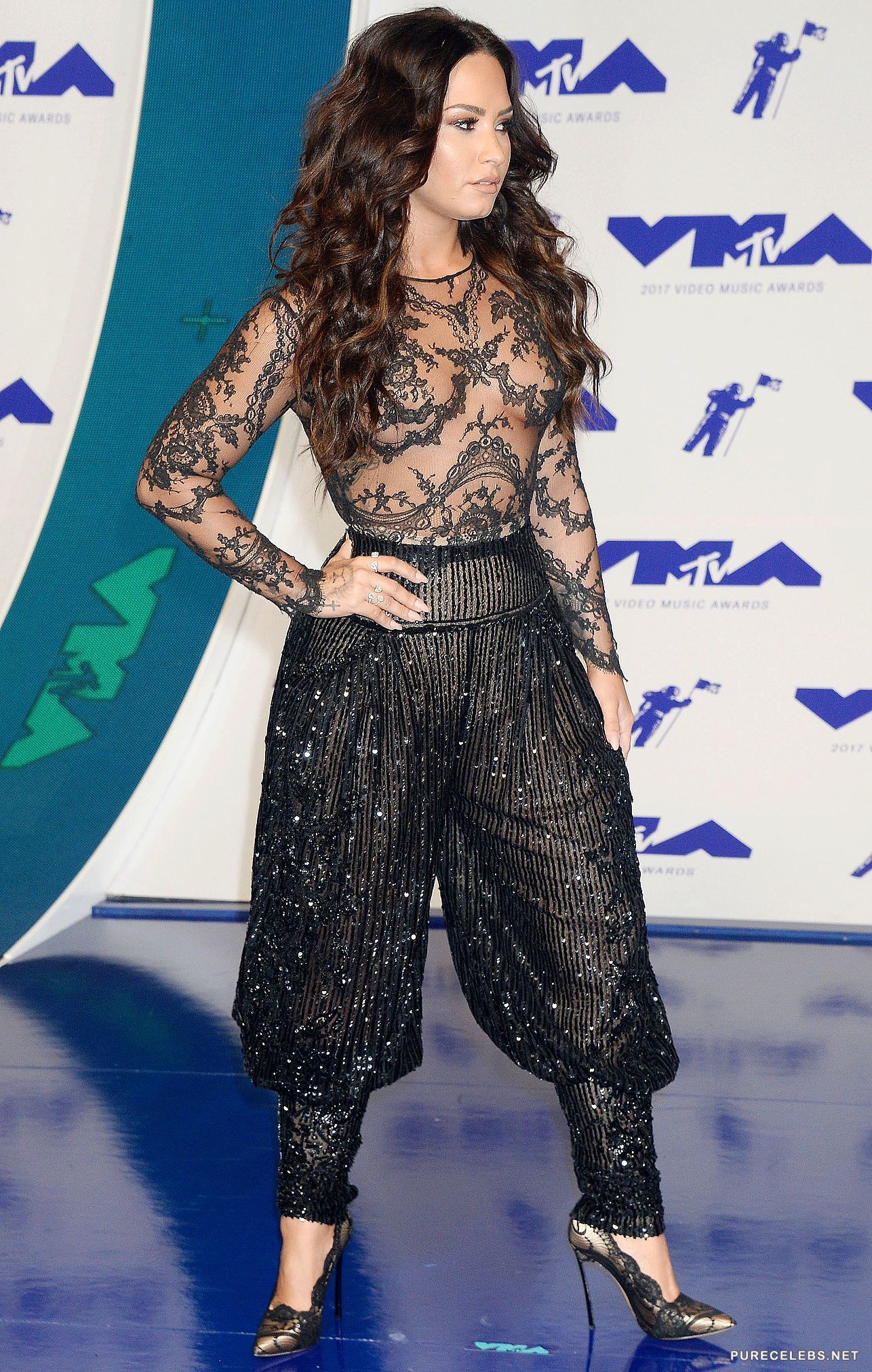 World famous singer Demi Lovato is a brunette babe that nobody can forget once they see her. She knows that sex appeal goes hand in hand with music and celebrity status, so she wasn’t shy and put on a mouthwatering outfit for the MTV video music awards. There was a see through top which attracted a group of paparazzi, and a pair of high heels that made her stand out from all the rest.