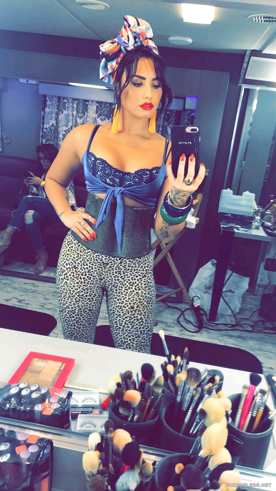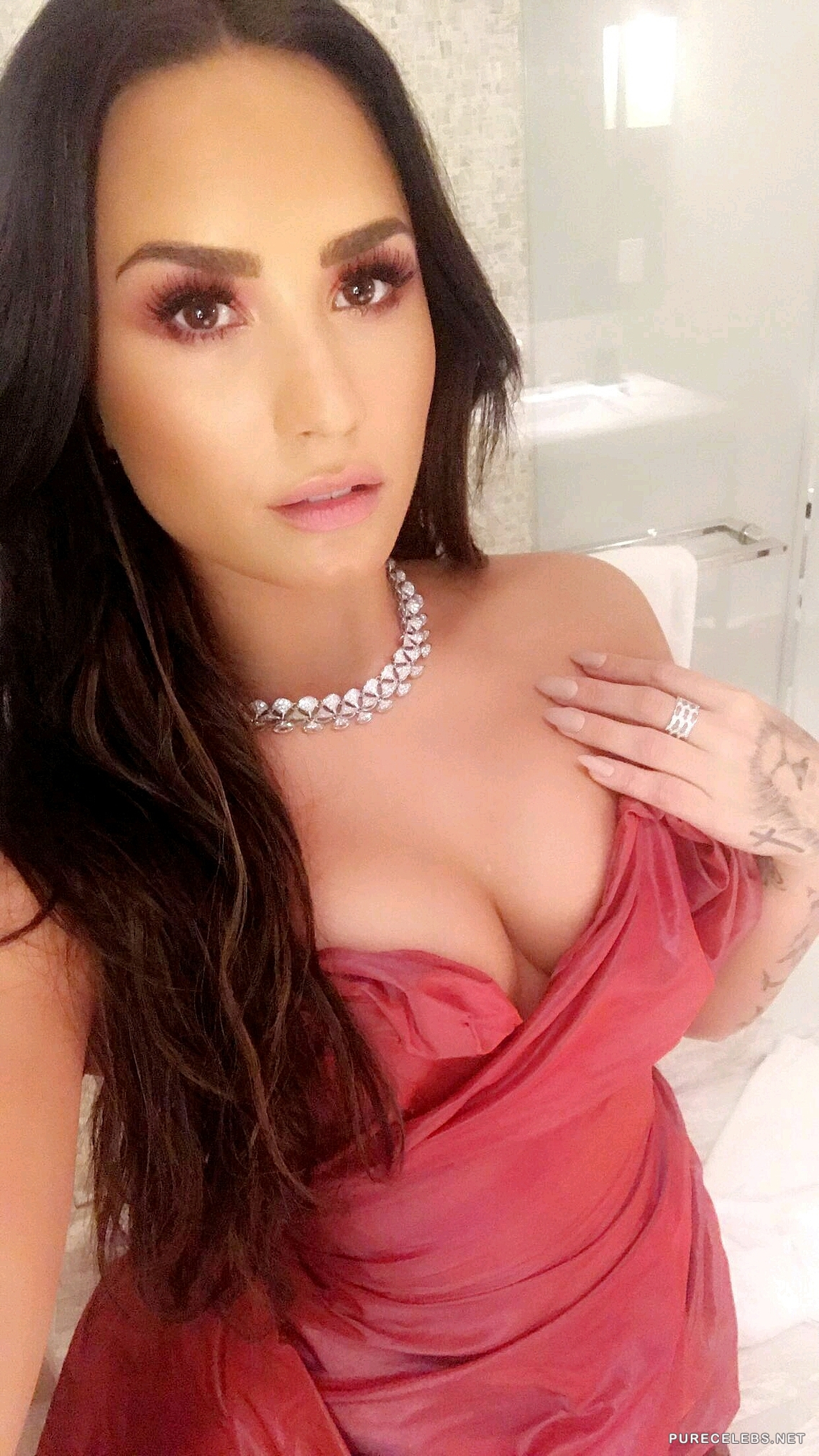 World famous singer Demi Lovato has been in the public eye for some time. She started out as a child star at Disney, but recently her sexy body has been gaining popularity as fast as her songs. This steamy gallery provides perfect shots of the young singer’s plump natural breasts, and also features a few selfies from her private collection. We sure are happy that Demi likes posing with her clothes off.