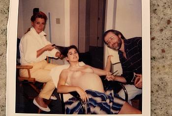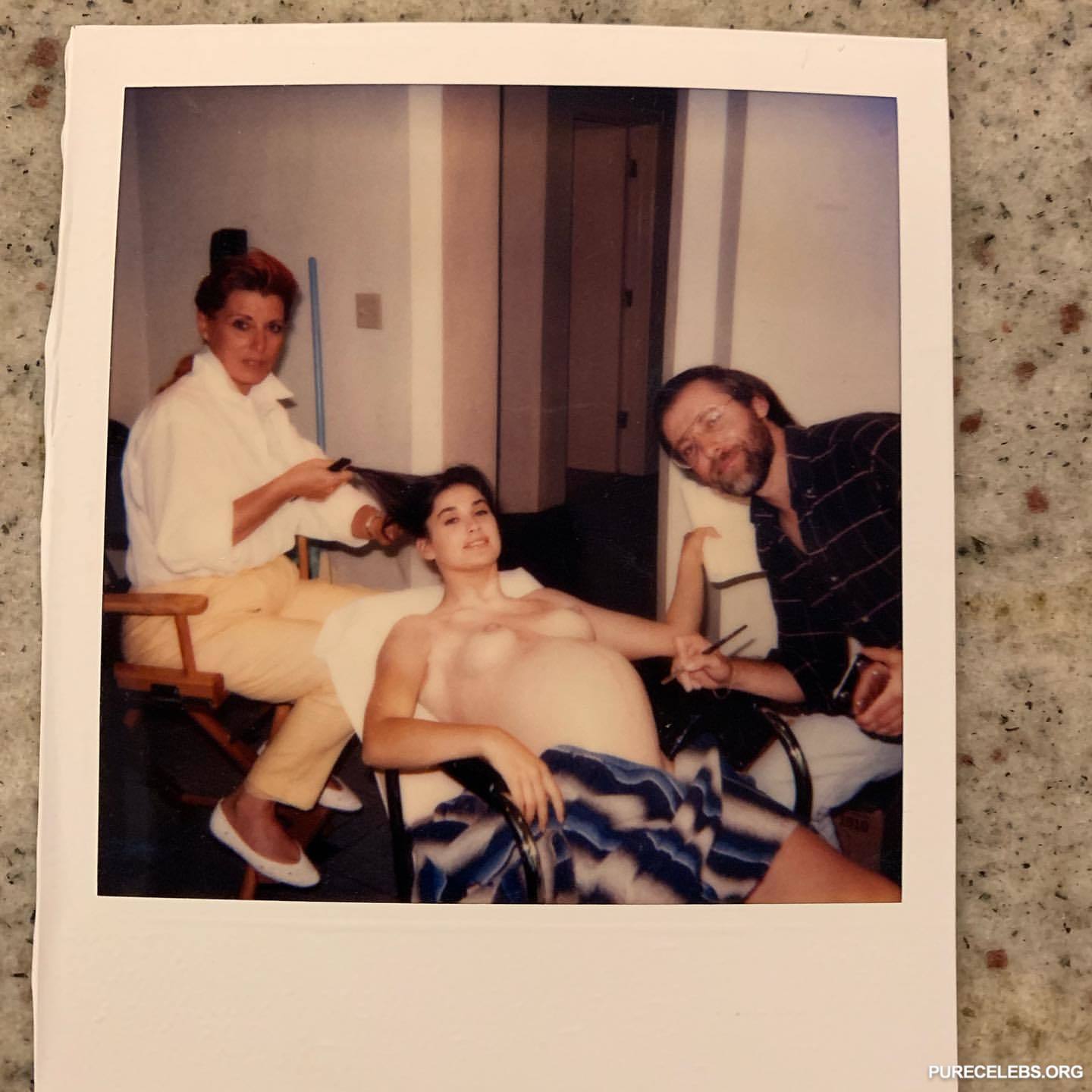 Hot brunette Demi Moore is no stranger to acting in films and magazines. For example, recently this actress posed naked for BAZAR Magazine 2020. A celebrity in a wide pink hat sat on the edge of the pool, flaunting her wonderful buttocks and covering her breasts with her hand. You can also enjoy the look of her juicy tits when watching excerpts from The Seventh Sign (1988). There Demi Moore will play pregnant, and will take off her bathrobe by flaunting her boobs and nude hairy pussy.