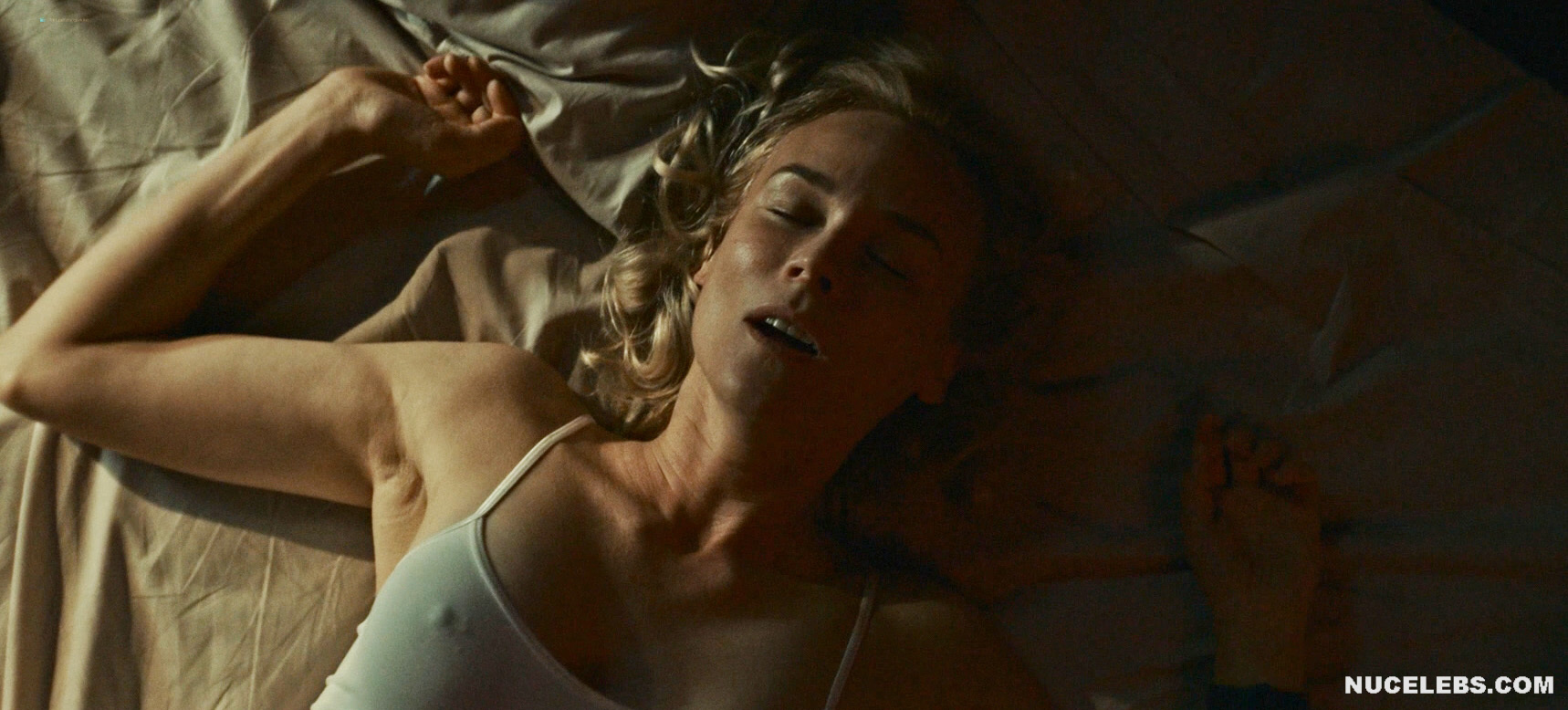 Hot blonde Diane Kruger flaunts her nude body in Visions. There she was in a white tight top lying on the bed. You could see how hard her nipples became when the man began to lick her sweet pussy… And Diane Kruger nude lies squirming on the bed. She squeezes her sweet tits with her hands and moans sweetly… These photos looked so hot that you will definitely jerk off looking at them for a long time!