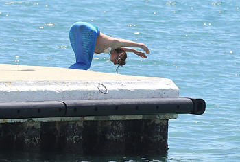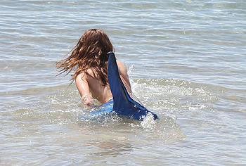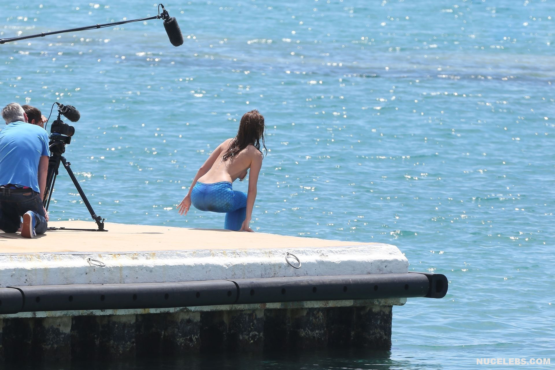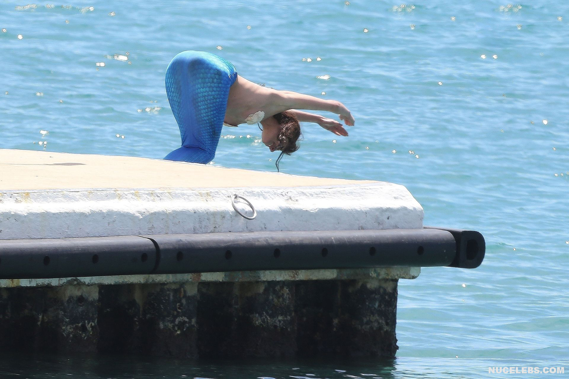 Want to see hot celebrities nude? Then you will definitely like watching a photo shoot with Doria Tillier. This French model decided to try herself in the image of a mermaid and in this she was helped by a long blue tail, which she put on her legs. In addition, Doria Tillier was topless! In some pictures of Doria Tillier nude boobies were covered with large shells. But when she was in the sea, the shells slid off and her peaches were completely exposed.