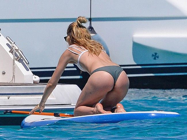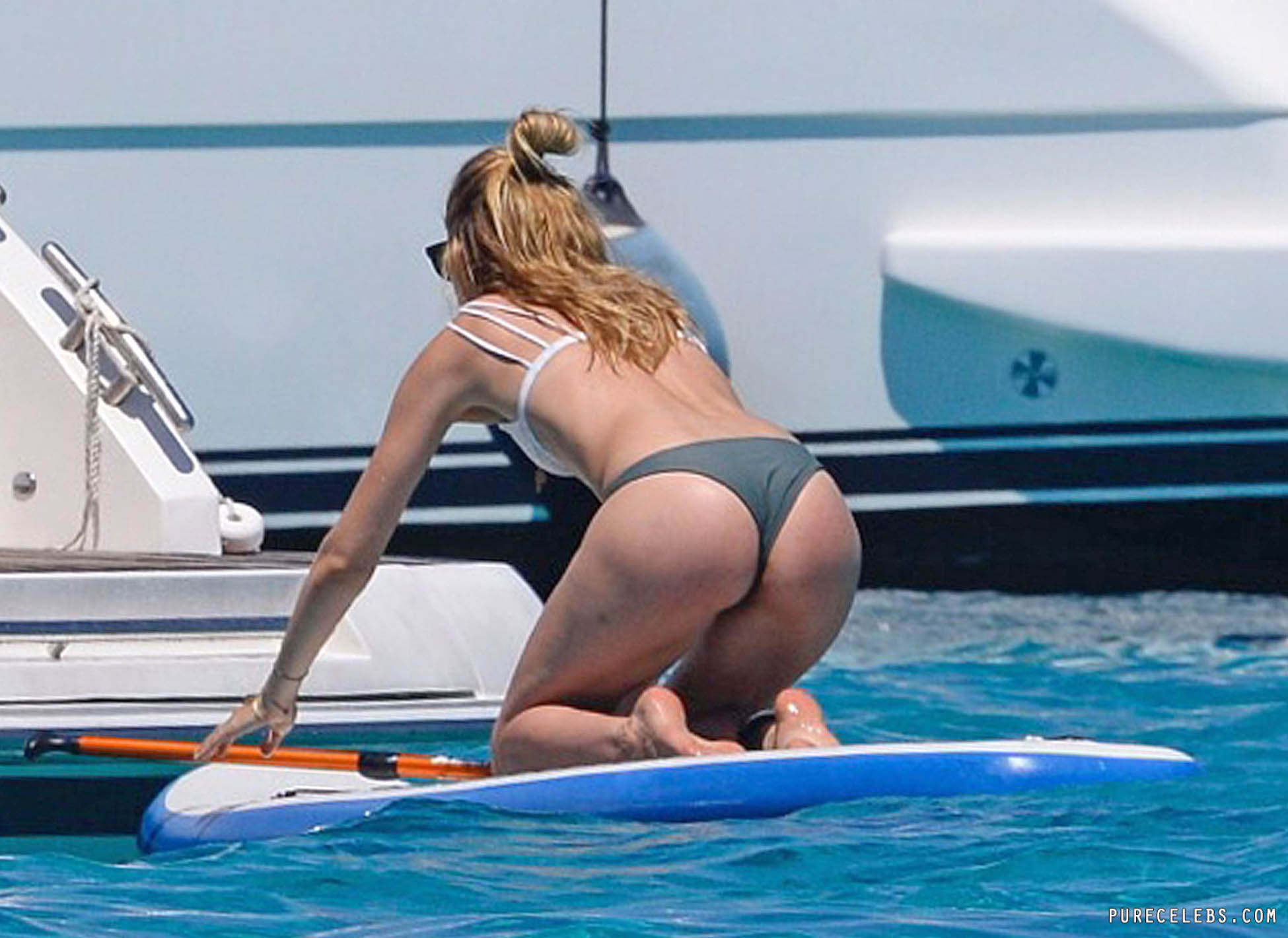 Dutch actress and model Doutzen Kroes has been in the public eye for a while now, but only now are we seeing such hot paparazzi photos of her. This blond seems to have a gorgeous booty judging by these pictures in a bikini. She was unaware that sneaky photographers were on the prowl. That’s why we’re getting a good look at her ass, and her wet glistening body.