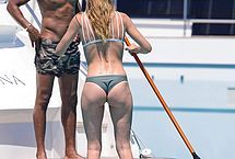 Dutch actress and model Doutzen Kroes has been in the public eye for a while now, but only now are we seeing such hot paparazzi photos of her. This blond seems to have a gorgeous booty judging by these pictures in a bikini. She was unaware that sneaky photographers were on the prowl. That’s why we’re getting a good look at her ass, and her wet glistening body.
