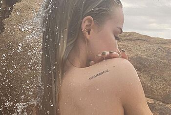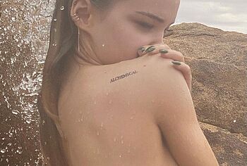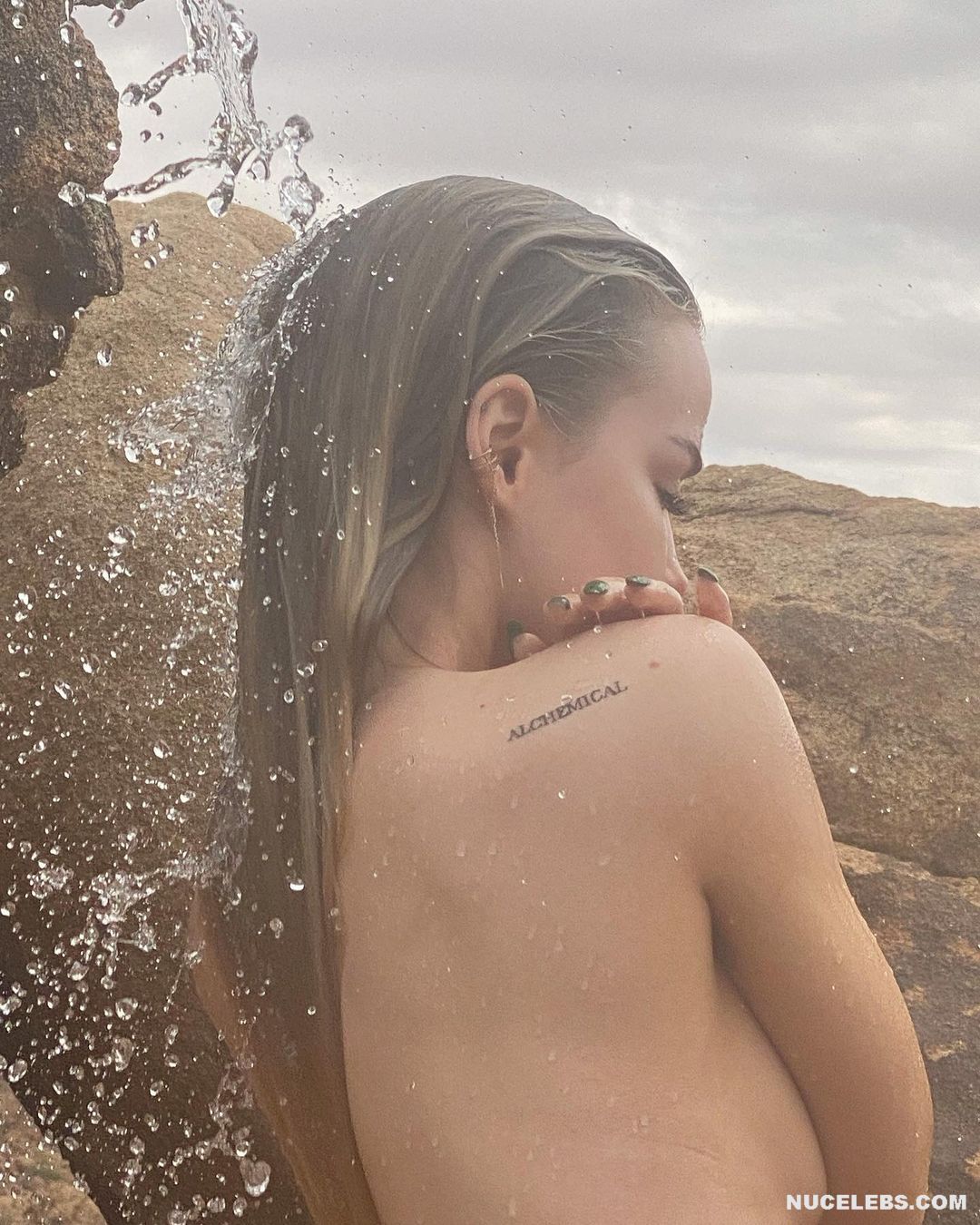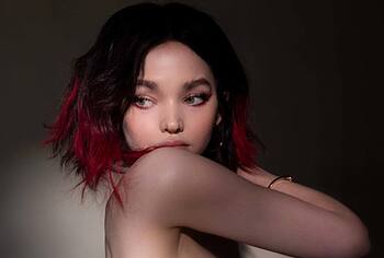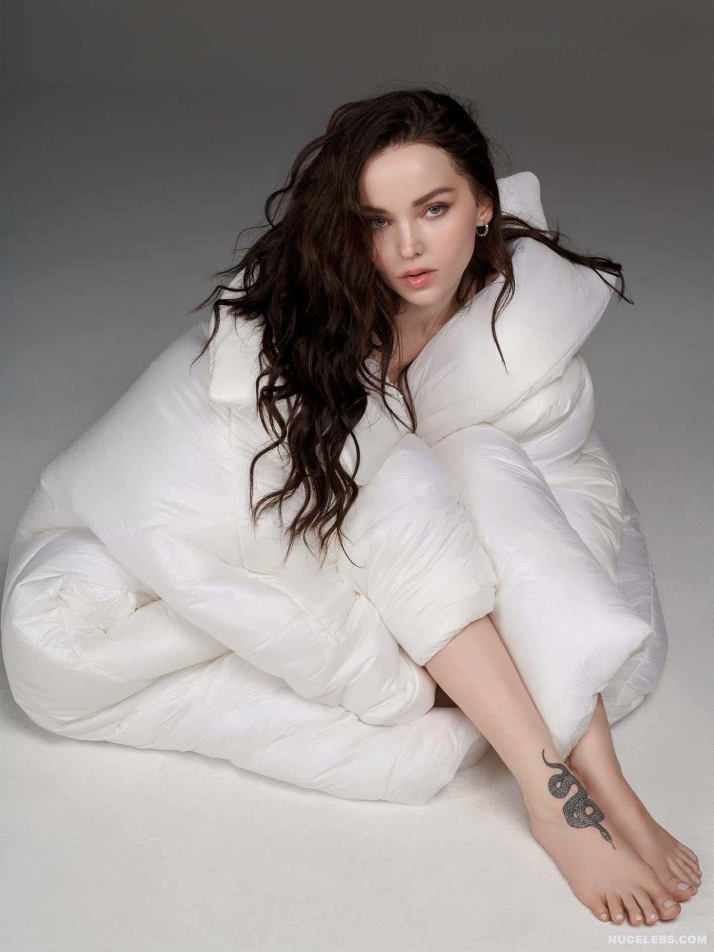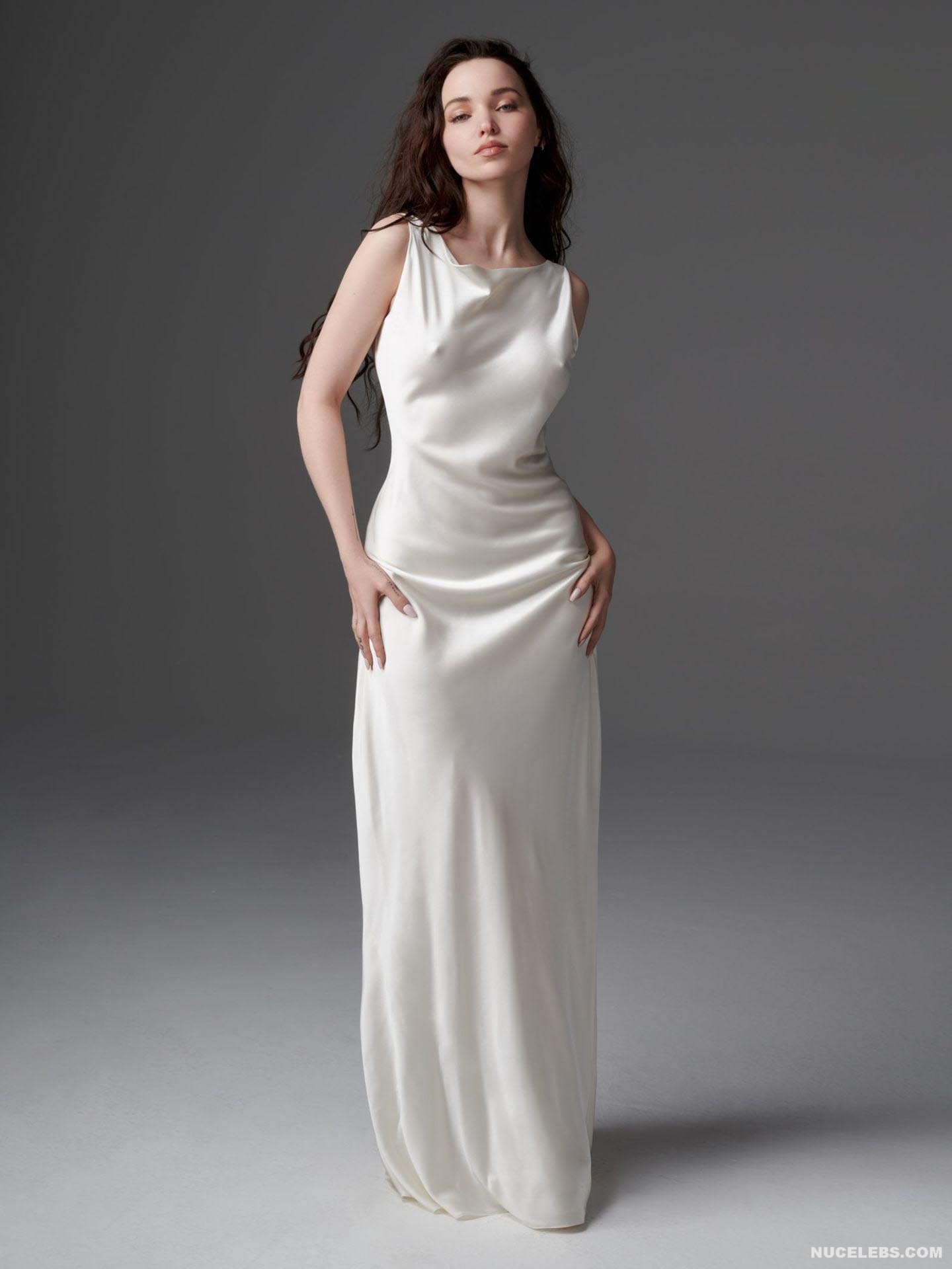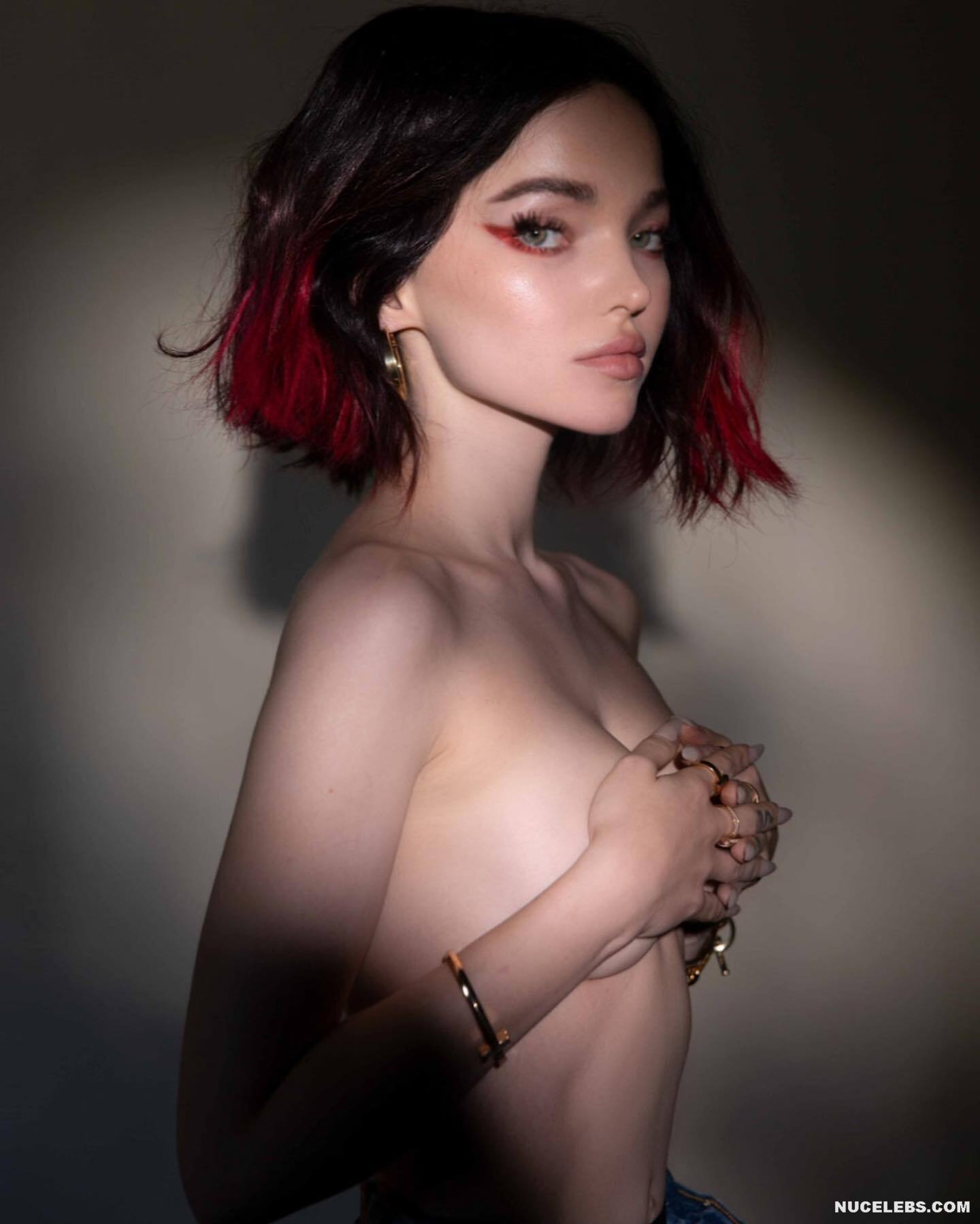 Dove Cameron will excite your imagination with her nude photos. This 27-year-old American actress took a whole series of topless photos. For example, she was photographed topless in the studio, covering her breasts with her hand. But the photos turned out to be even sexier when she posed under a summer shower. This charming brunette was wearing a white bikini. At some point, Dove Cameron dropped her bra and her nude boobies jumped out!
