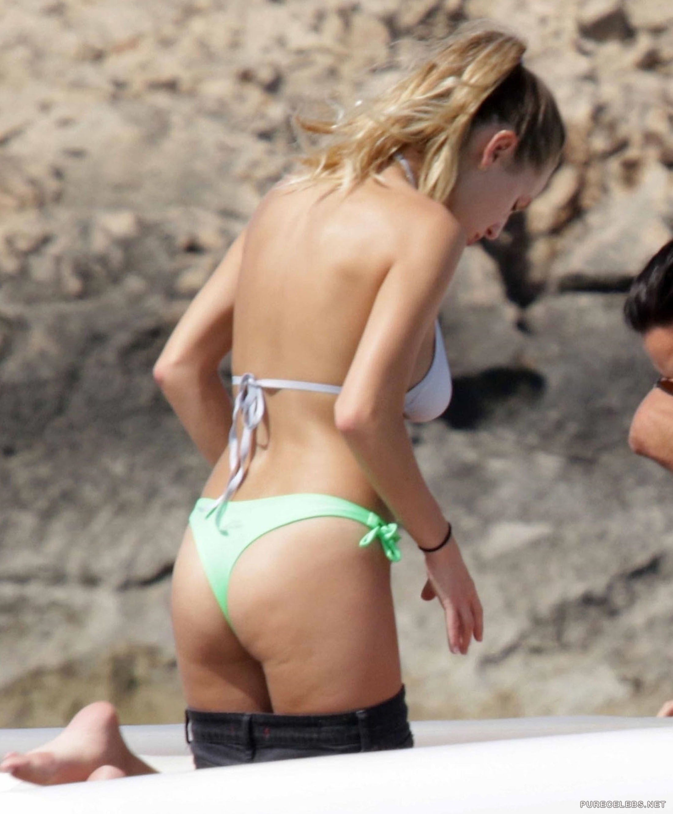 Sweet American model and actress with a well known dad, Dylan Penn was working hard for a while and she seemed so happy to jump in a bikini and on a yacht with friends, for a well deserved vacation. As soon as this hot babe took off the shirt, we could see her big tits and quite nice ass, less clothes she had on, our day was getting better.