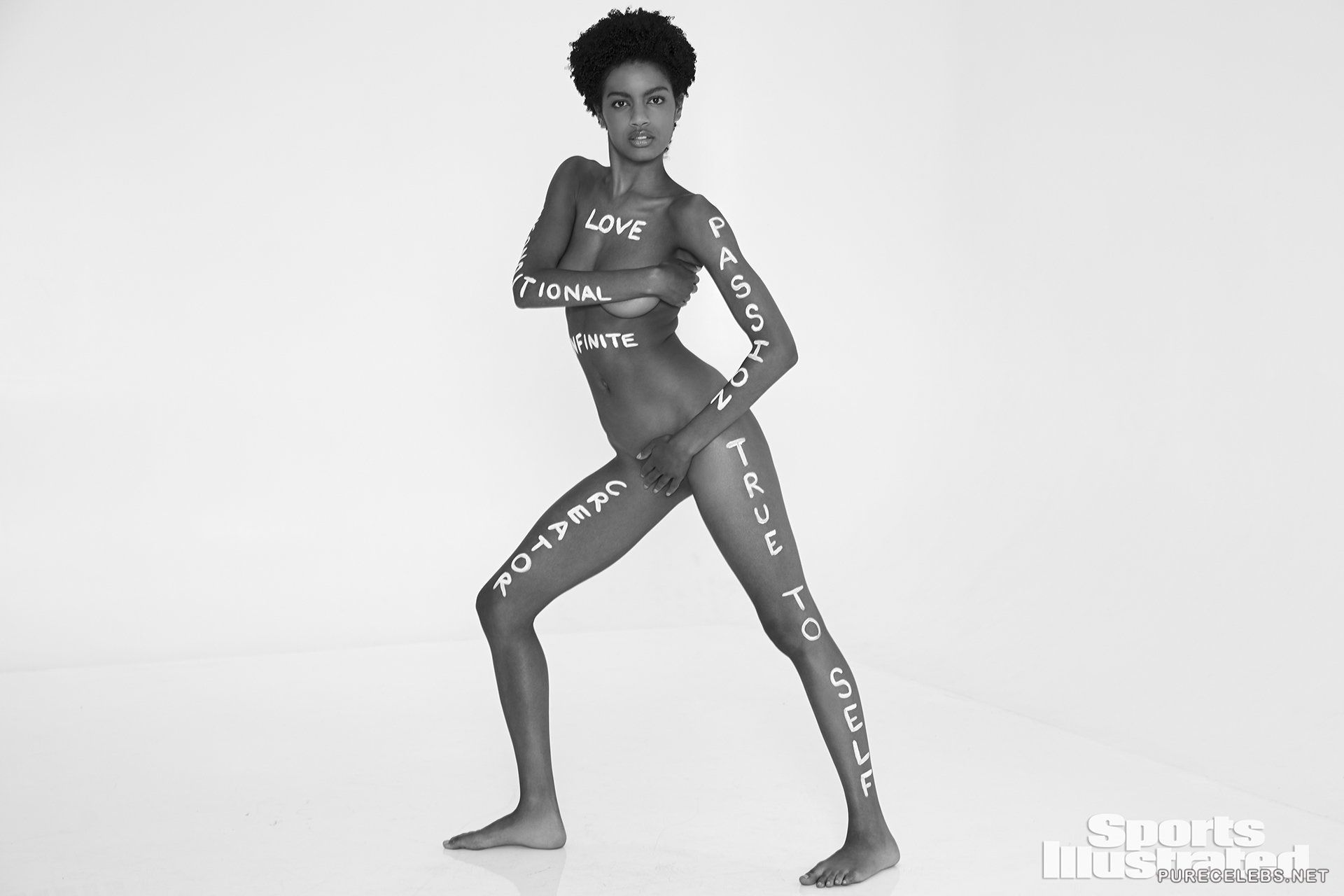 Sports Illustrated surprised us this year with an excellent campaign that features amazingly hot young models posing completely nude for their magazine. The latest beauty to be photographed for the publication is Ebonee Davis. This hot babe posed for some classy, erotic black and white photos with powerful slogans written across her chest and arms. Her dark ass and natural round tits look absolutely amazing in these provocative photographs.