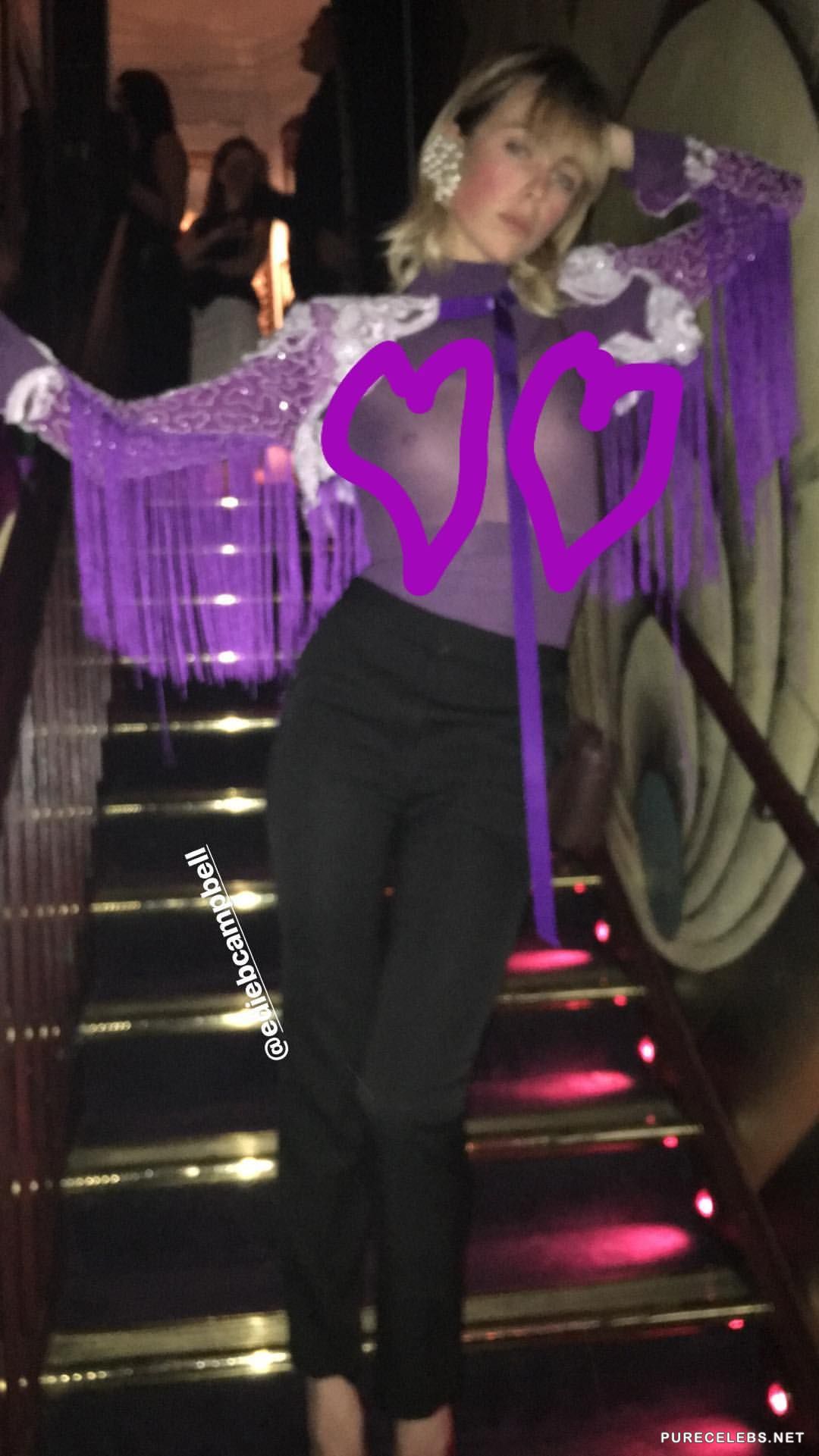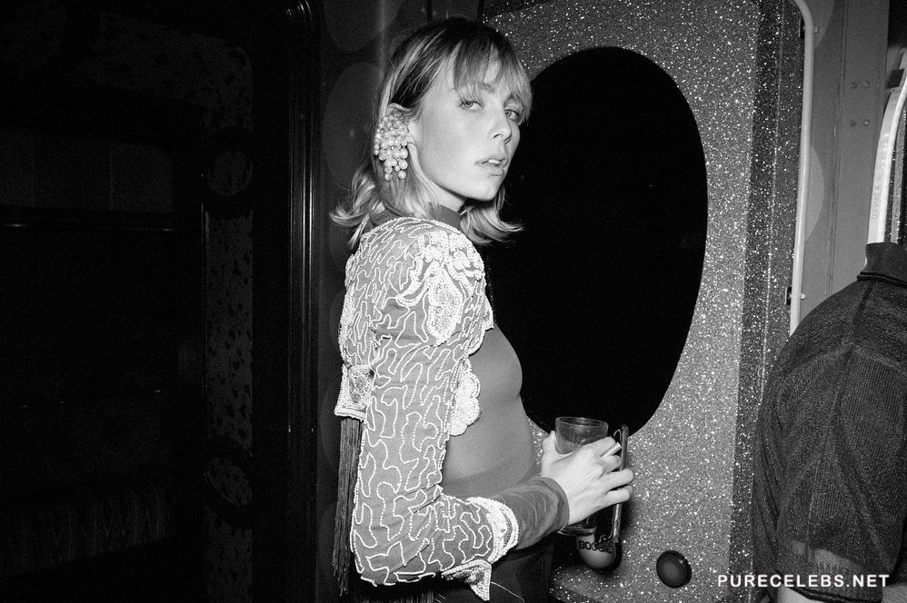 High fashion models are often known for their provocative style. Edie Campbell is no exception. This sexy young blond graced the red carpet wearing a skimpy purple dress that was completely sheer. The British babe enjoyed an after party with her colleagues and even snapped some selfies of her small boobs. She also took the time to pose for eager reporters and display her perfect little tits to the public.
