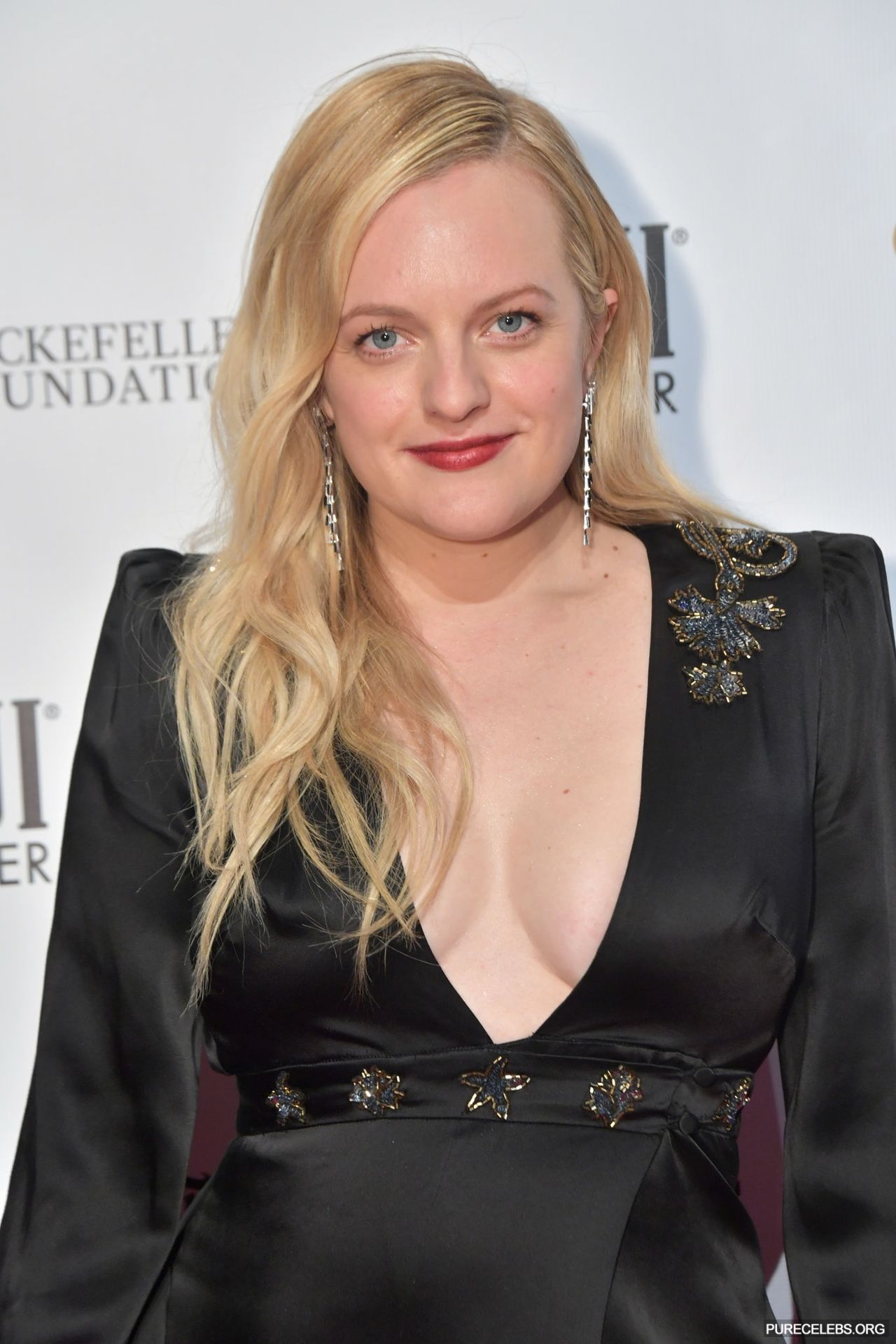 American actress Elisabeth Moss was in a rather awkward situation, and the paparazzi immediately managed to capture this upskirt moment. The celebrity was photographed in a long black dress showing her great cleavage and a high cut from which her slender legs peeked out. But since the incision was very high, then periodically everyone could see the black panties of this hot blonde. Well, that looked very sexy.