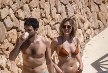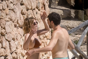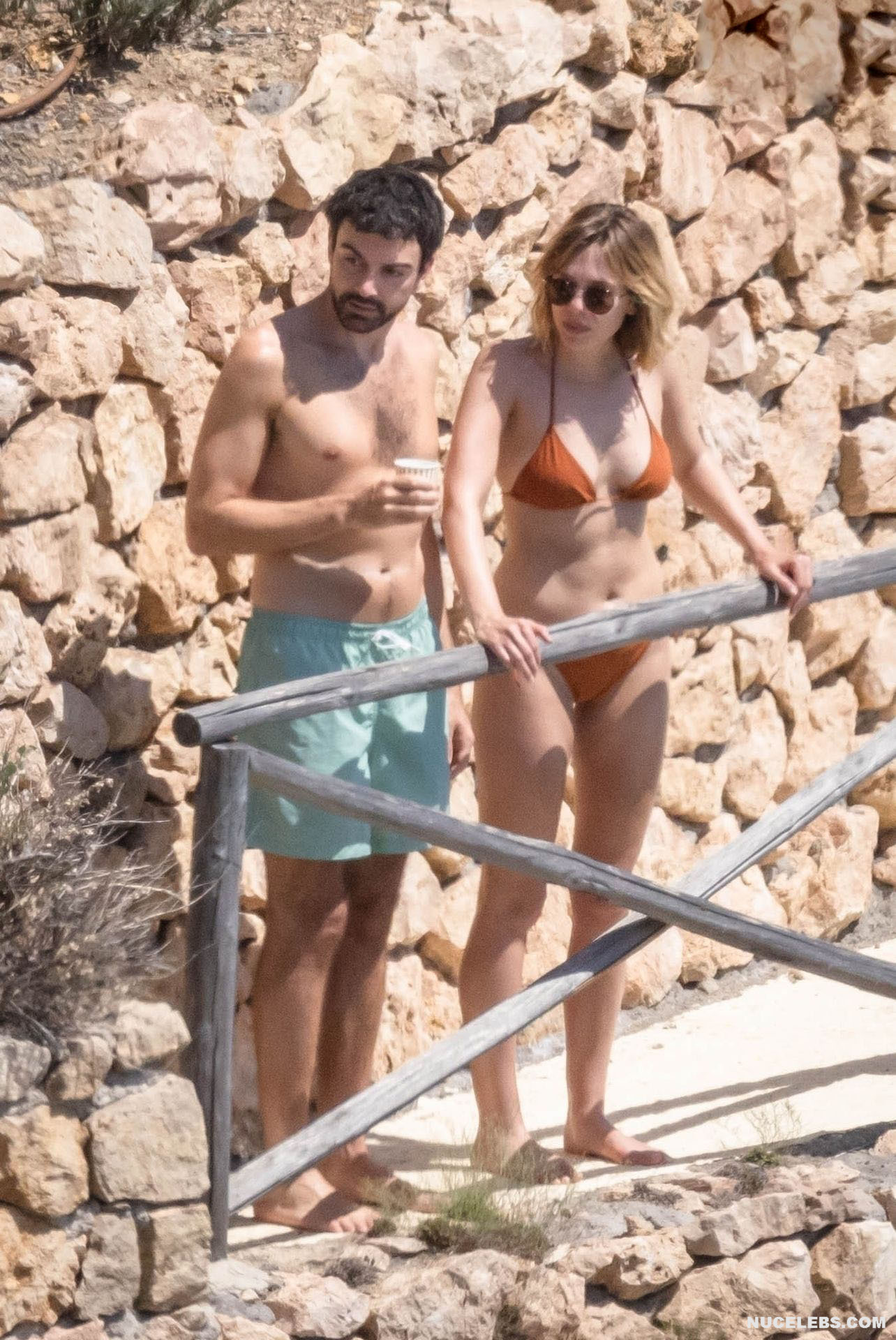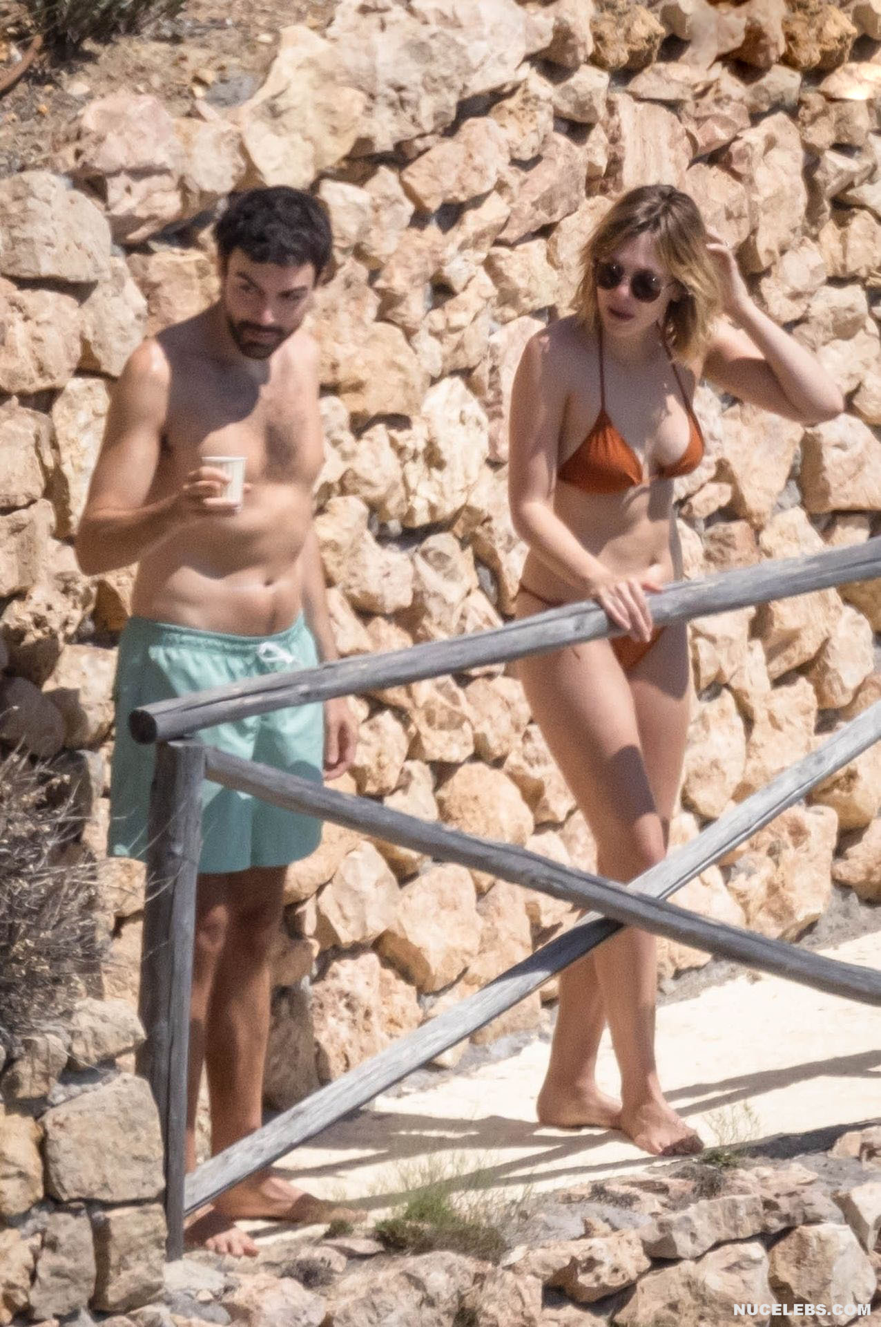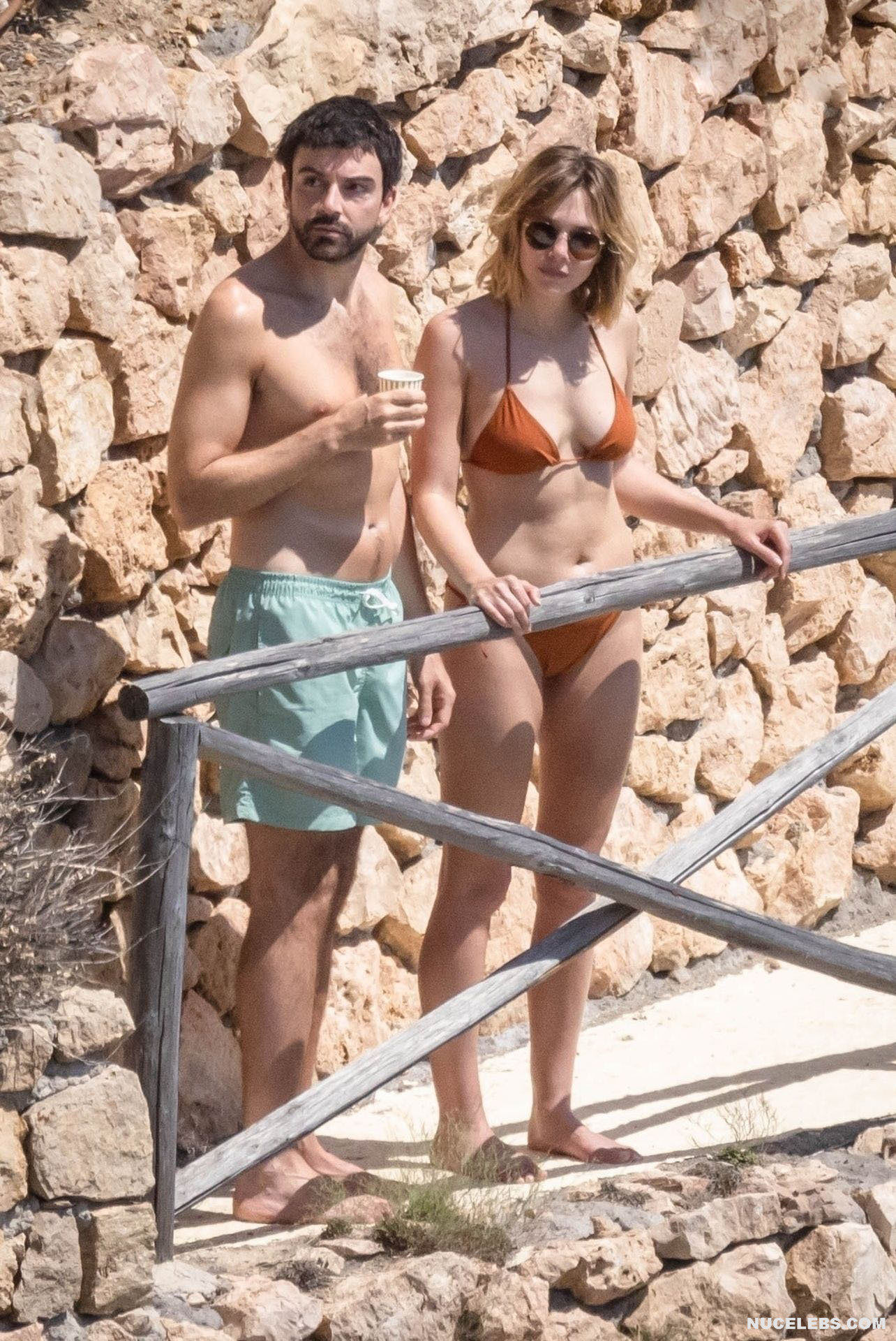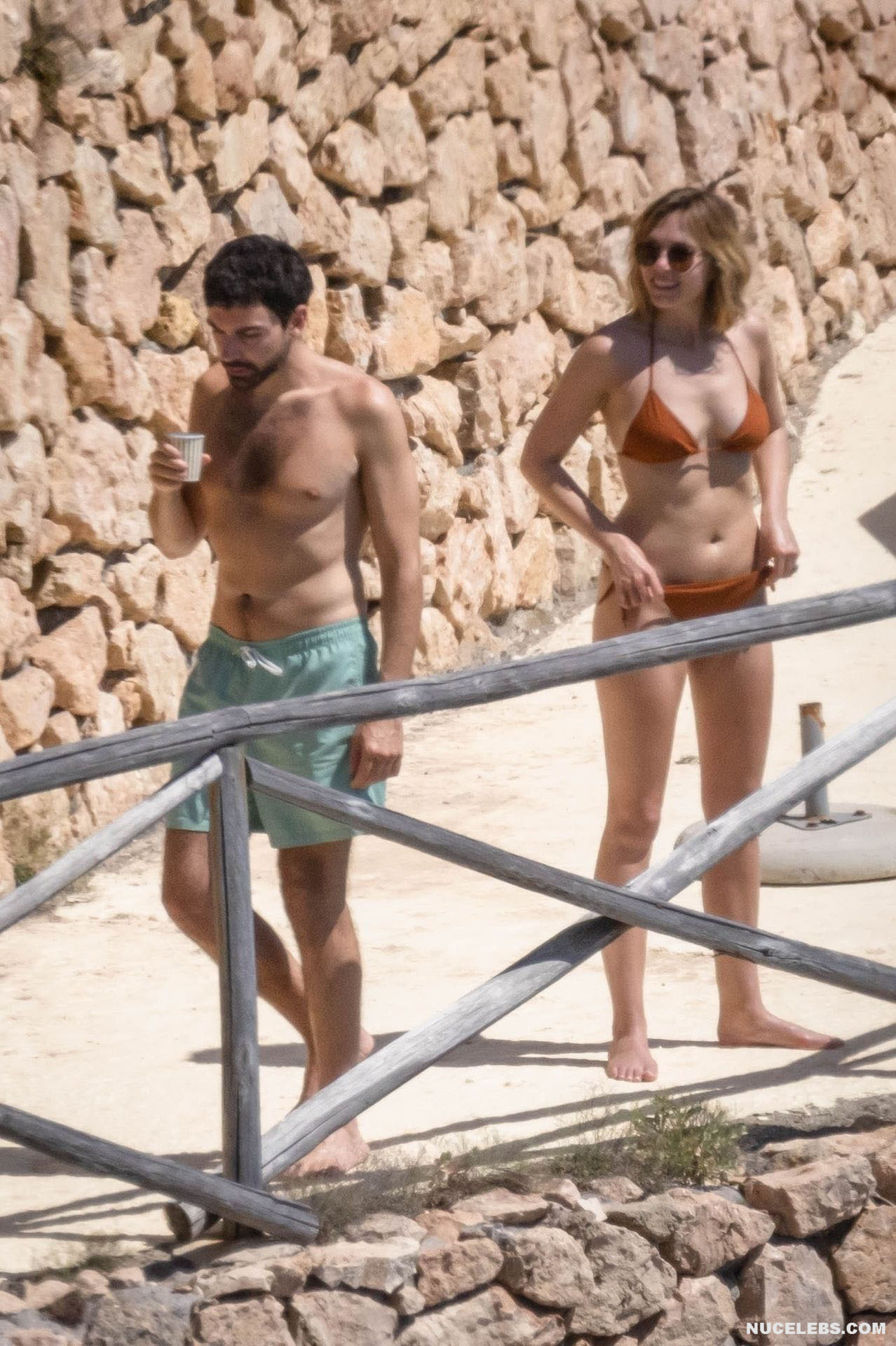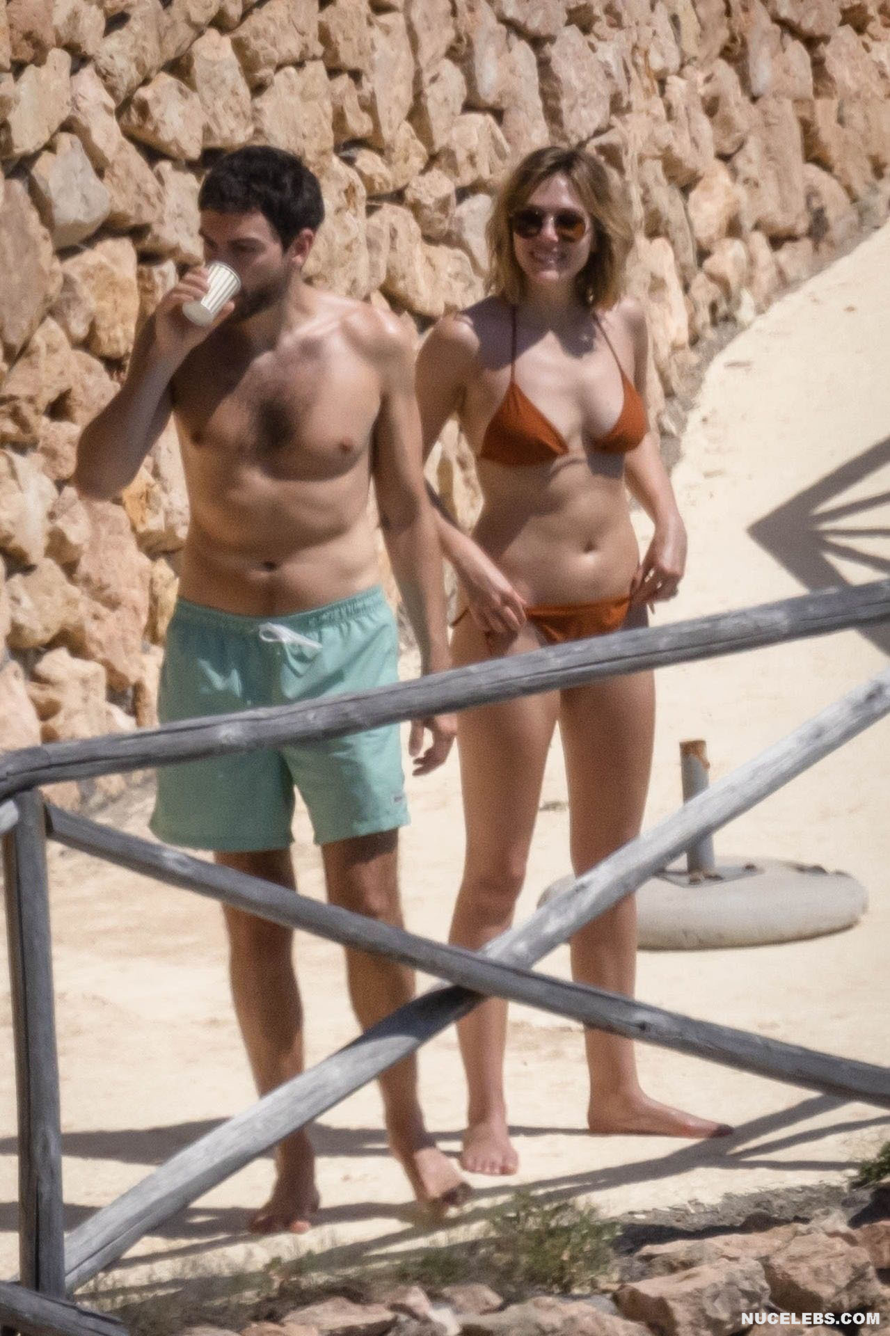 While Elizabeth Olsen was relaxing on the beach, the paparazzi did not waste time and took pictures of her. Of course we were all hoping to see Elizabeth Olsen nude pics. However, this actress never gave us the opportunity to admire her naked boobs or ass. Though it’s worth noting that her brown bikini was quite petite and barely covered Elizabeth Olsen nude boobies. Also, this celebrity will stir your fantasy with her hot kisses with a man.
