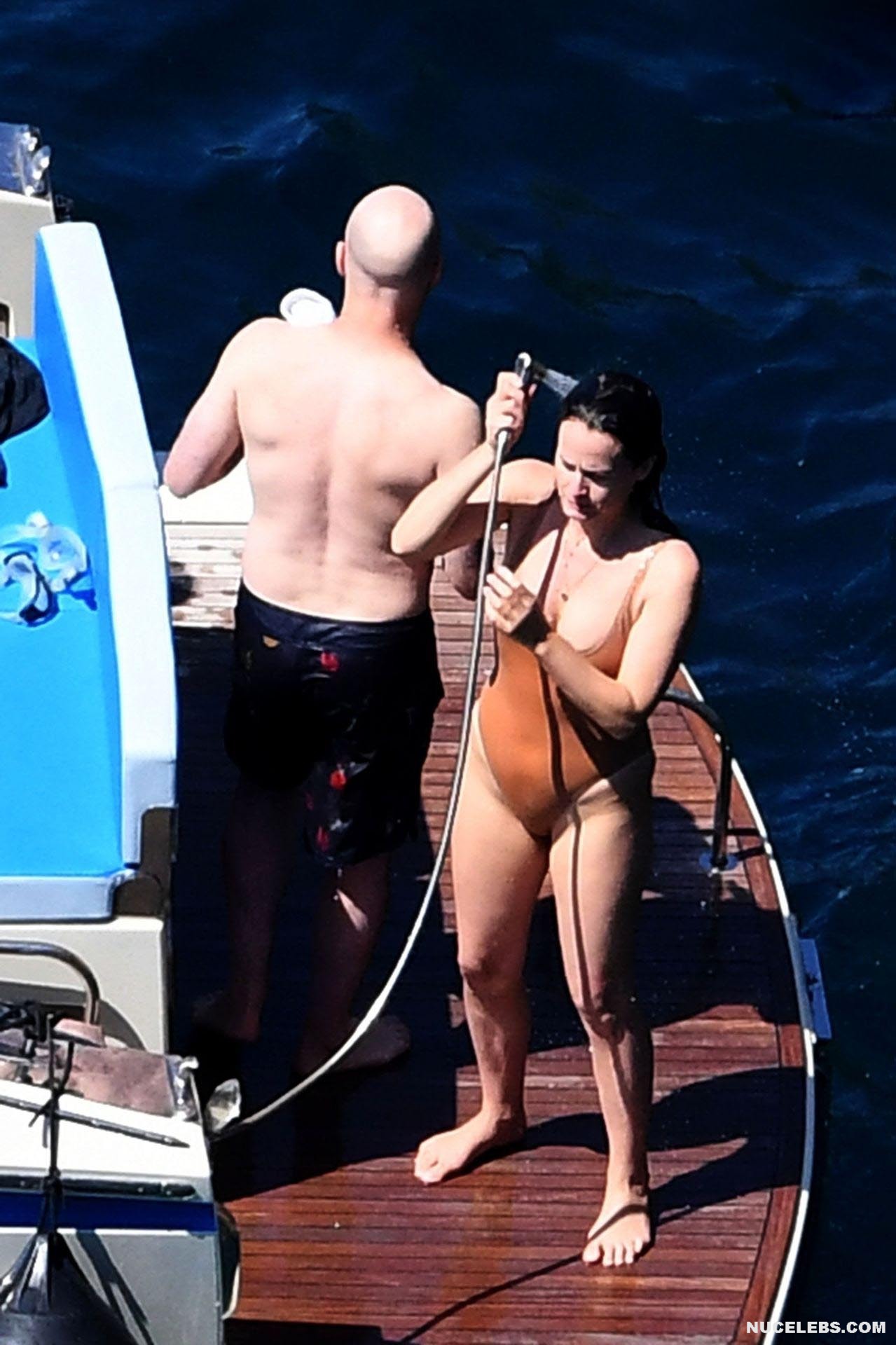Check out the photos of Elizabeth Reaser in a wet swimsuit on a yacht! Well, this star looked so hot in a low-cut orange swimsuit. It looked like Elizabeth Reaser’s nude tits were about to jump out of him as she poured water over them from the shower! And at one of the events, this American actress still flashed her bare breasts. So, this beauty was dressed in a low-cut black dress from which at one point her boob with a brown nipple slipped out.