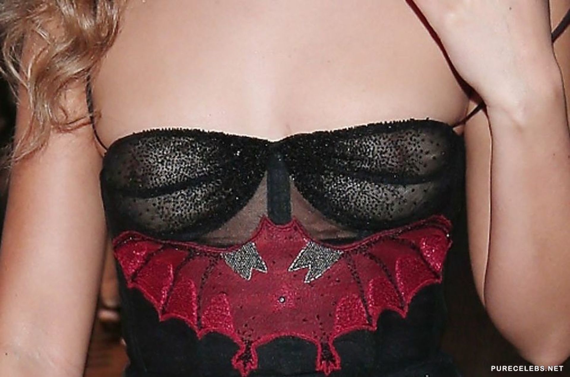 Ella Eyre, an English singer and songwriter, was recently caught by the paparazzi while walking through the night city without a bra. The star was wearing a beautiful long black dress with red trim that showed off her gorgeous figure. The dress was translucent, and we can admire her gorgeous long legs as well as her wonderful tits that could also be seen through the dress because the celebrity was braless.