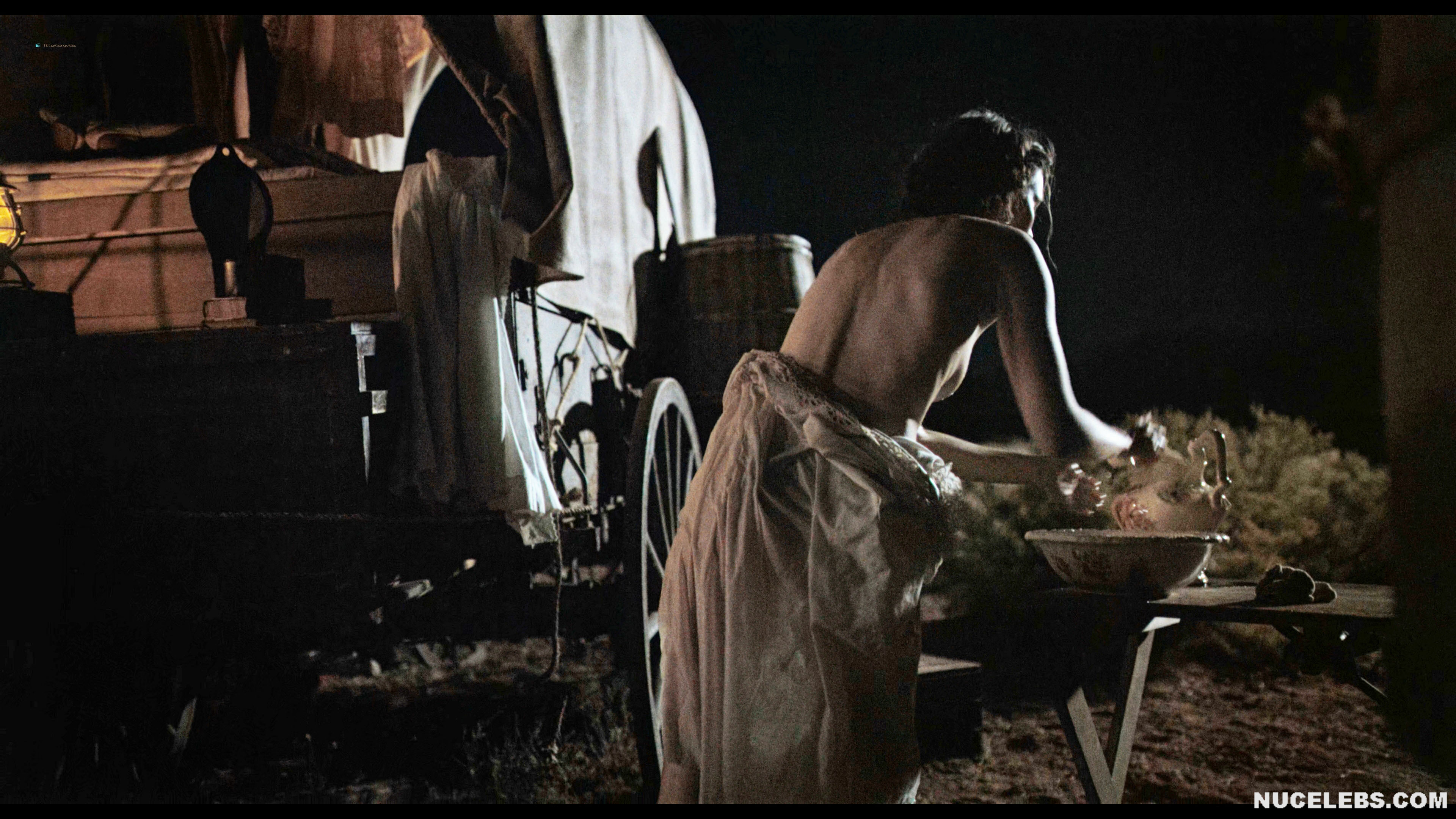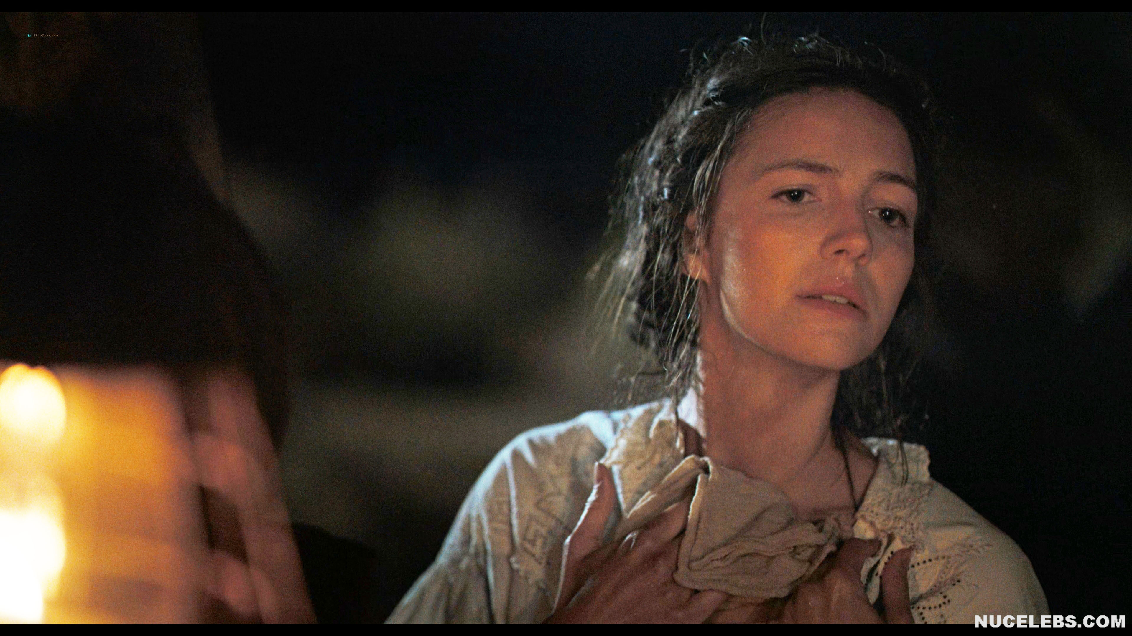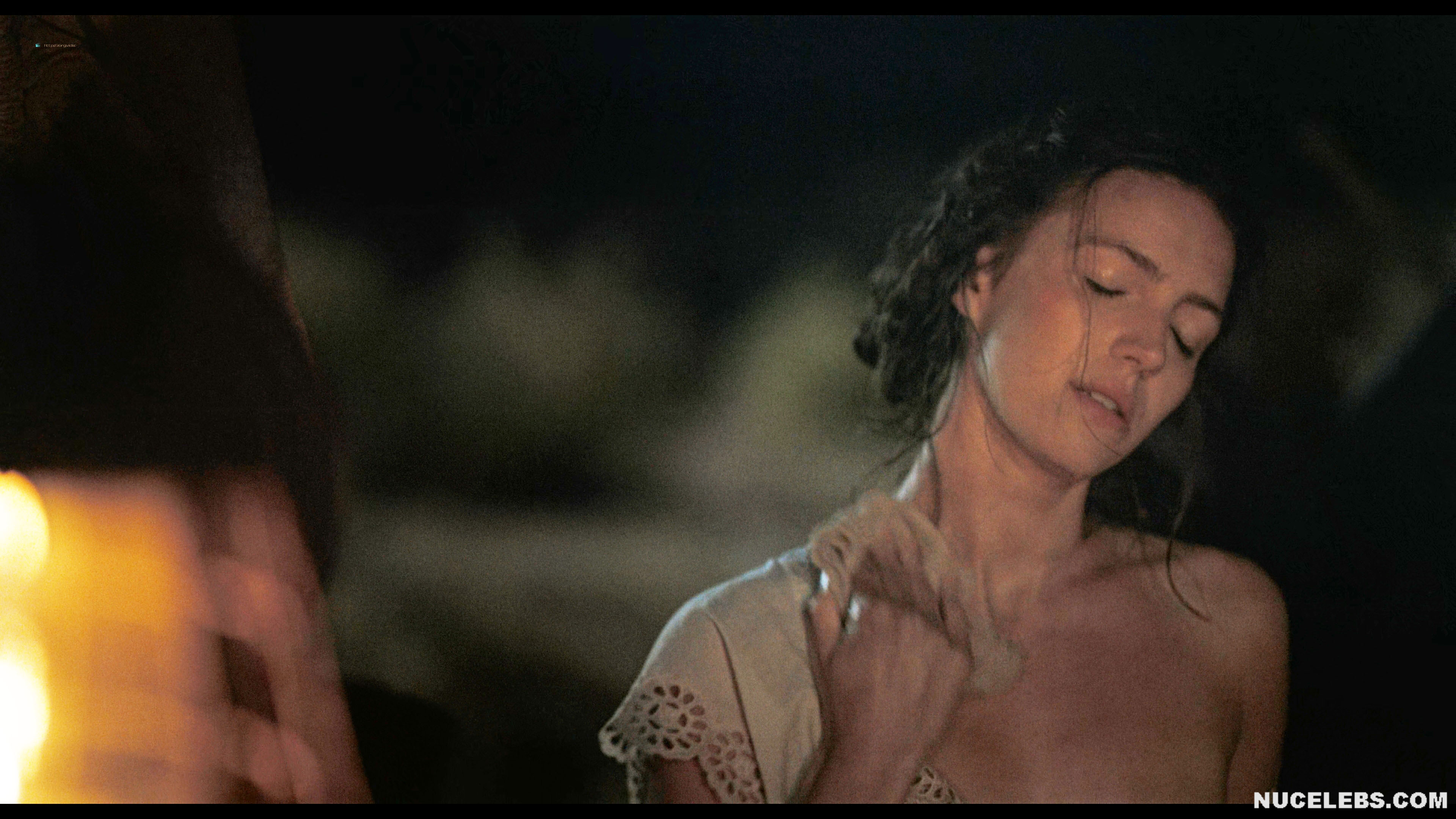 Want to see Ella Hunt nude boobs in Horizon? Then let’s join the company of two men who seem to enjoy peeping at women celebrities nude. This English actress was tidying herself up, trying to wash herself near the fire. At the same time, she was getting more and more naked… At some point, Ella Hunt nude boobs were on display, and then part of her ass peeked out from under her pulled-up dress. When the girl noticed that someone was watching her, she tried to cover herself. However, her brown nipple was still on display for some time.
