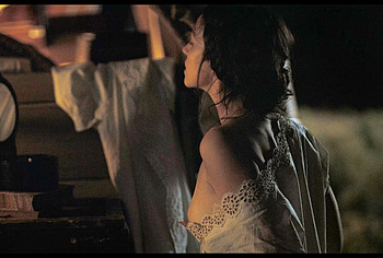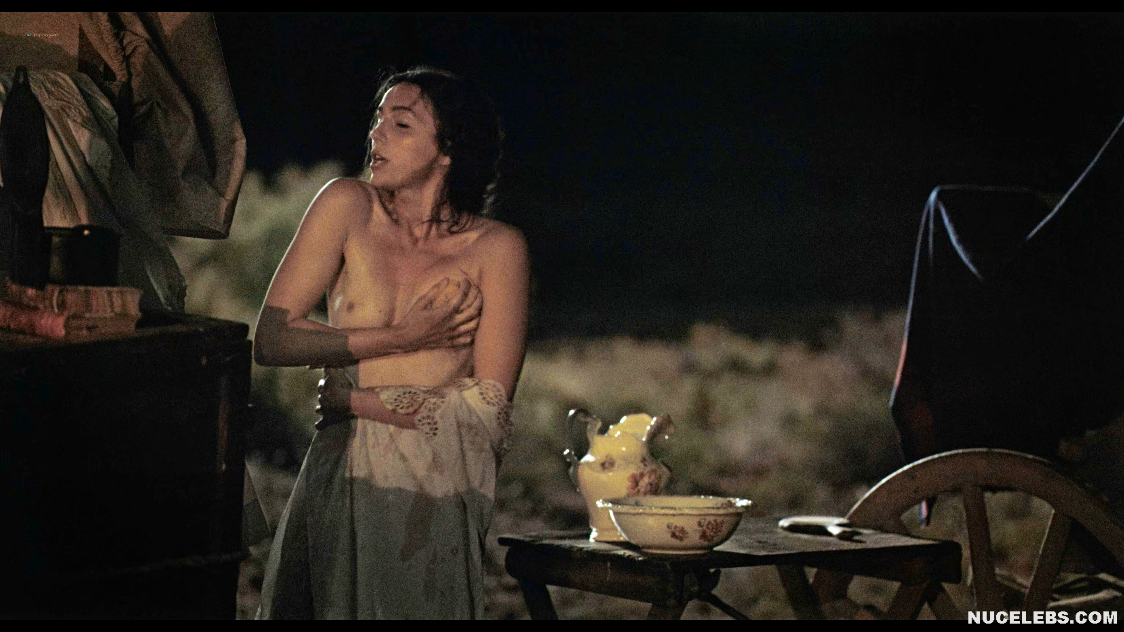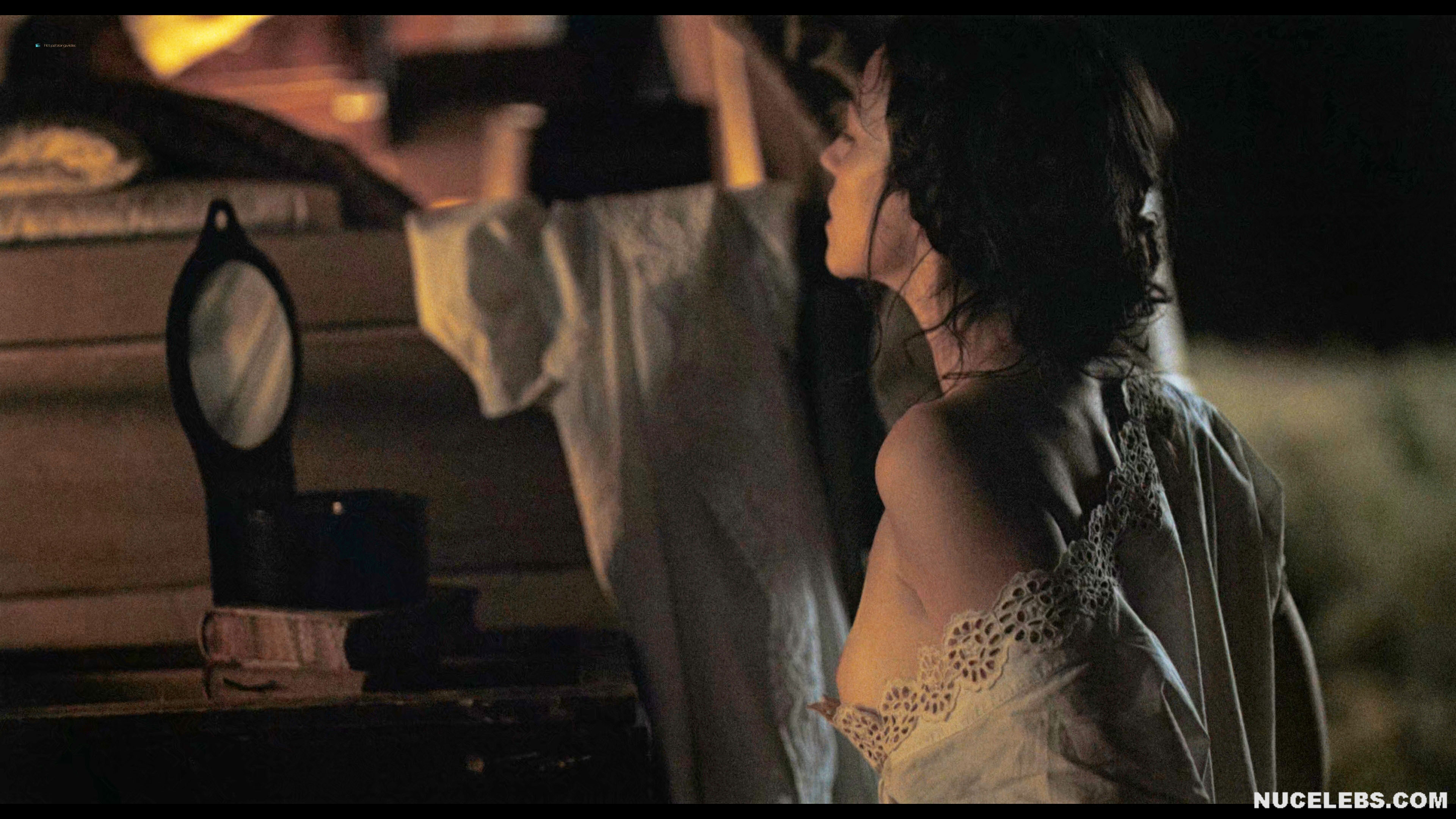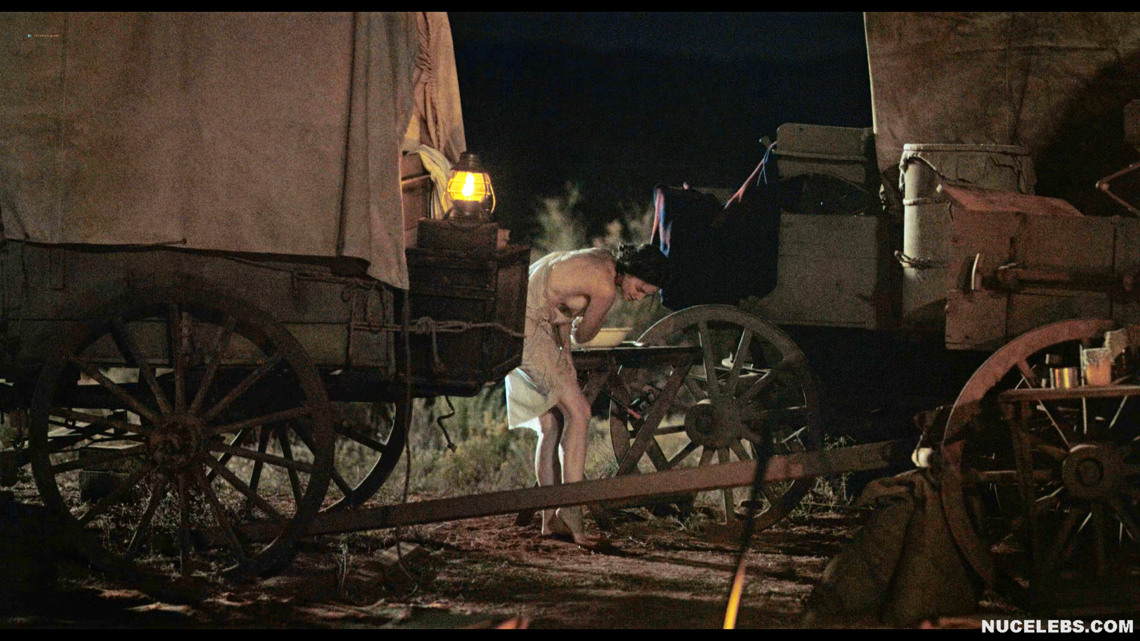 Want to see Ella Hunt nude boobs in Horizon? Then let’s join the company of two men who seem to enjoy peeping at women celebrities nude. This English actress was tidying herself up, trying to wash herself near the fire. At the same time, she was getting more and more naked… At some point, Ella Hunt nude boobs were on display, and then part of her ass peeked out from under her pulled-up dress. When the girl noticed that someone was watching her, she tried to cover herself. However, her brown nipple was still on display for some time.