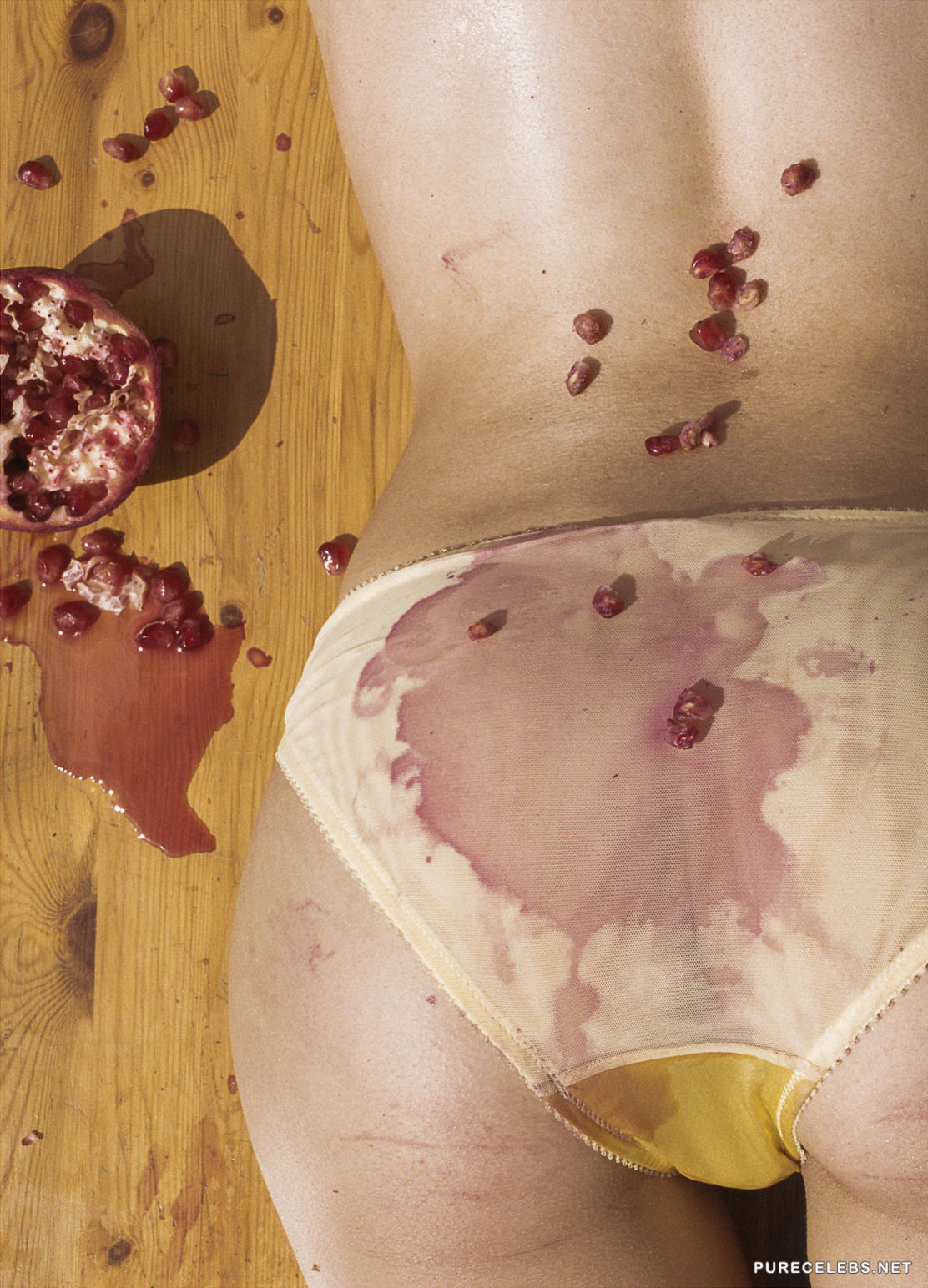 Ella Weisskamp hot young model. Here we have photographs for her last editorial. She is wearing see through outfits that actually doesn’t cover anything at all, or she is wearing some skimpy underwear. She’s got long slender legs, perfect shapely ass and amazing tits. This girl likes to get dirty which is obvious from these pictures where she is suggestively playing with fruit and touching her natural big boobs.