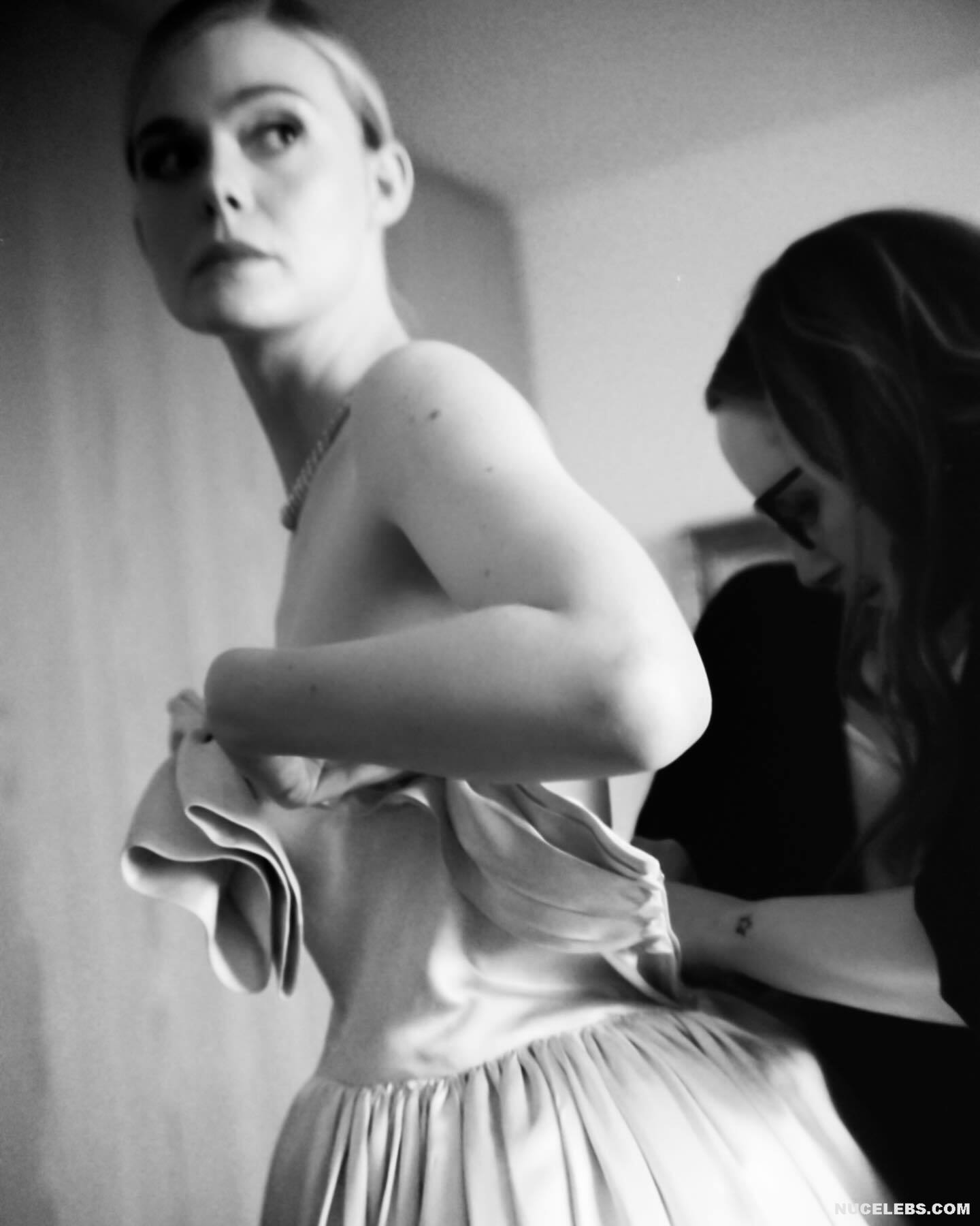 Elle Fanning doesn’t wear a bra very often and that’s why sometimes we get the chance to see her naked titties! So, the paparazzi caught a great nipple slip moment when this celebrity was hugging her sister. Elle Fanning’s pink nipple slipped out of the low neckline of her black dress as she enjoyed the embrace. The 25-year-old actress also looked very seductive in a strapless beige dress. It seemed that the dress could slide off her at any moment and Elle Fanning nude boobies would jump out.