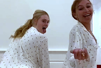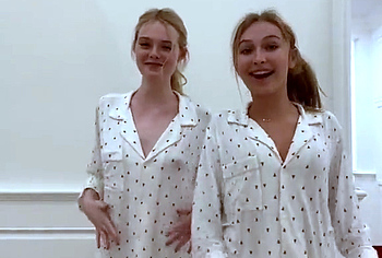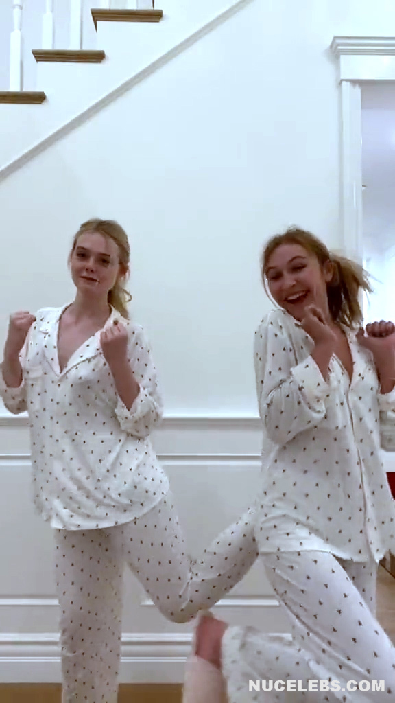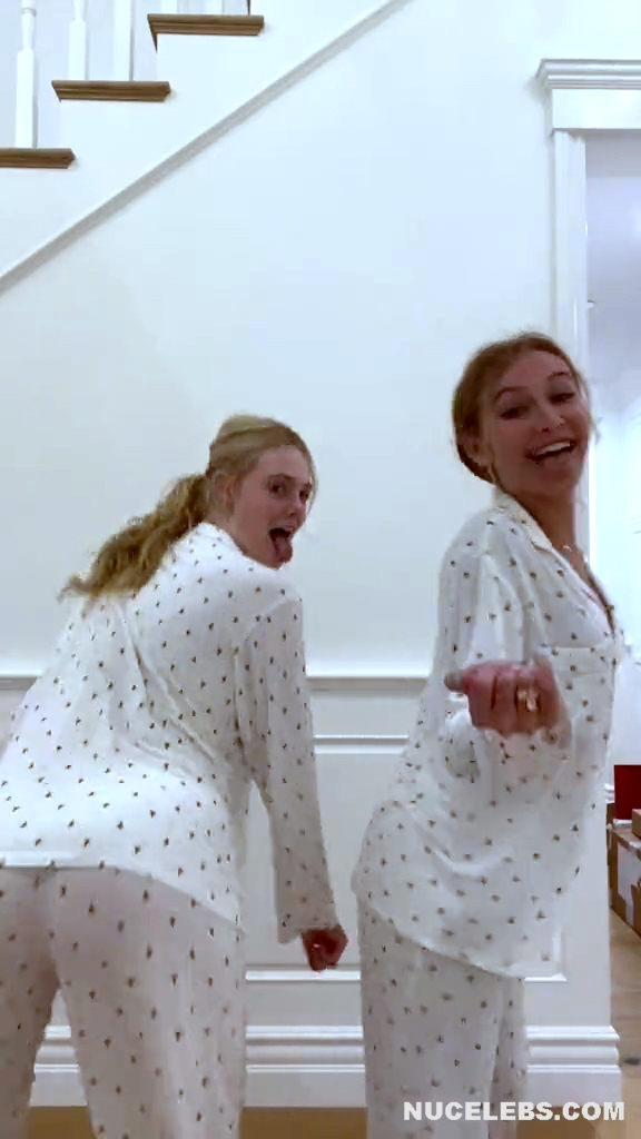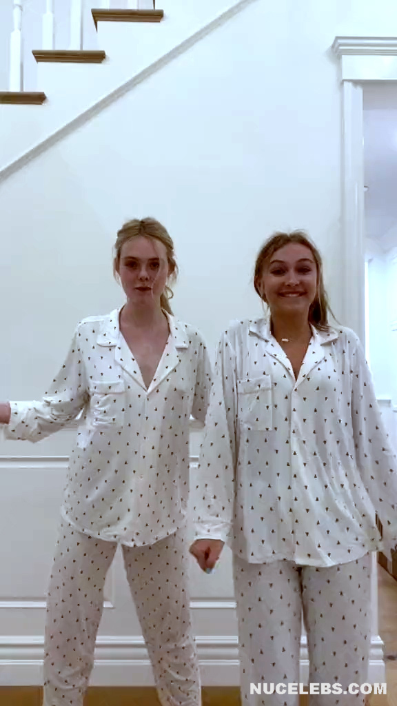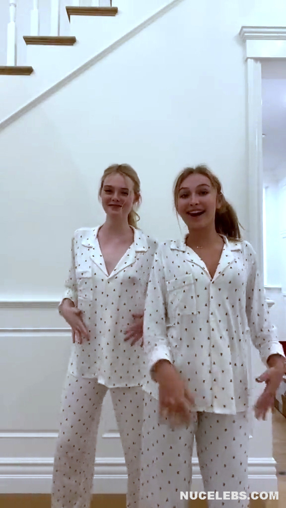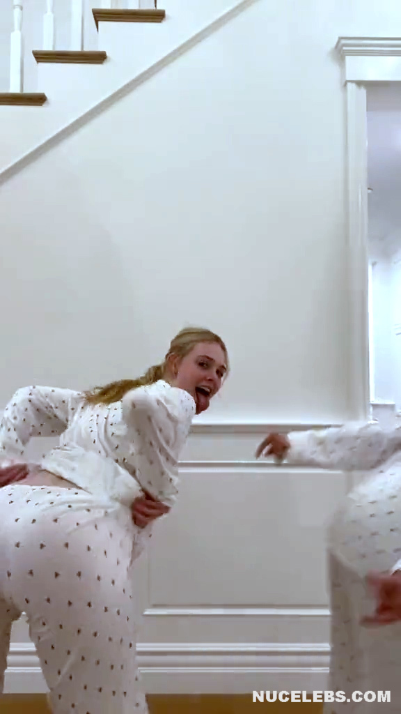 All celebrities find various methods to entertain themselves and their fans. For example, Elle Fanning decided to dance a hot dance in her pajamas in front of the camera. First, this American actress ran her fingers over her wonderful boobies with hard nipples hidden under her white printed pajamas. And after Elle Fanning was twerking her awesome booty right in front of the camera! Mmmm, her buns in close-up looked very tempting, right?