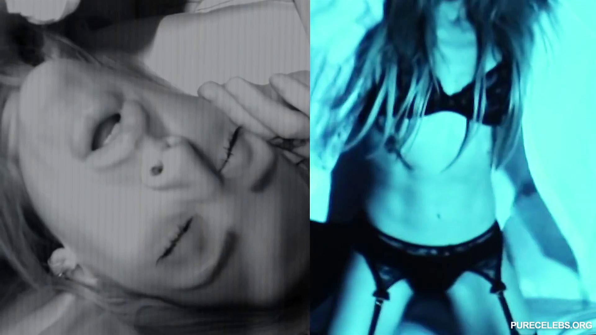 Ellie Goulding almost showed her nude body in the music video Power (2020). This English singer decided to tease her fans by posing in seductive black lingerie. The girl also did not forget to wear black stockings, which made her look even sexier. And when Ellie Goulding leaned over, it seemed that nude celebrity tits were about to slip out of her little black bra.