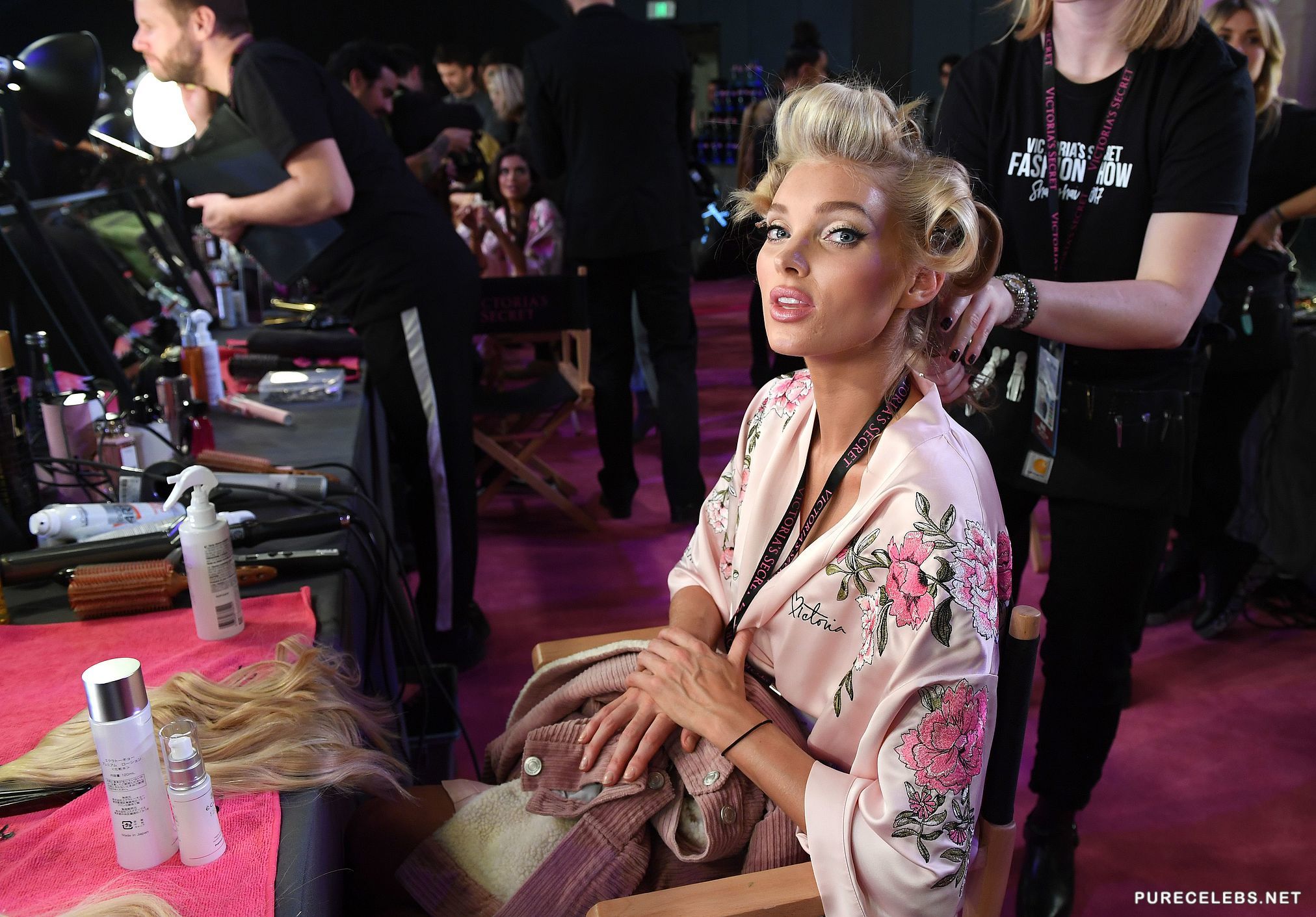 Elsa Hosk is best known for modeling the lingerie line for Victoria’s Secret. This amazing blond looks super sexy At The 2017 Victoria’s Secret fashion show wearing a fiery red bra, lace panties and her signature angel wings. In this gallery you can see her in the dressing room before the show getting dolled up and later strutting her stuff on the catwalk like the professional she is.