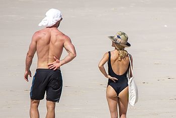 Paparazzi love to photograph Spanish actress Elsa Pataky, hoping to one day catch her nude. So far they have managed to make very hot photos of this celebrity in a black swimsuit. Juicy boobs of this blonde looked very seductive in a tight-fitting swimsuit. But all eyes on the beach were undoubtedly turned to the wonderful butt of Elsa Pataky. Oh, her awesome buttocks in tight black swimsuit panties looked breathtaking!