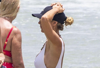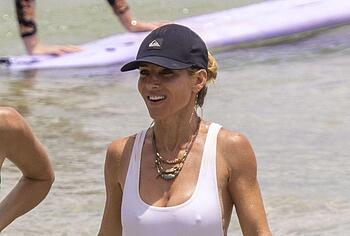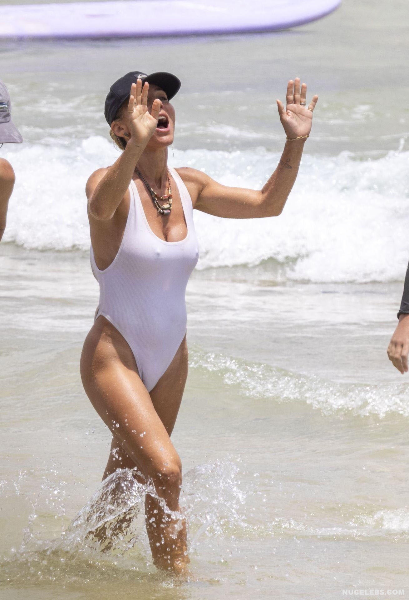 Elsa Pataky once again drove everyone crazy with her perfect body in a white swimsuit during a beach holiday. The narrow bottom of the swimsuit perfectly emphasized her awesome booty. But special attention was drawn to her wonderful titties. After all, when Elsa Pataky came out of the water, her poking nipples in a wet swimsuit looked damn sexy!