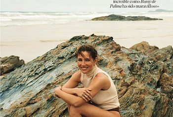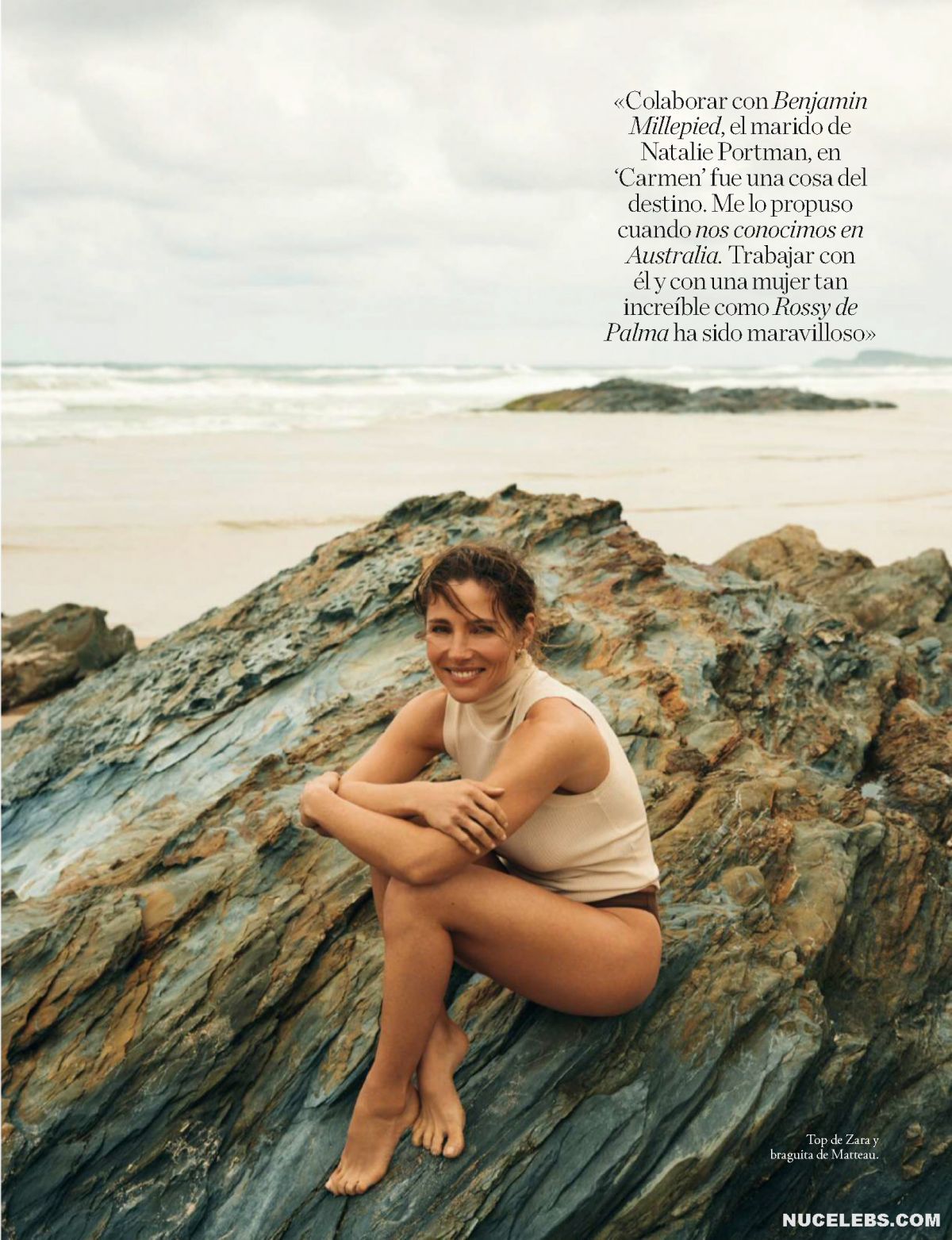 The charming Elsa Pataky delighted her fans by appearing on the pages of ELLE magazine. This Spanish actress appeared before readers in incredibly seductive images. For example, she posed in a tight-fitting white swimsuit on the seashore. And Elsa Pataky almost showed her nude boobies while posing topless. The celebrity did not hesitate to stay only in small black panties. Elsa Pataky was smiling sweetly, sitting on the beach and covering her nude boobs with her knees.