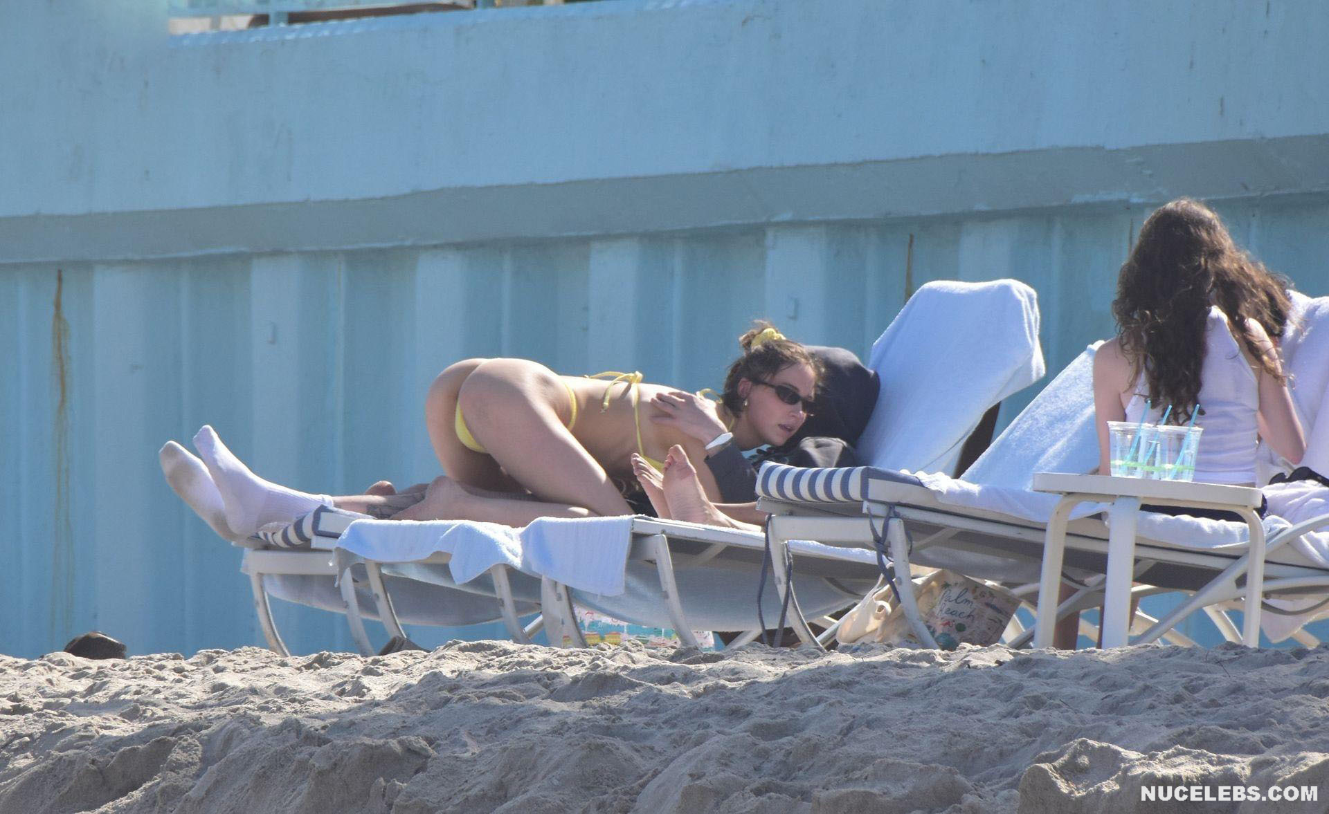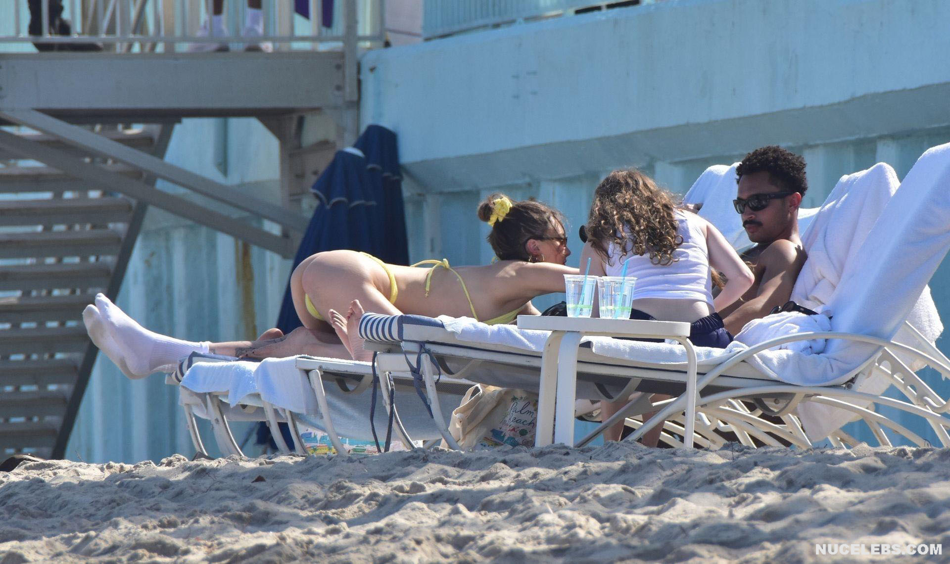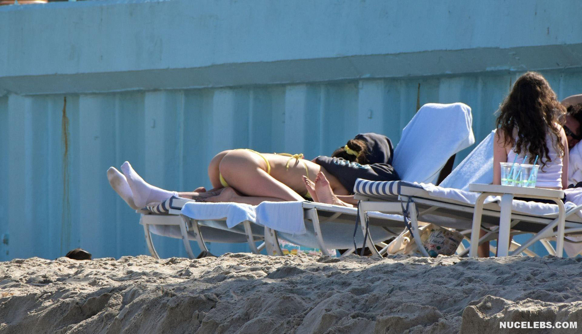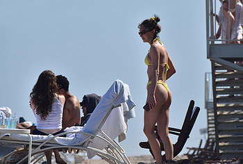 A perfect mix of beauty and attitude Elsie Hewitt knows how to own the moment. When this 29-year-old model appears on the beach, all eyes are on her. This star prefers to wear tiny bikinis to draw even more attention to her perfect curves. Sometimes, when looking at her butt, it is difficult to see the thin strip of thong, and it seems as if Elsie Hewitt is sunbathing half-naked. Her bikinis also highlight her wonderful cameltoe. Like that time when she climbed on top of a man in a yellow bikini and told him something…