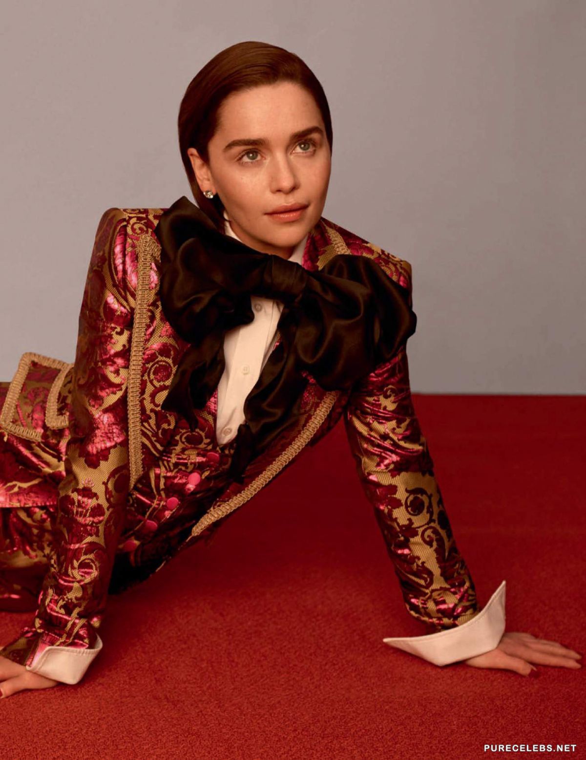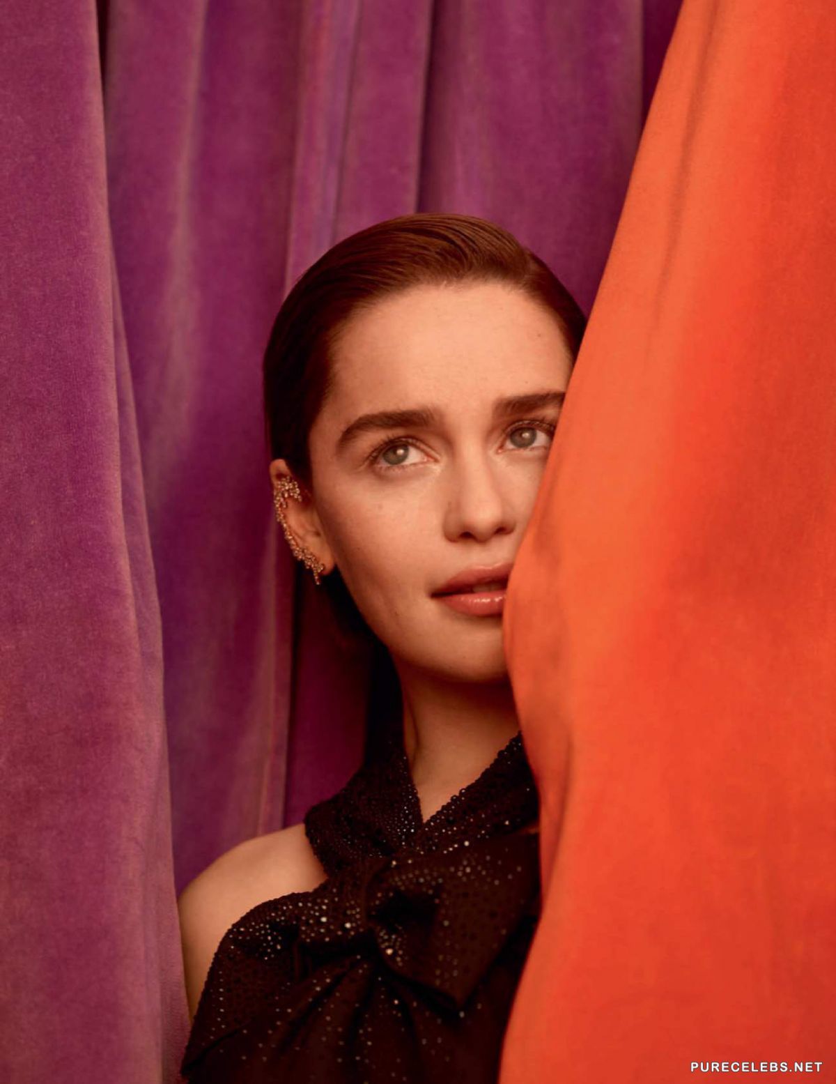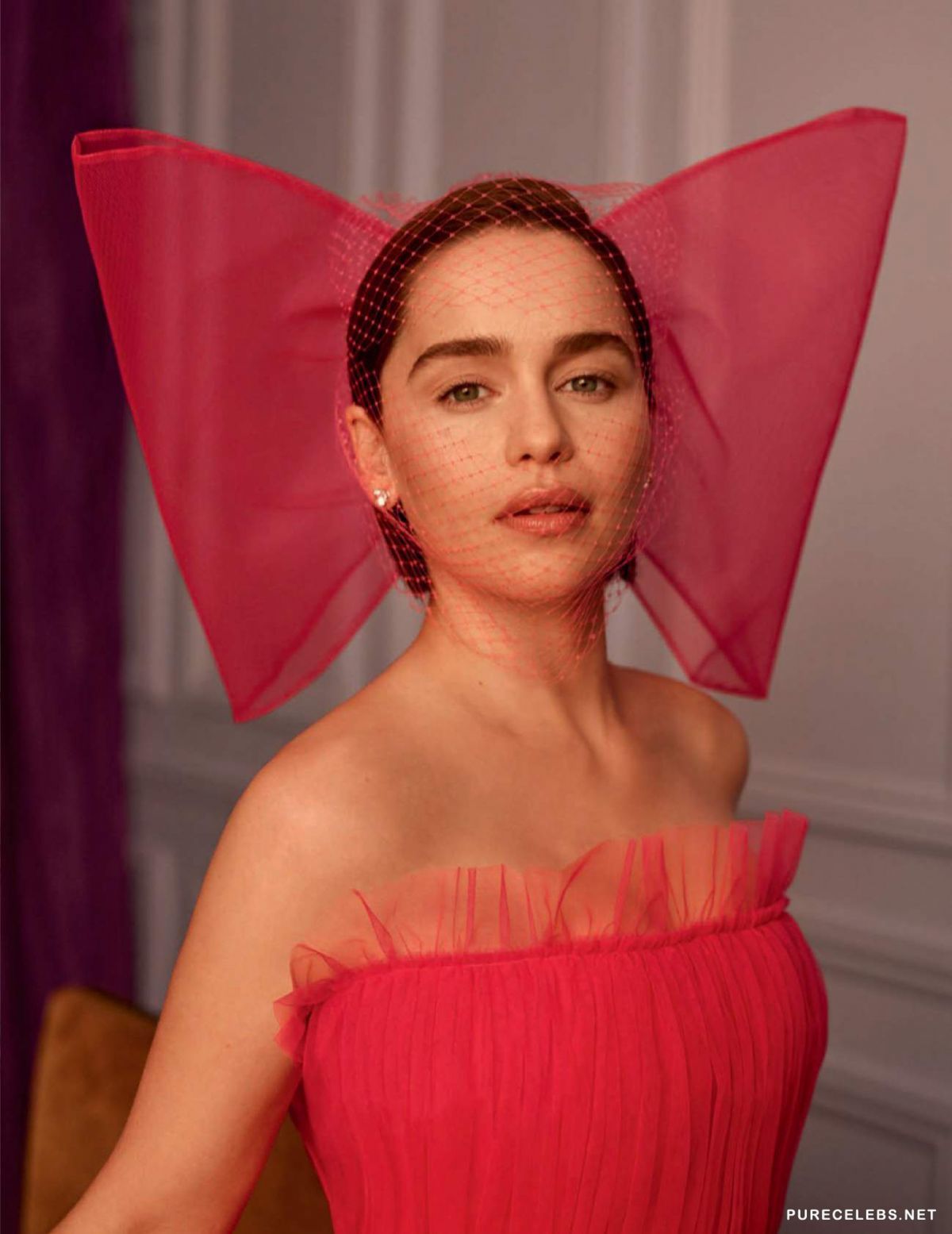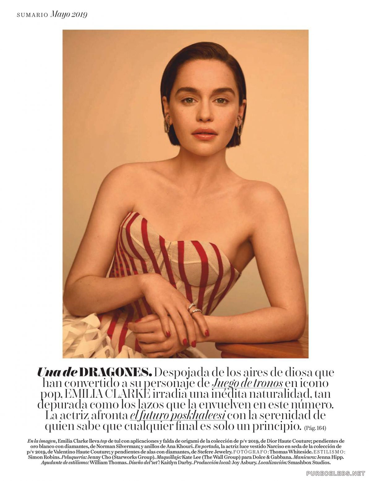 Emilia Clark, a British actress, better known to us from the Game of Thrones, shot for the May issue of Vogue Spain. You can see a star in bright unusual outfits that emphasize her femininity and sexuality. The actress looked very seductively in a bright red dress with a deep neckline that emphasized her wonderful breasts. And her look in a beautiful yellow dress with a large bow was chosen for the cover of a magazine.